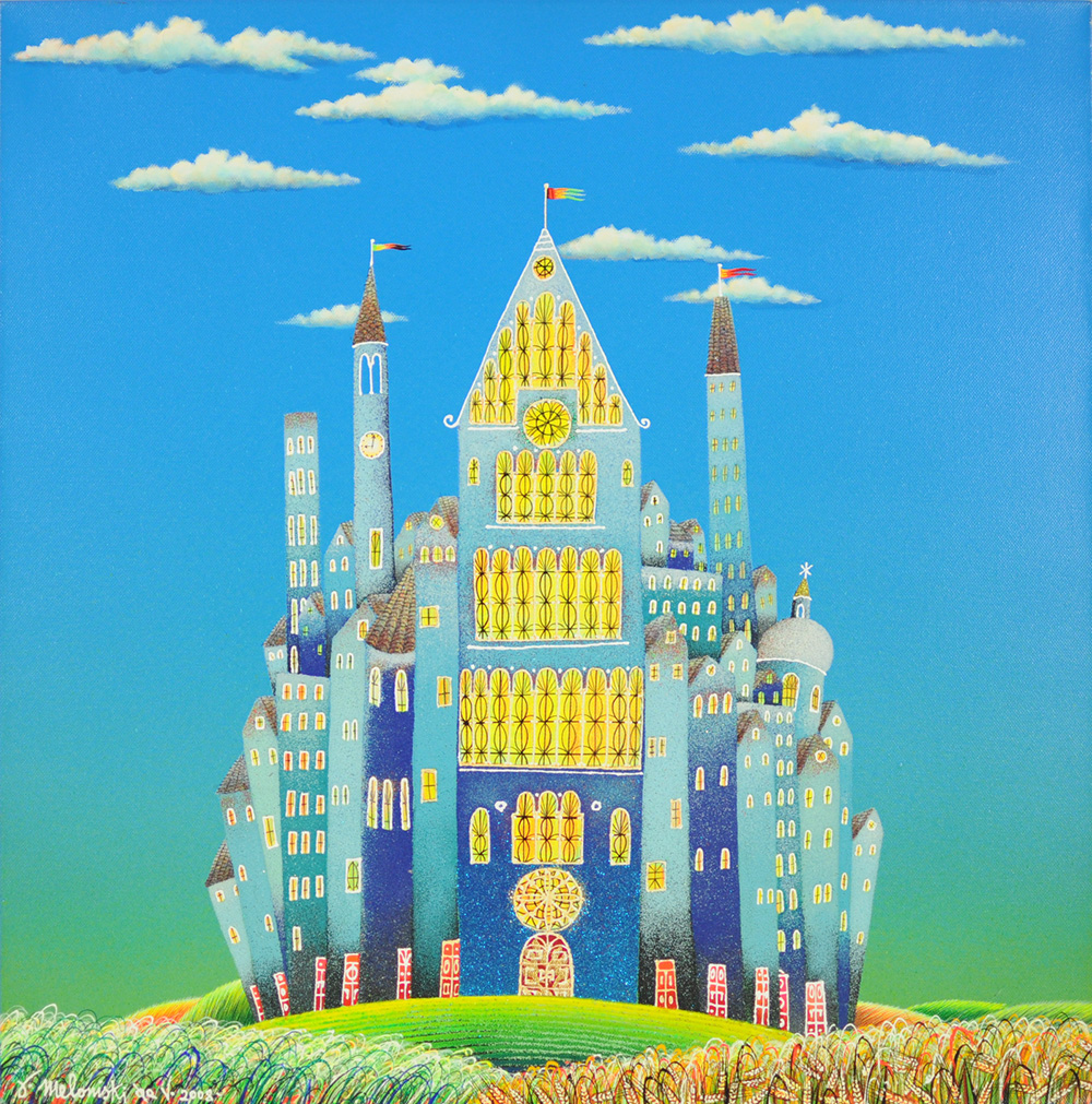 MELONISKI, Piccola città, Polimaterico e collage su tela Anno 2008 Dim. 60x60...