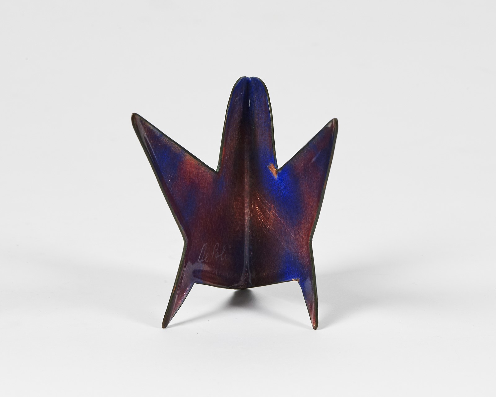 GIO PONTI - PAOLO DE POLI Uccello in rame smaltato per, Smalti De Poli Padova anni 50. Rame smaltato. . Firma "De Poli" all'interno. Presenta delle lievi sbeccature in corrispondenza delle parti frontali superiore e inferiore. Anni '50.