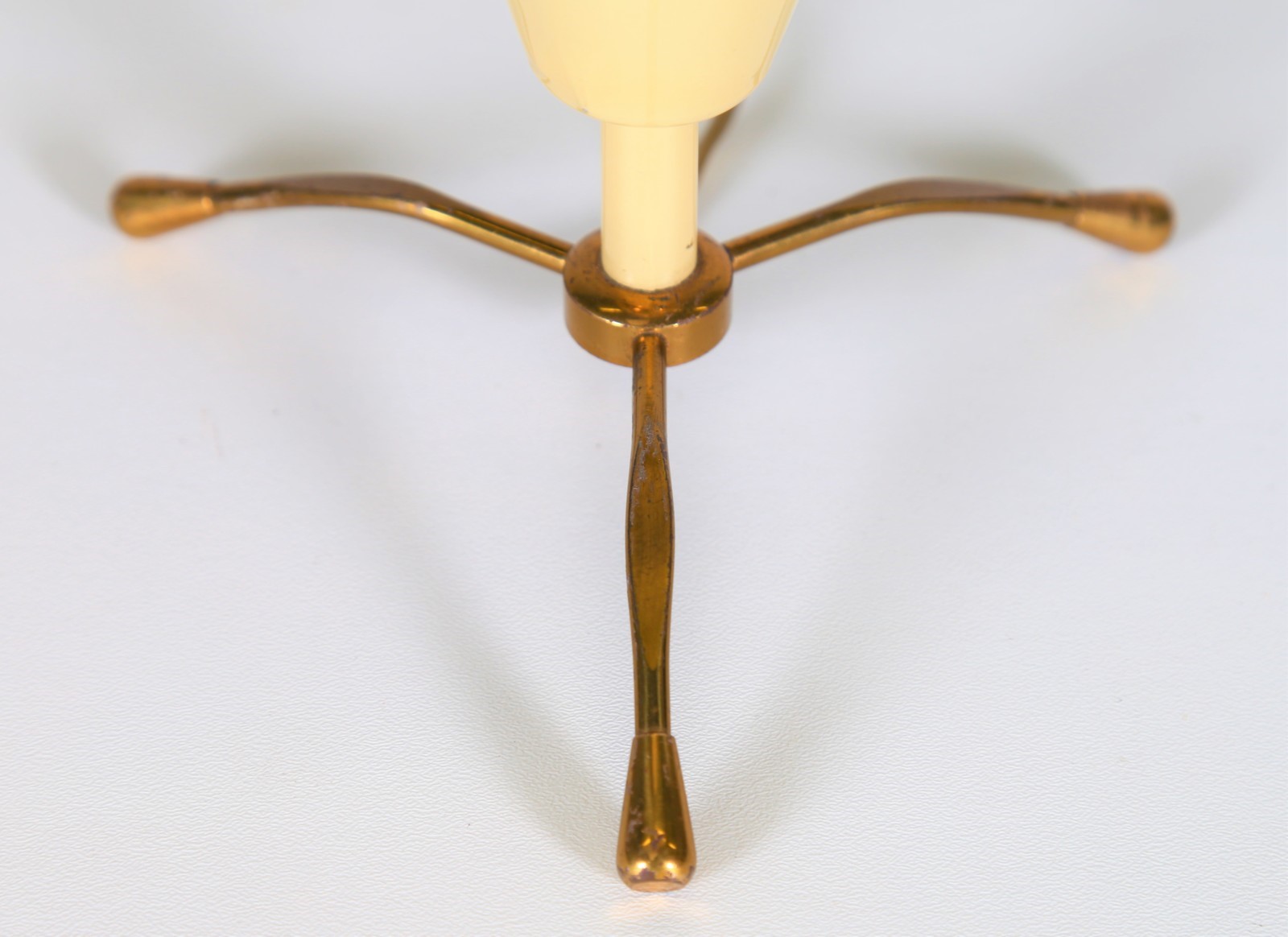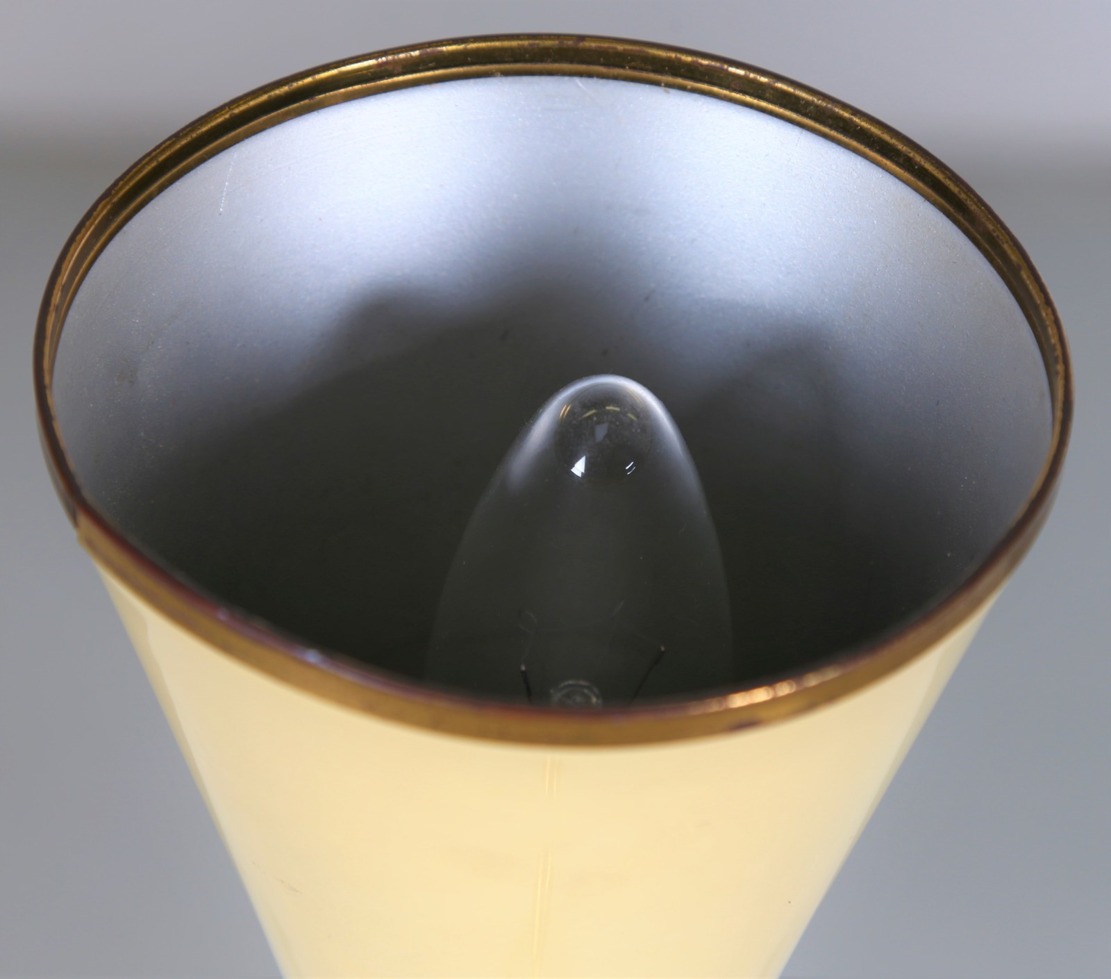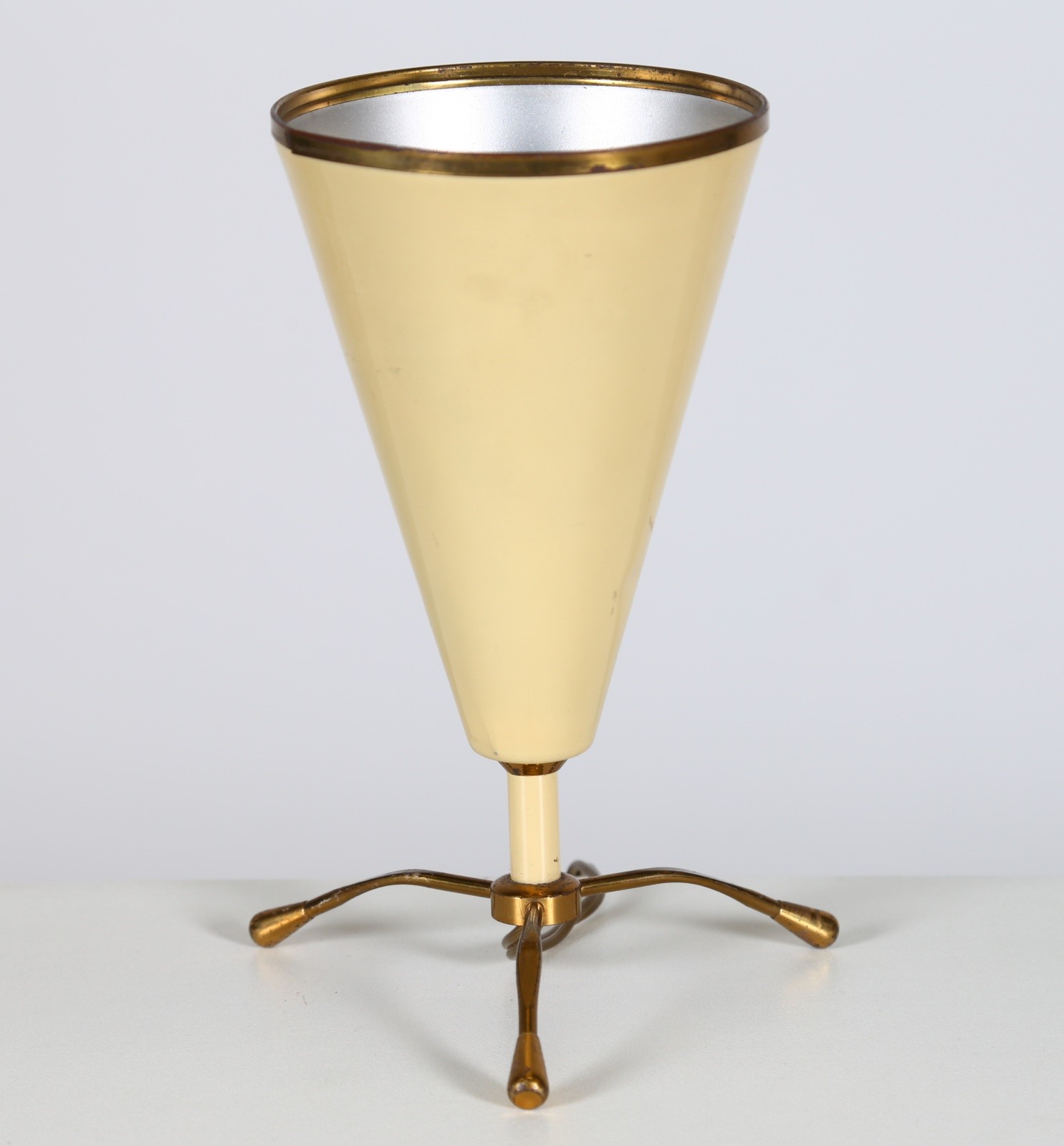 MANIFATTURA ITALIANA Lampada da tavolo, anni 50. -. Cm 13,00 x 20,00 x 13,00. Ottone e metallo laccato