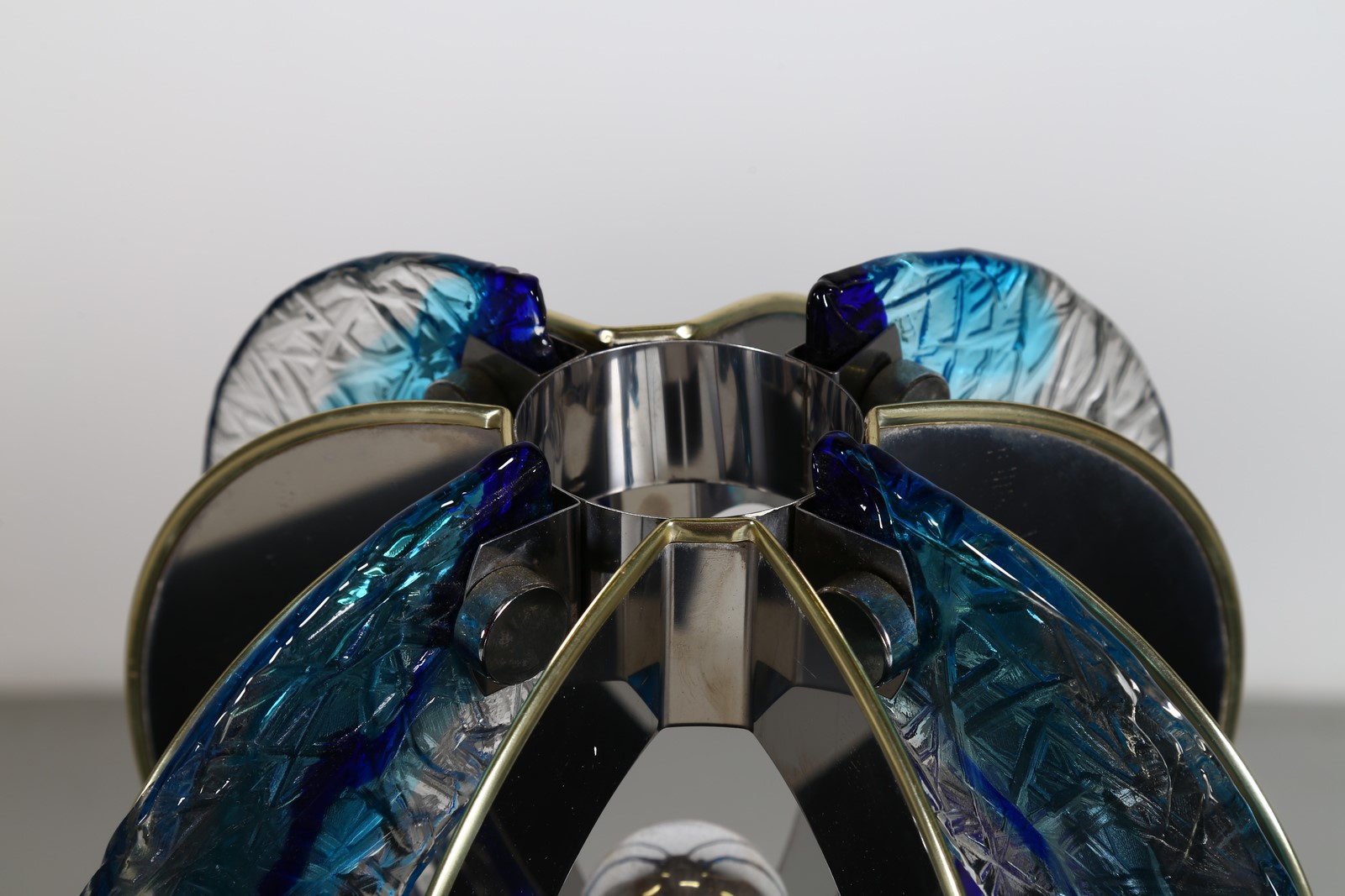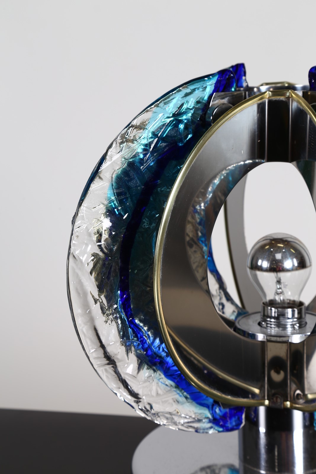 BROTTO ANGELO (1914 - 2002) Lampada da tavolo in metallo cromato e vetro, Petali per Esperia, anni 70. -. Cm 40,00 x 35,00 x 40,00.