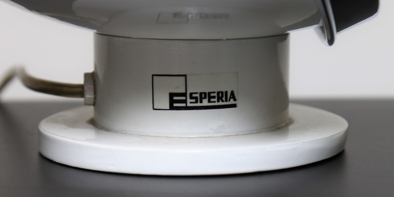 BROTTO ANGELO (1914 - 2002) Lampada da tavolo in metallo cromato e vetro, mod. Stufa per Esperia anni 70. -. Cm 33,00 x 36,00 x 23,00.