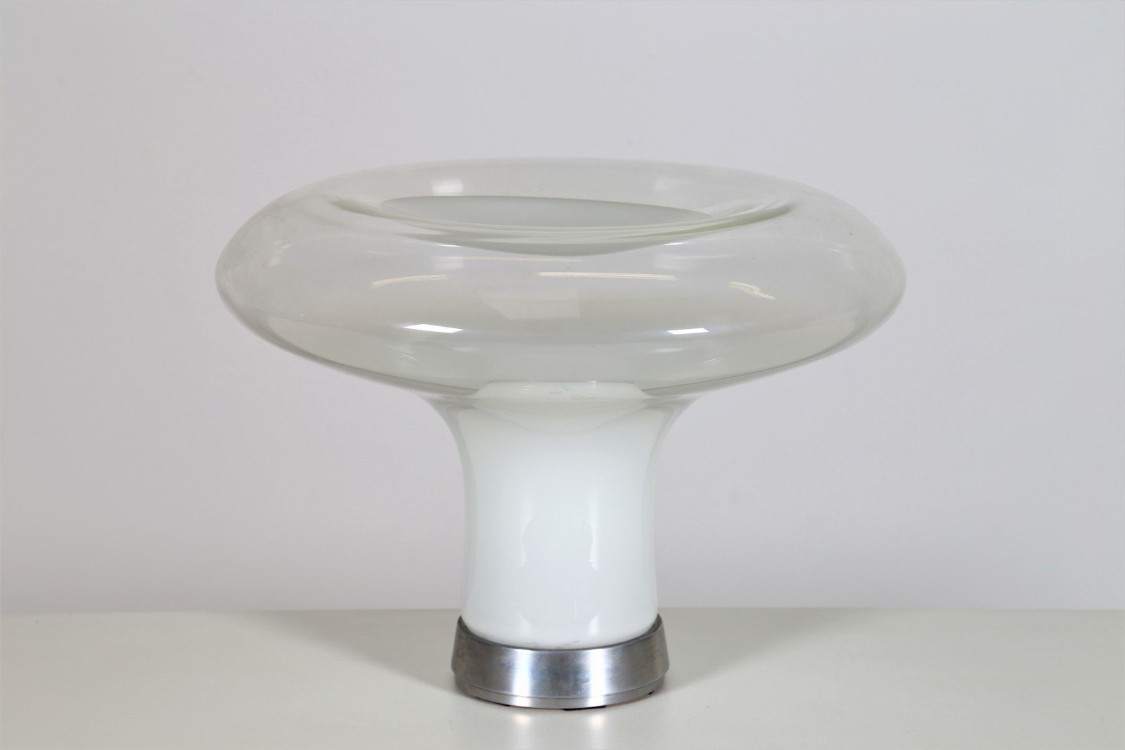 MANGIAROTTI ANGELO (n. 1921) Lampada da tavolo, mod. Lesbo per Artemide anni 60. -. Cm 50,00 x 40,00. Vetro e alluminio