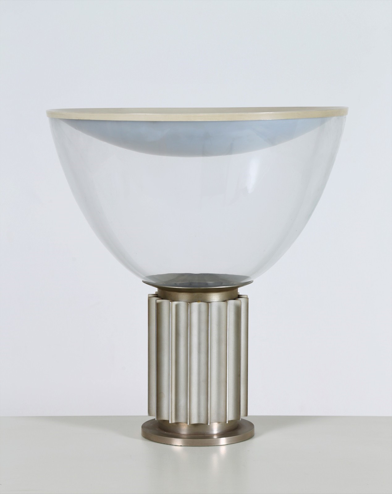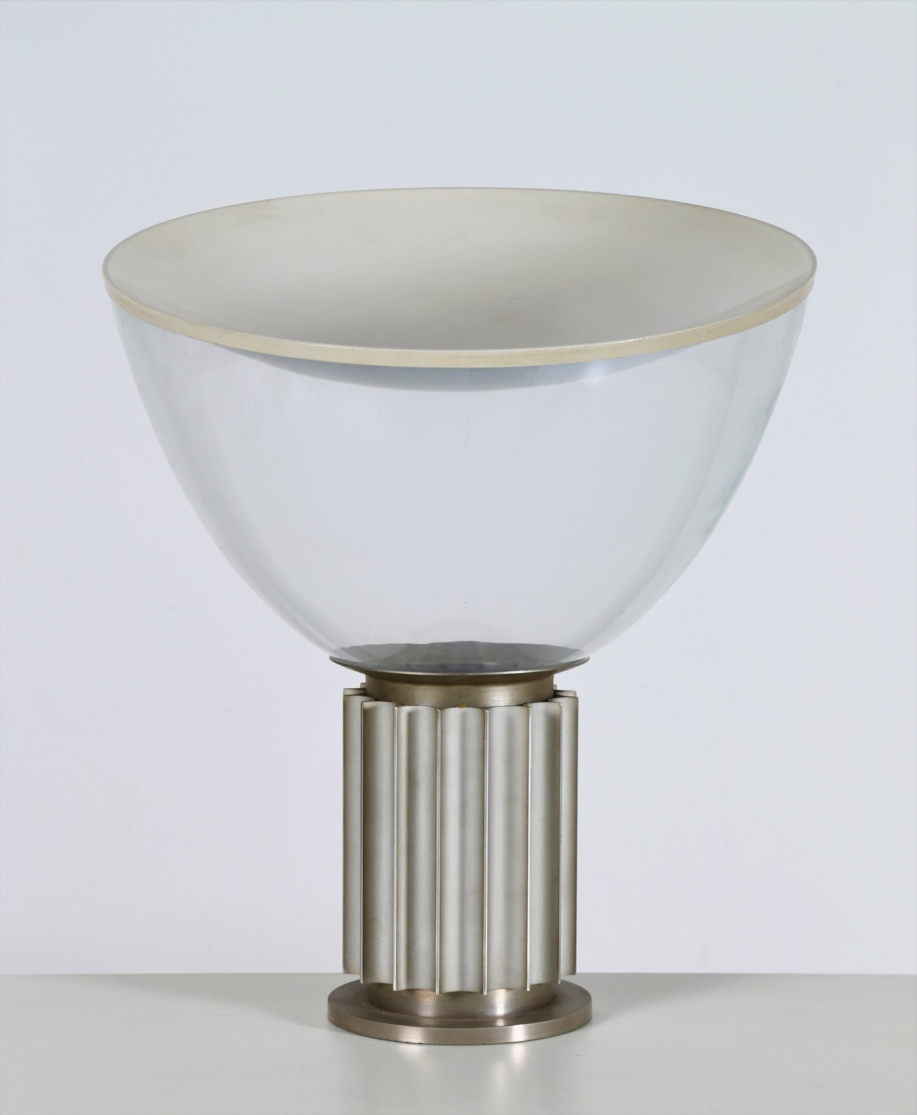 CASTIGLIONI ACHILLE (1918 - 2002) Lampada da tavolo, mod. Taccia, per Flos 1962. -. Cm 60,00. Metallo cromato, acciaio e vetro