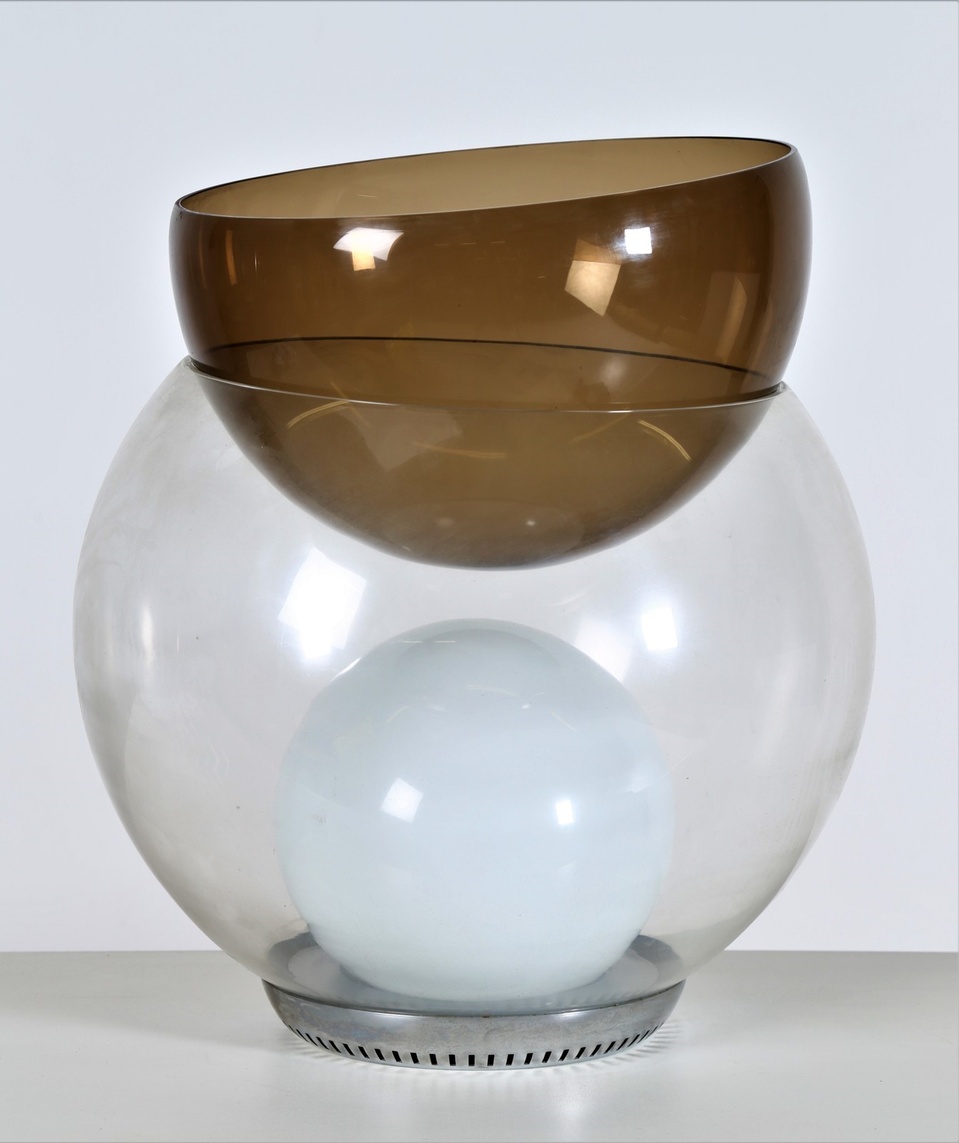AULENTI GAE (1927 - 2012) Lampada da tavolo, mod. Giova, per Fontana Arte, anni 60. -. Cm 47,00 x 60,00 x 47,00. Metallo cromato e vetro di Murano