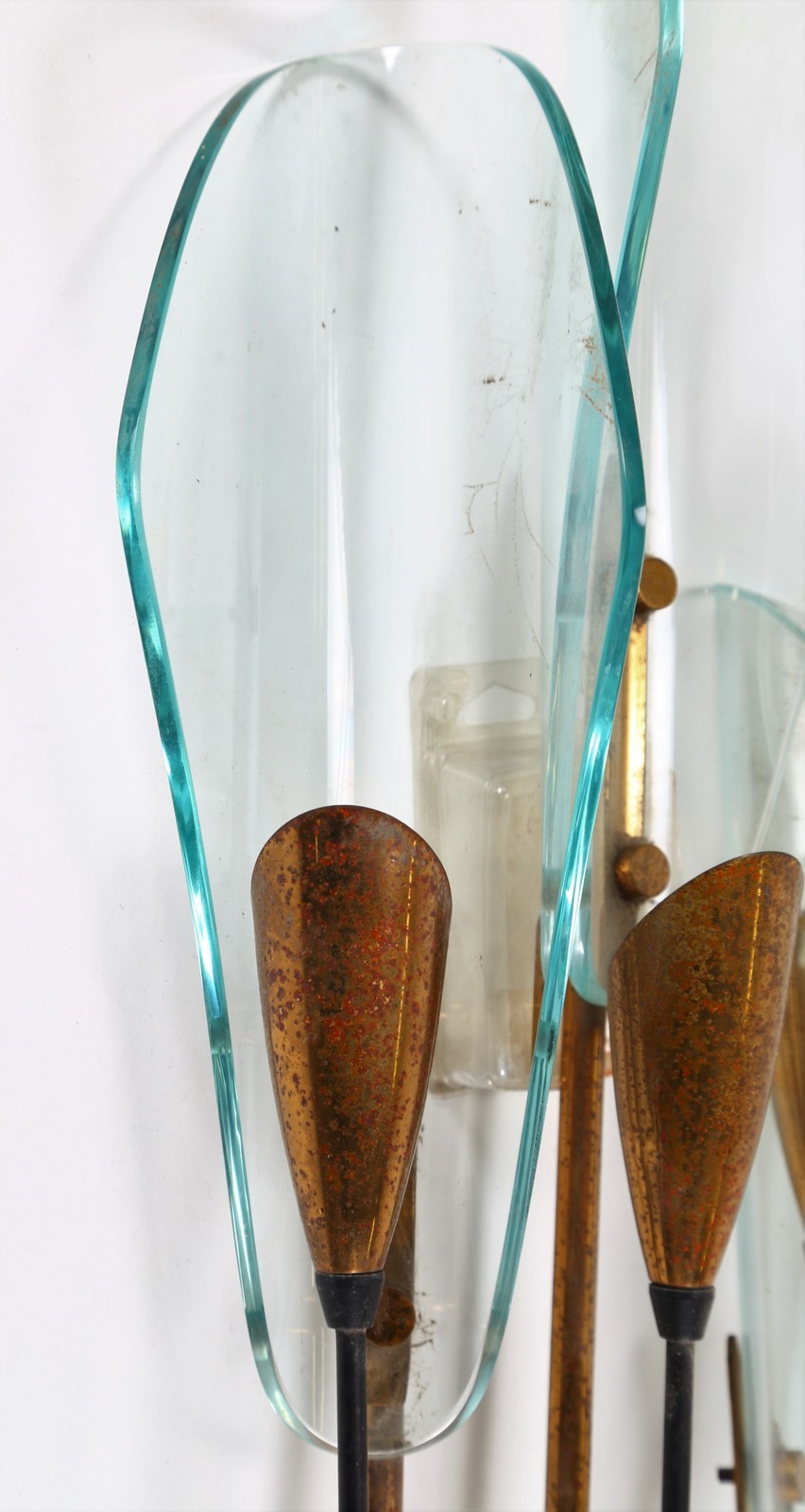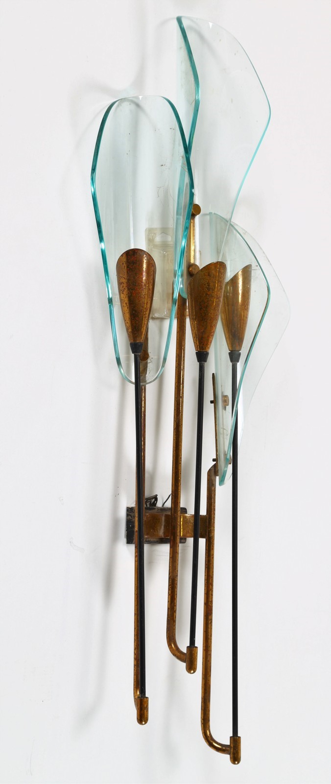 LUIGI MOLIN Applique, anni 50 Venezia. -. Cm 28,00 x 78,00 x 12,00. Ottone, metallo laccato e vetro
