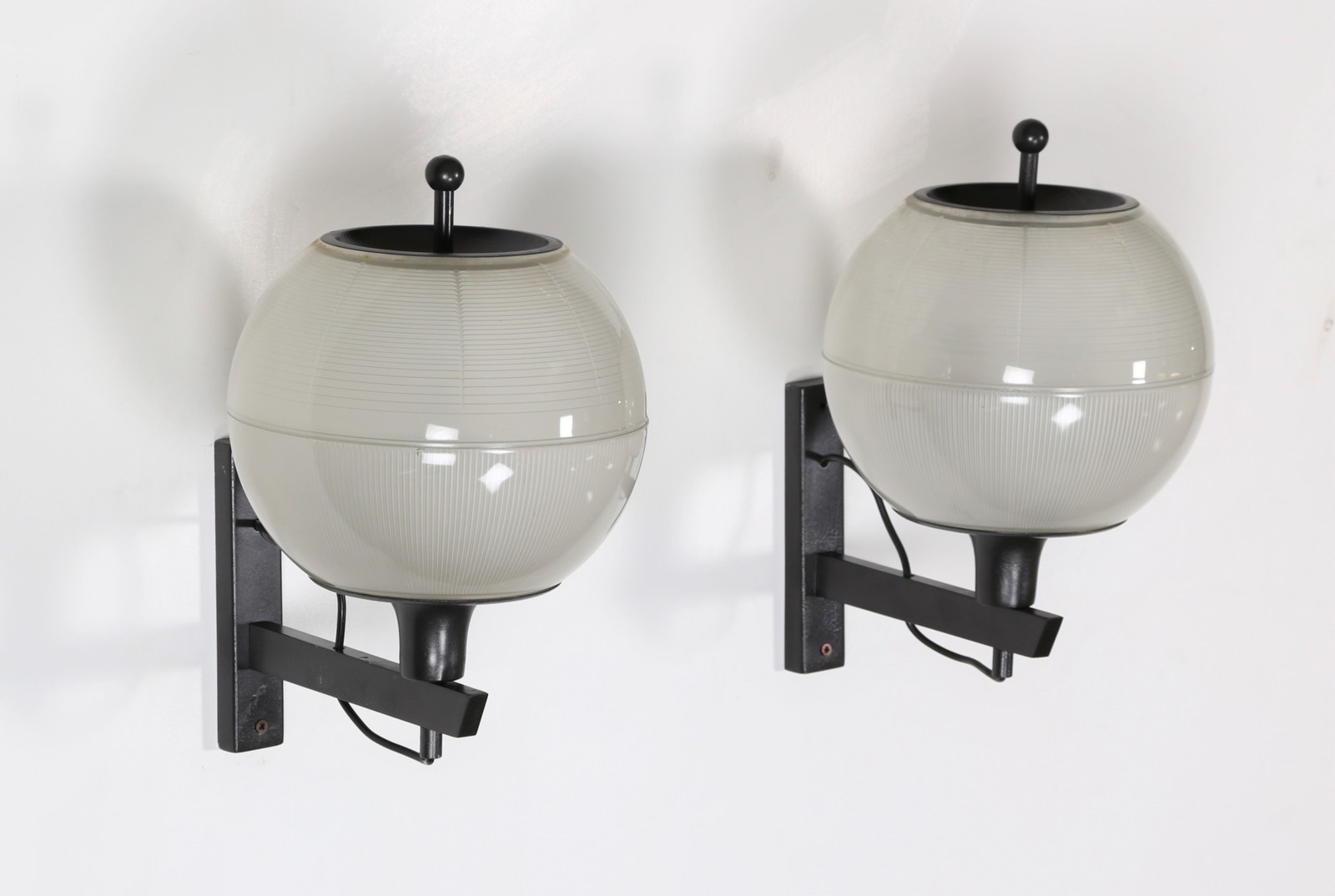 STUDIO BBPR (BANFI, BELGIOIOSO, PERESSUTTI, ROGERS) Attrib. Coppia appliques. -. Cm 27,00 x 40,00 x 33,00. Metallo laccato e vetro