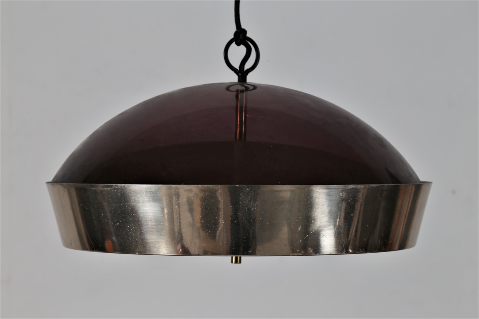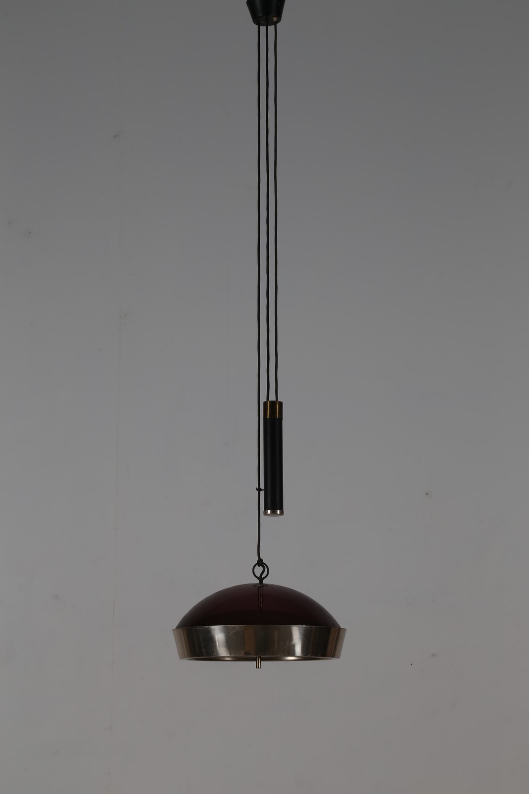 STILUX Lampada saliscendi a sospensione in metallo ottone e plexiglass, anni...