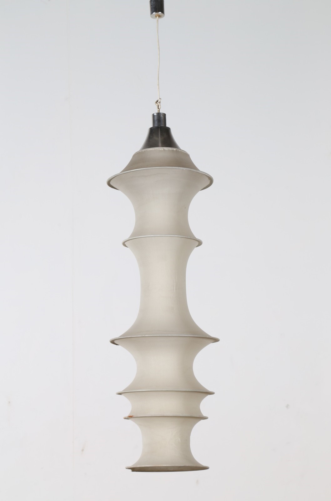 MUNARI BRUNO (1907 - 1998) Lampada a sospensione mod. Falkland per Danese MI anni 60. -. Cm 43,00 x 170,00 x 43,00. Metallo e stoffa elastica