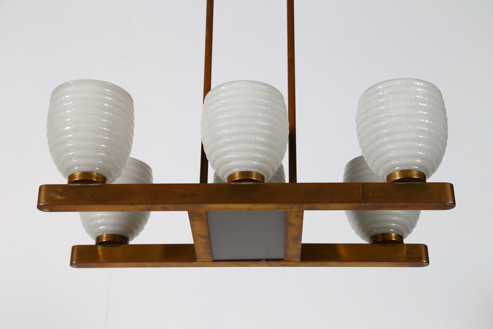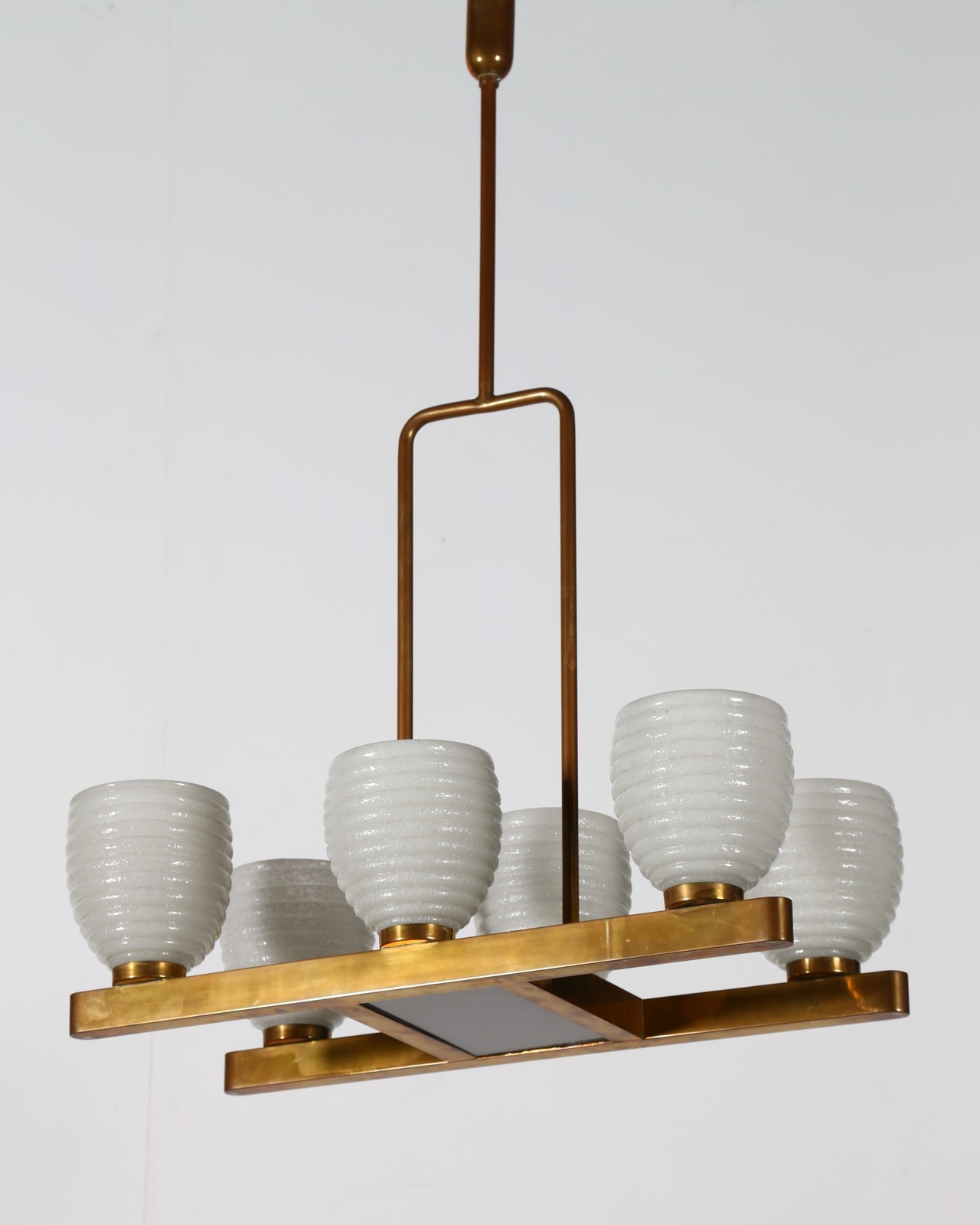 VENINI Lampadario sei luci. -. Cm 73,00 x 110,00 x 44,00. Struttura in ottone...