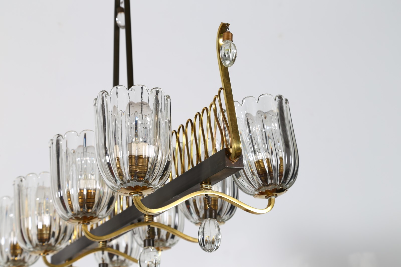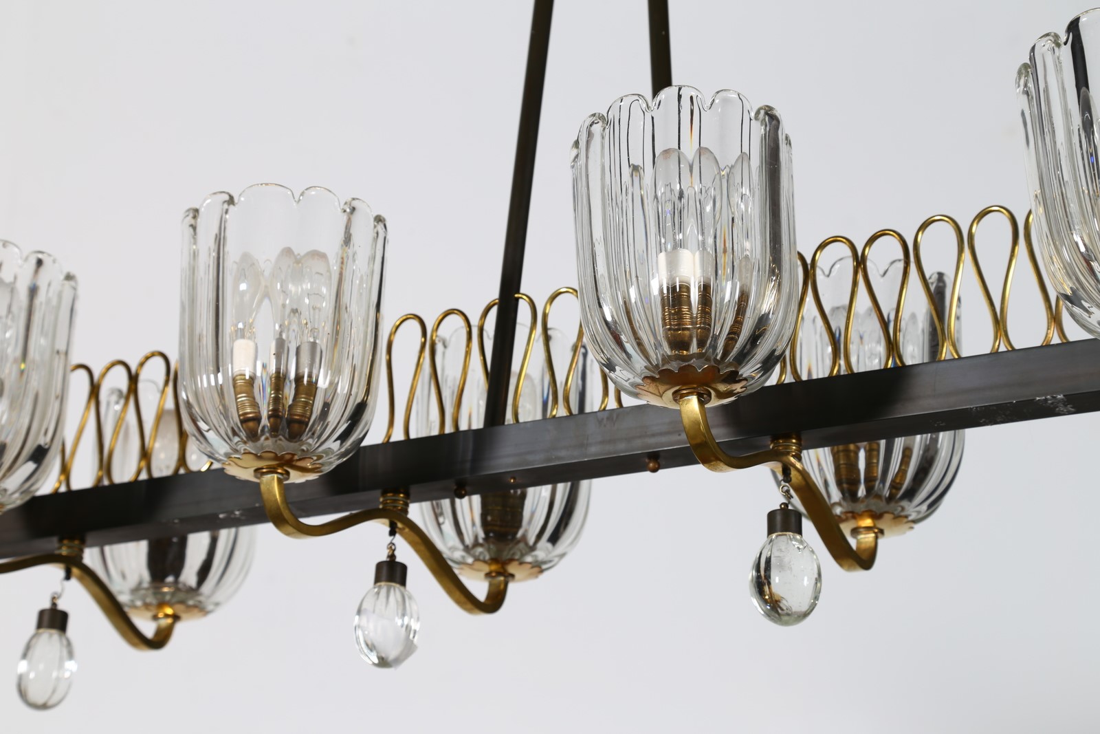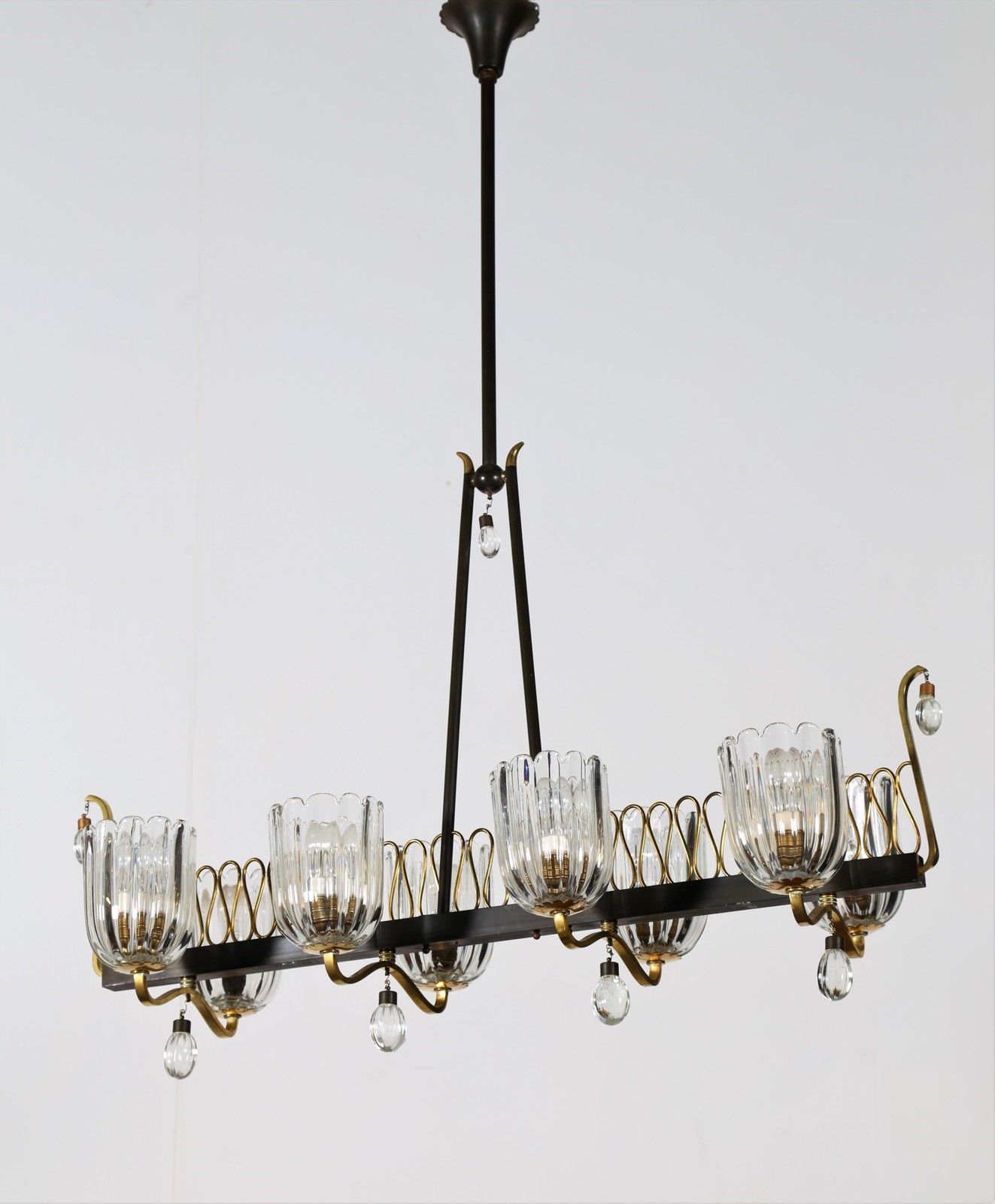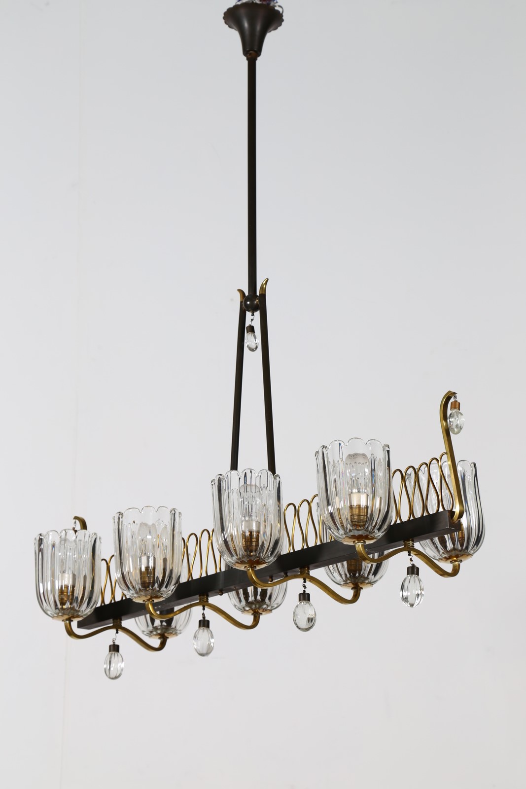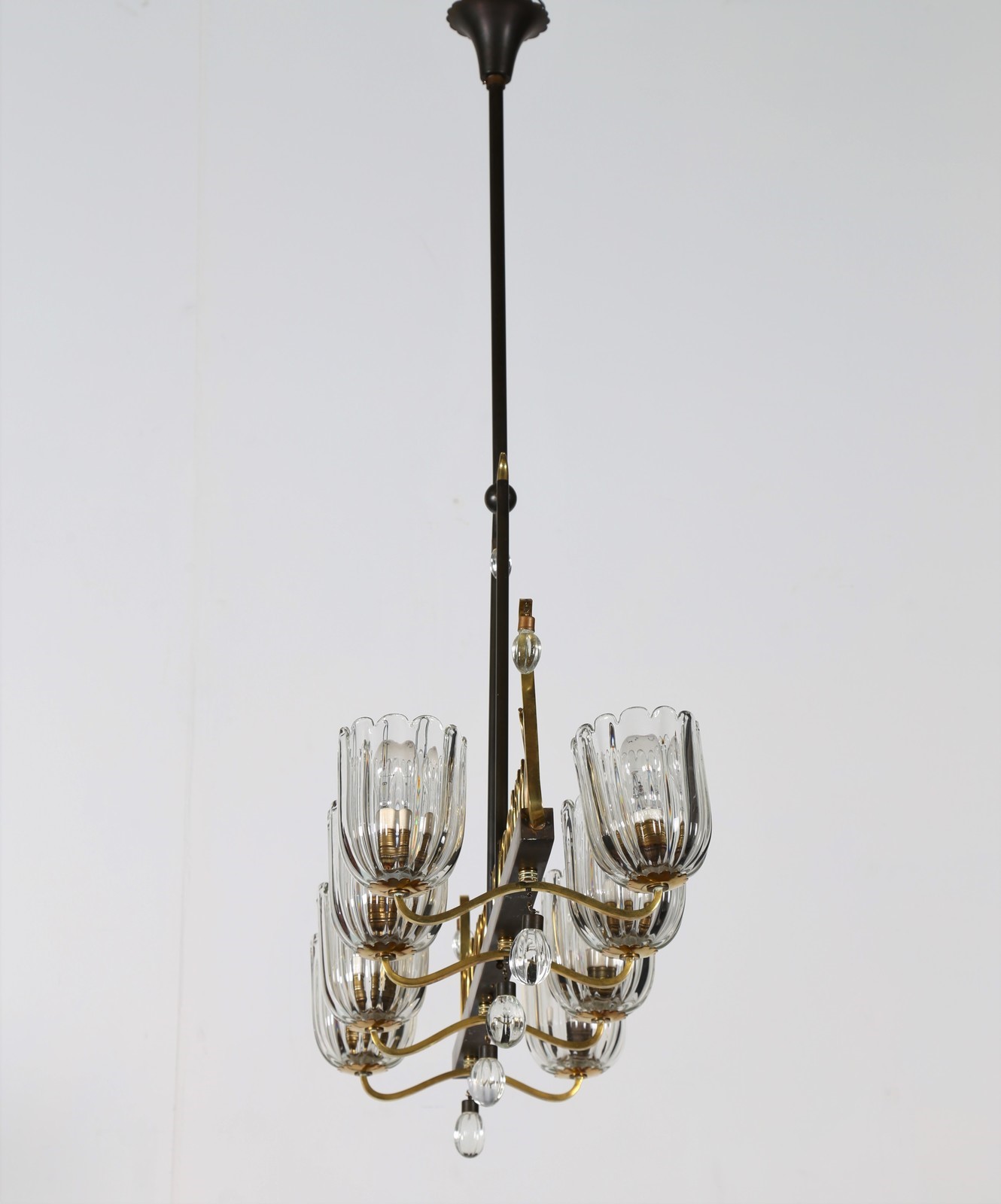 MANIFATTURA ITALIANA Lampadario otto luci. -. Cm 98,00 x 110,00 x 33,00. Ottone e vetro