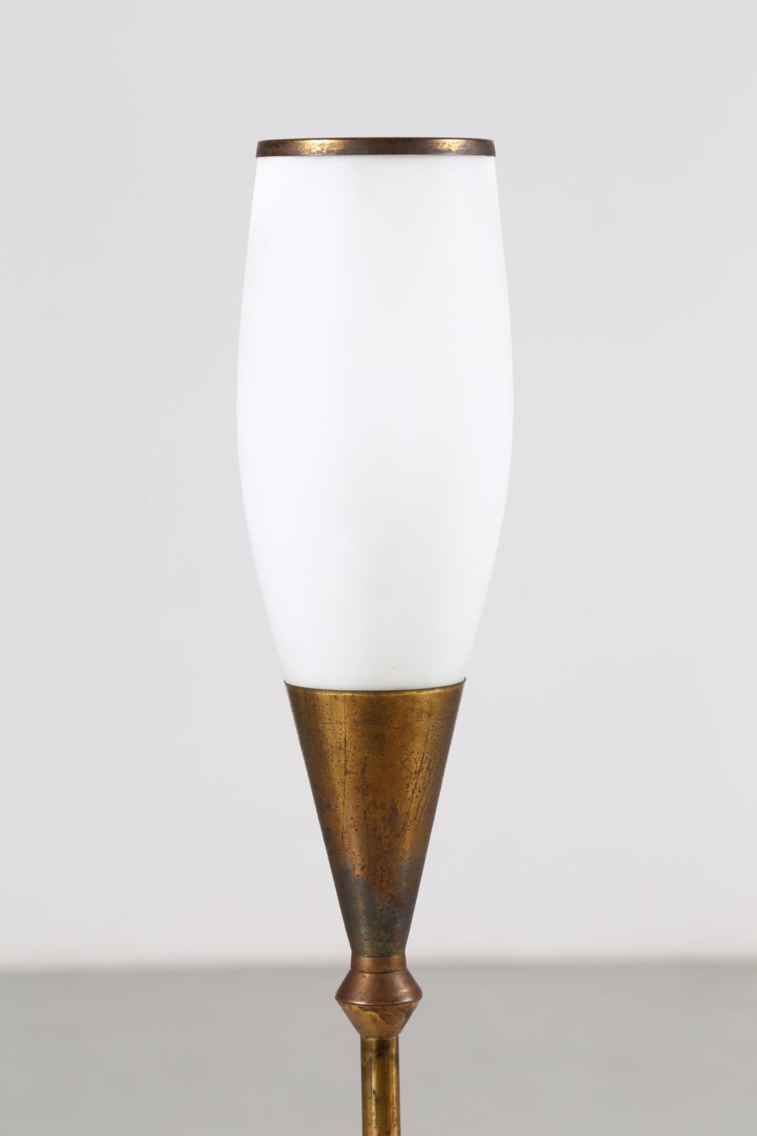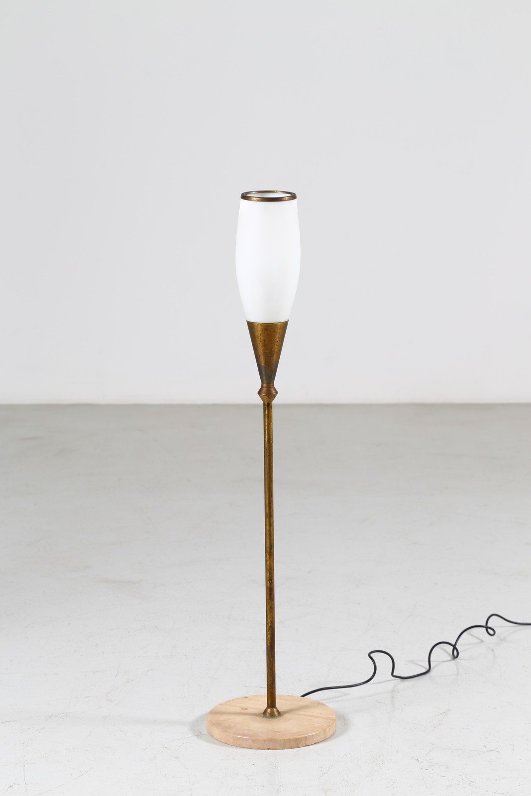 MANIFATTURA ITALIANA Lampada da terra, anni 50. -. Cm 24,50 x 104,00 x 24,50. Vetro opalino, ottone e marmo
