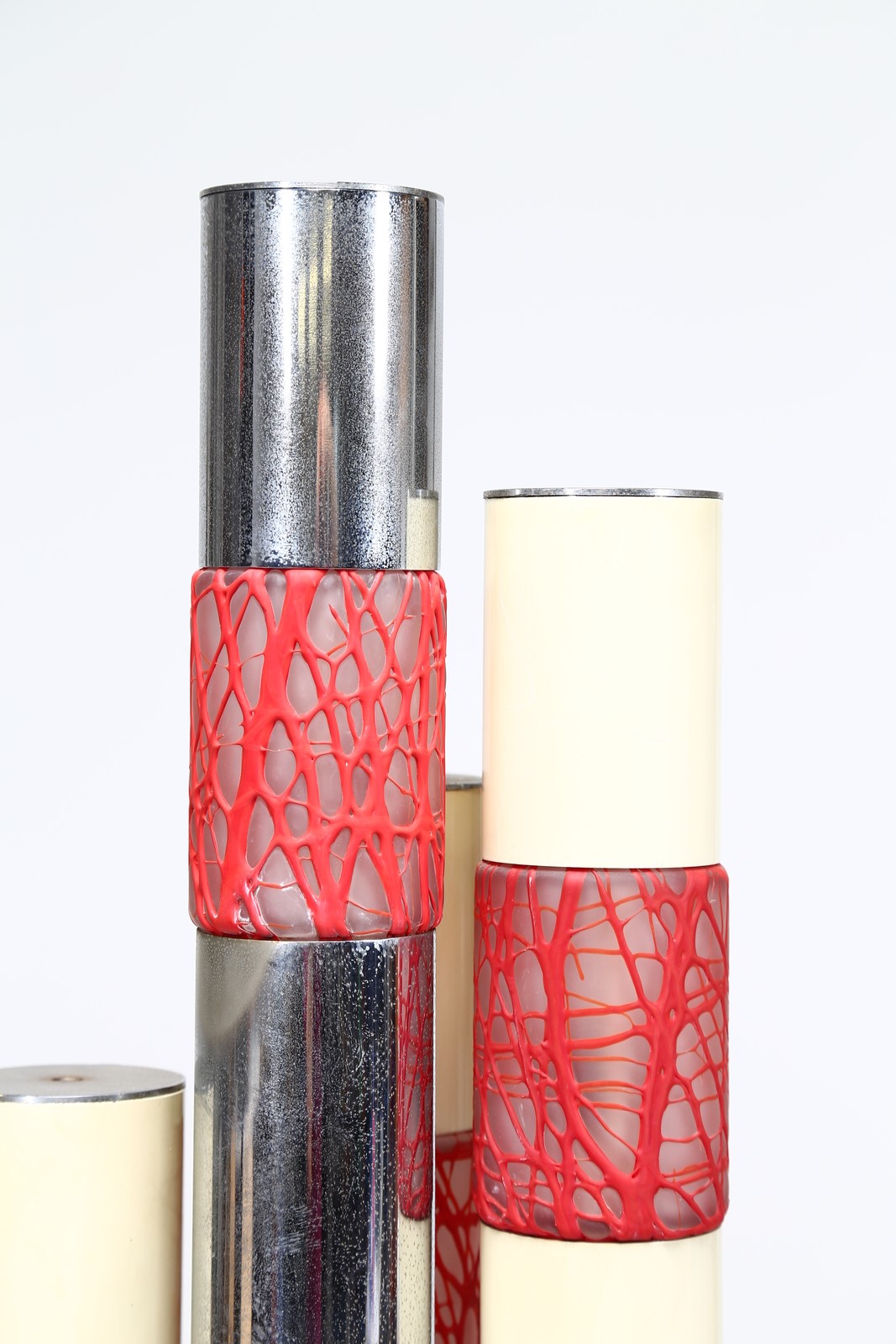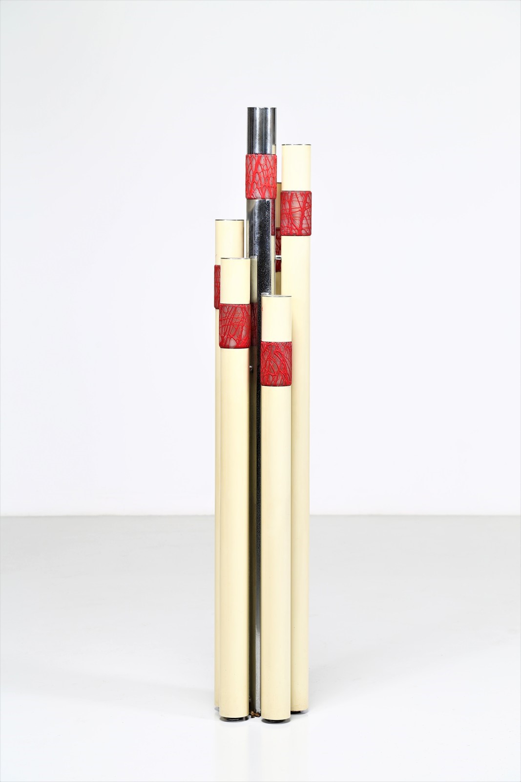 BROTTO ANGELO (1914 - 2002) Lampada da terra in metallo laccato, cromato e vetro, per Esperia anni 70. -. Cm 26,00 x 165,00 x 26,00.