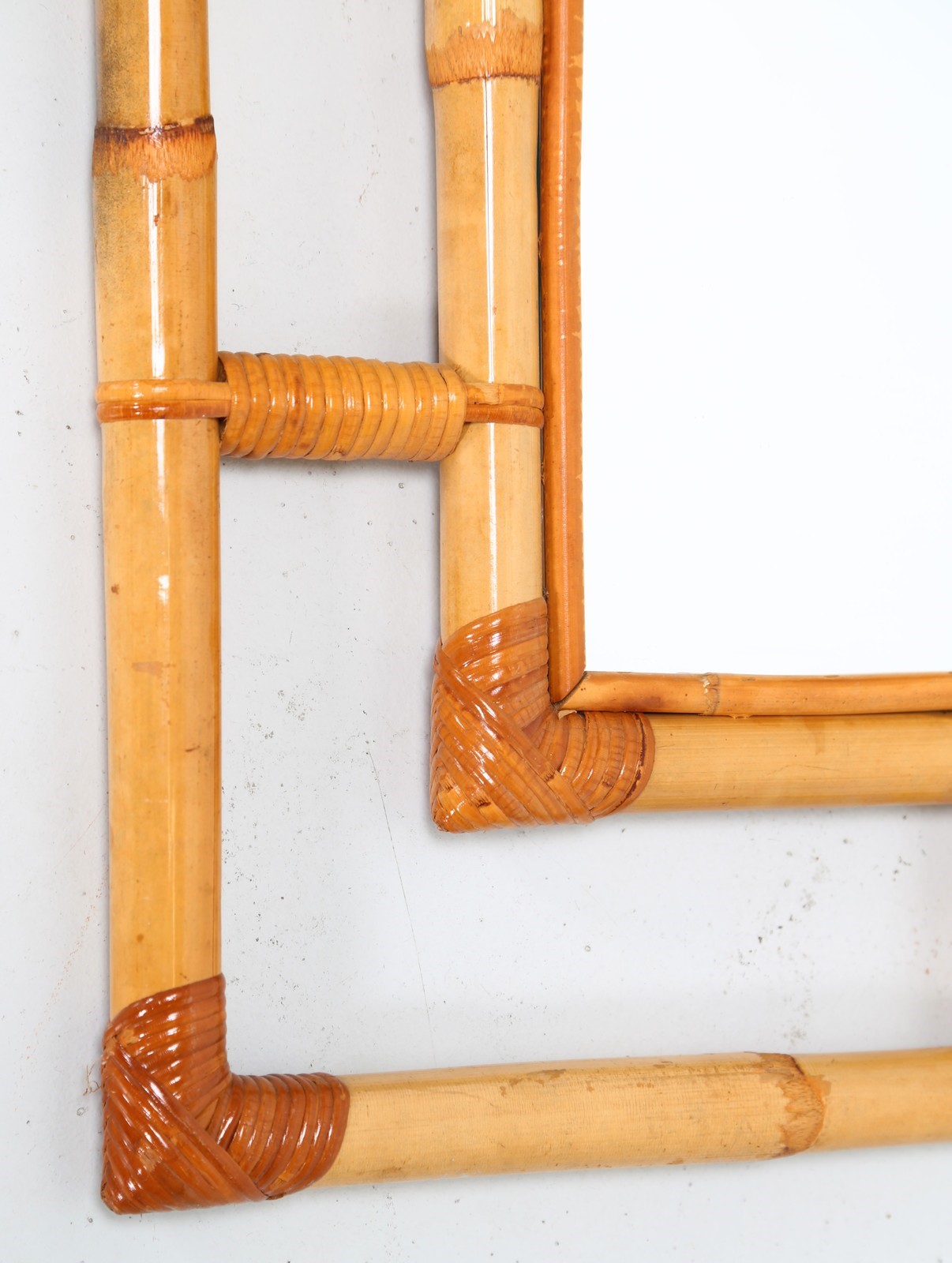 MANIFATTURA ITALIANA Specchiera in bambù e vetro,. -. Cm 60,50 x 81,00 x 3,00.