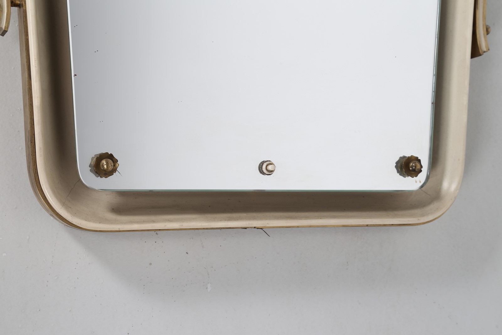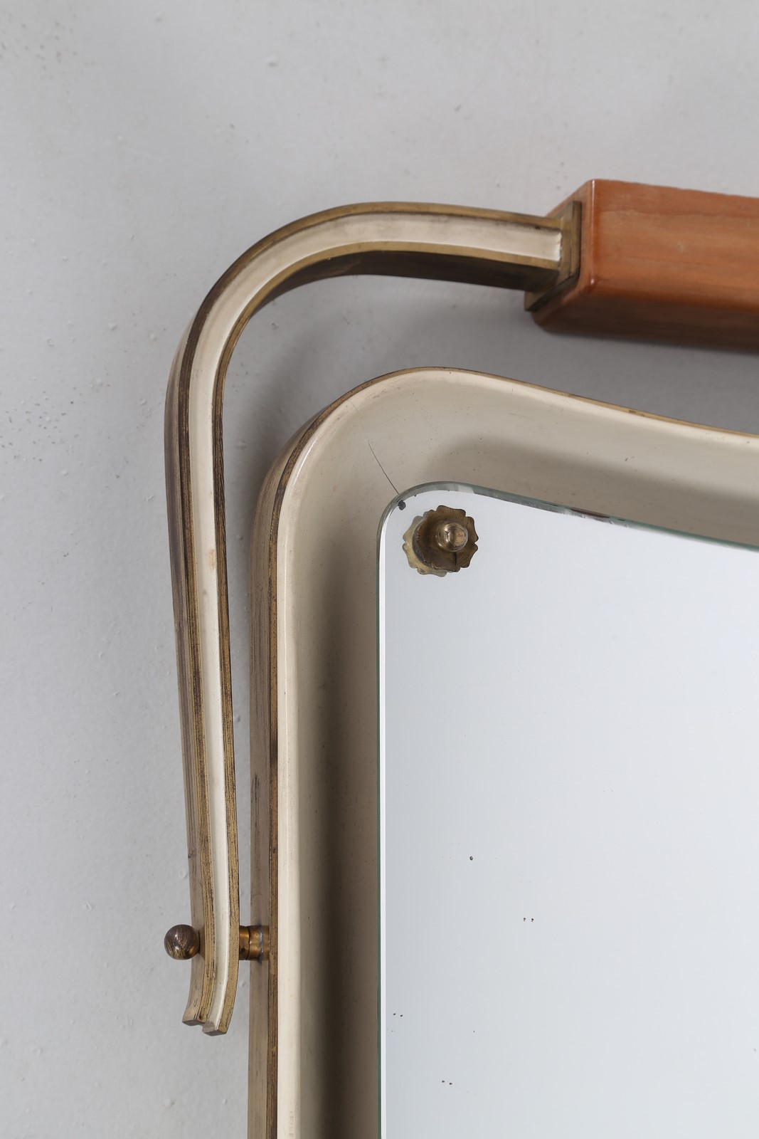 Lotto 184 | MANIFATTURA ITALIANA Specchio da tavolo in metallo laccato ottone, legno,...