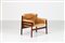 MANIFATTURA ITALIANA Poltroncina in palissandro e tessuto, anni 50. -. Cm...