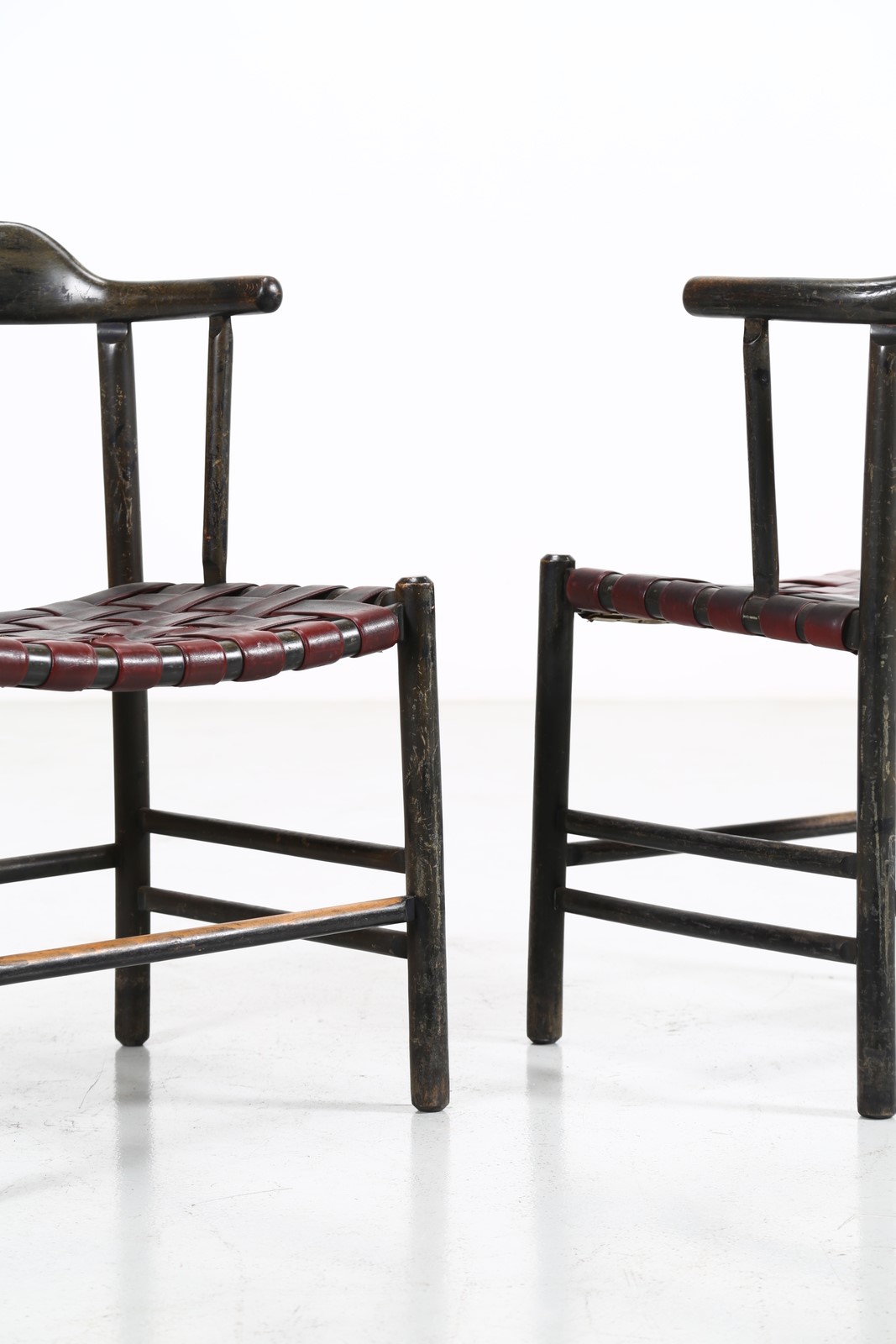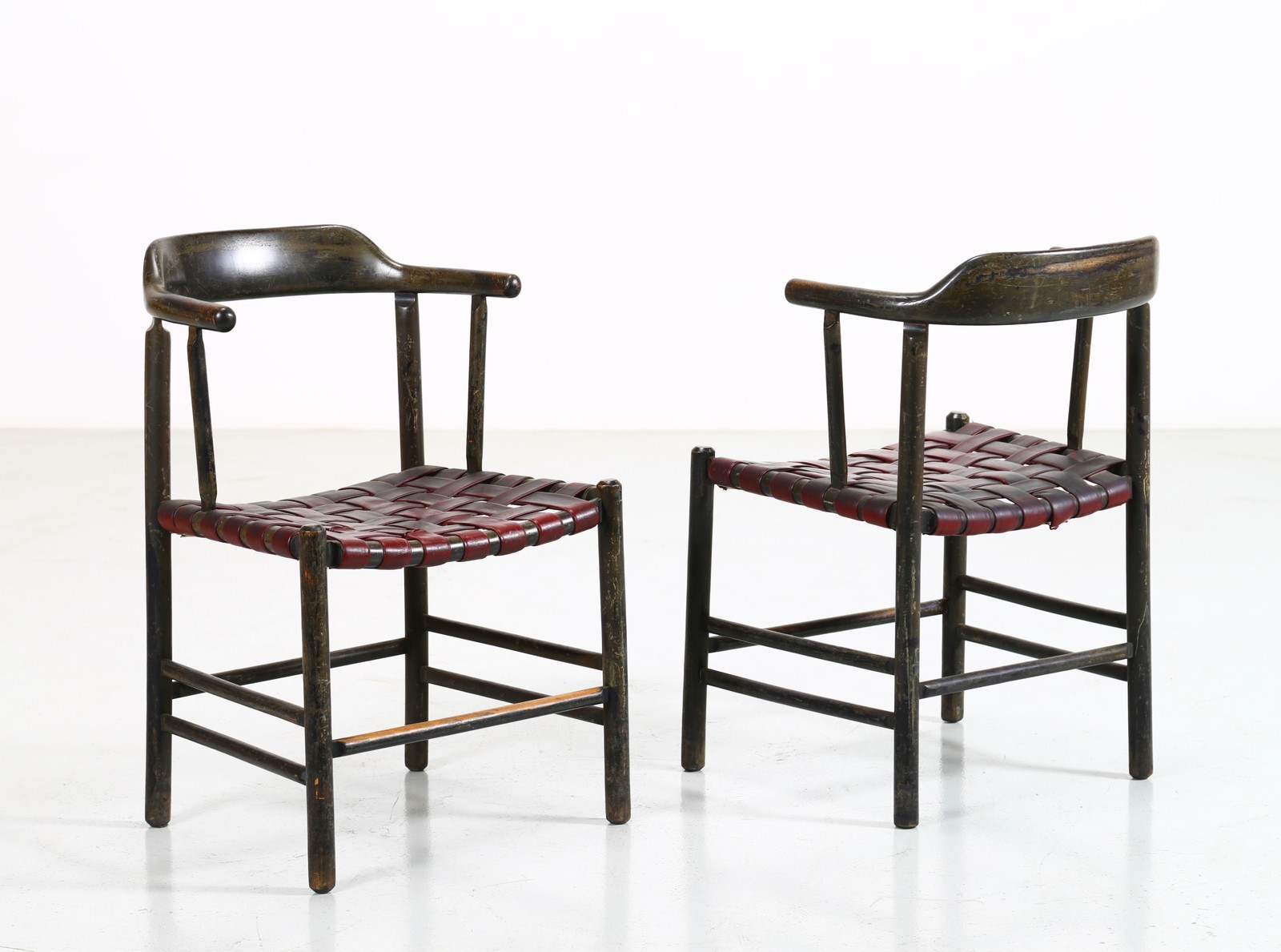 MANIFATTURA DANESE Coppia poltroncine anni 60 . -. Cm 50,00 x 65,00 x 50,00. Legno e pelle