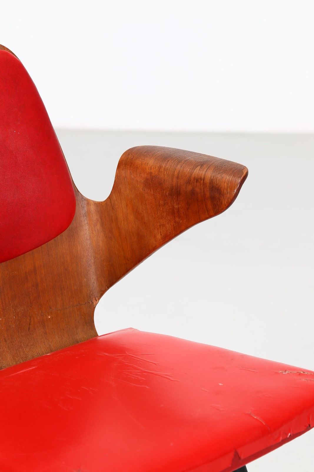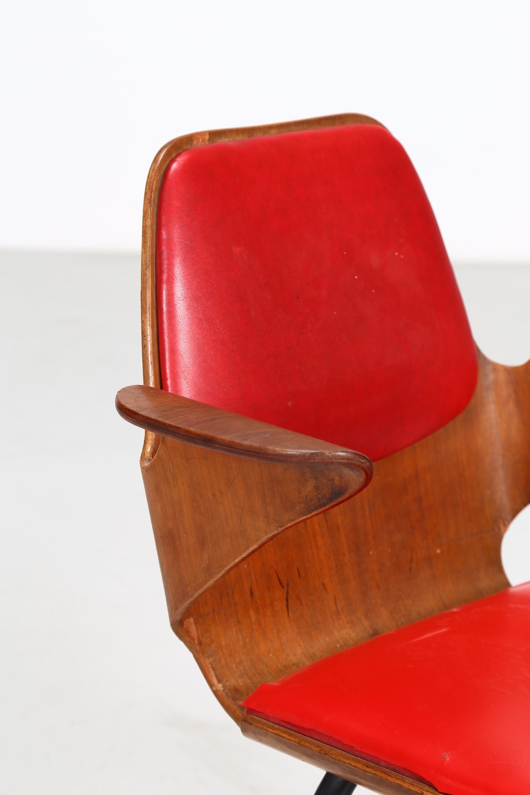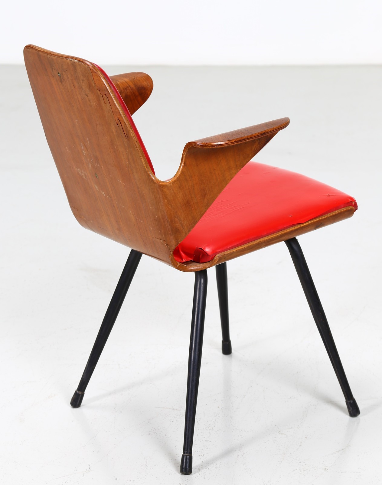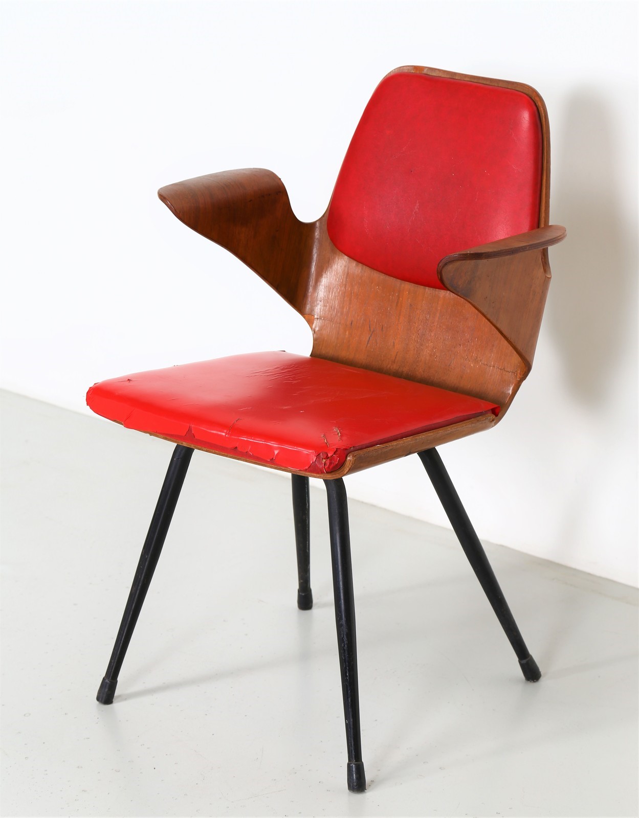 MANIFATTURA ITALIANA Sedia anni 60. -. Cm 56,00 x 79,00 x 55,00. Legno curvo, metallo laccato e skai