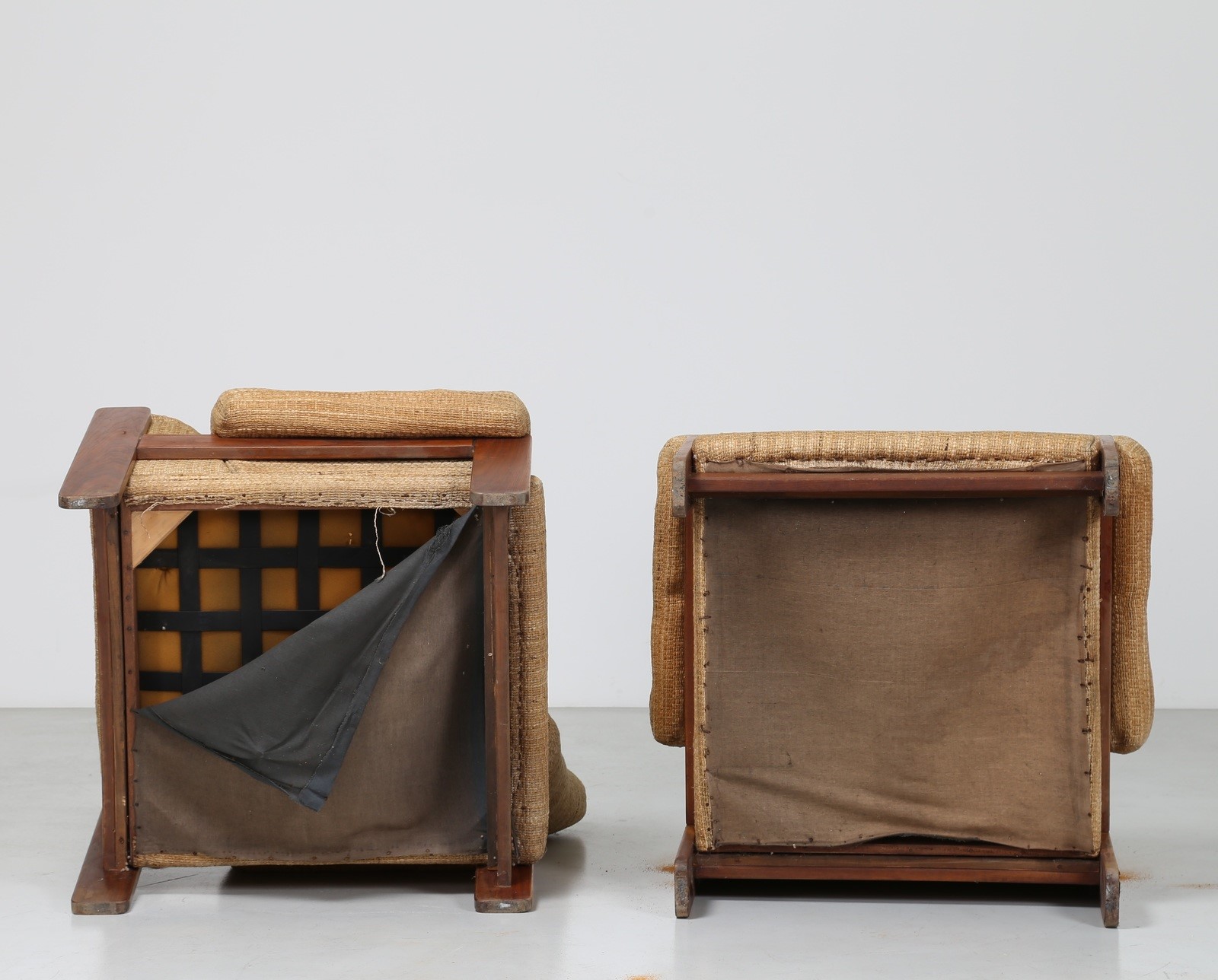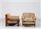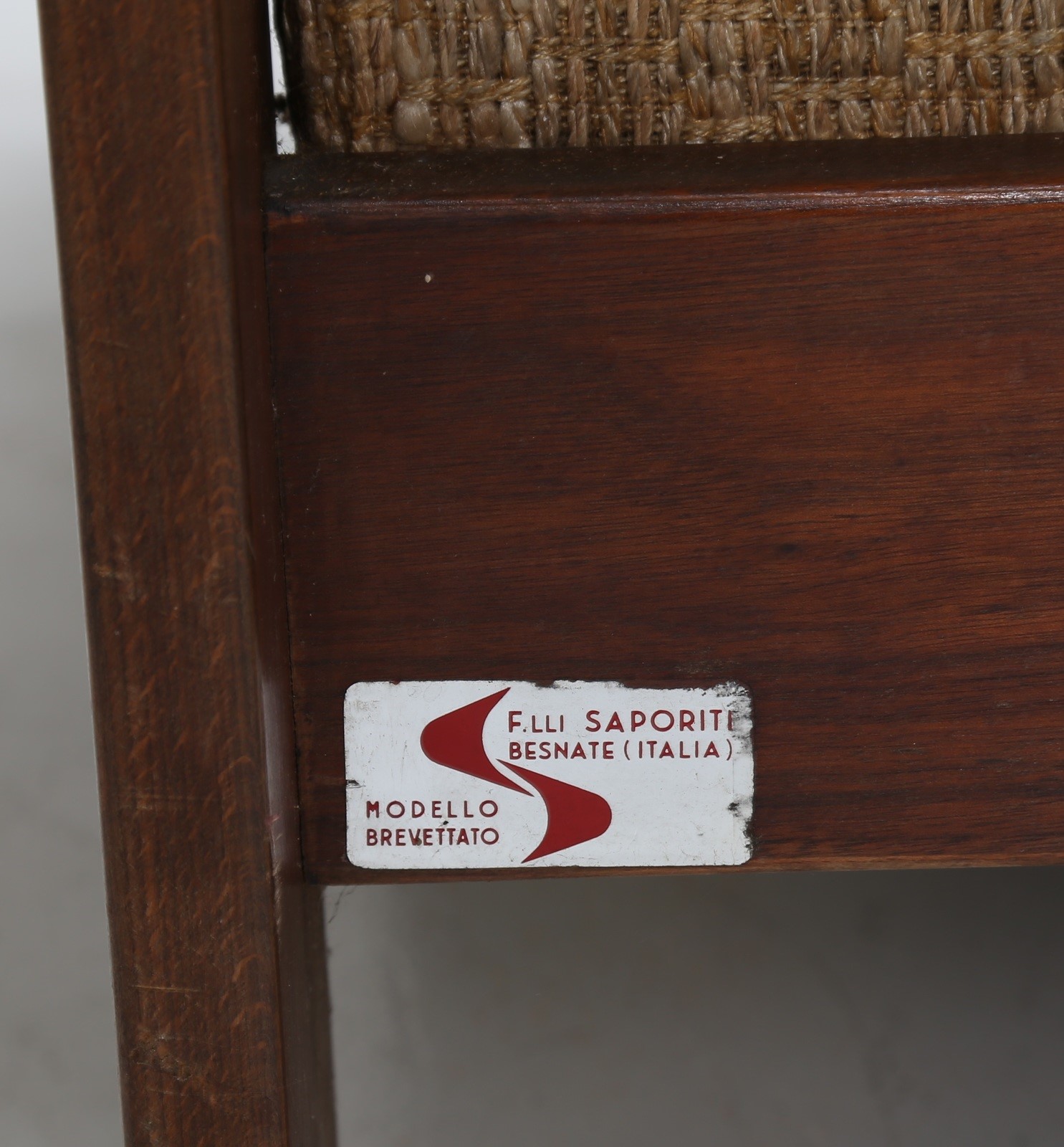 SAPORITI SERGIO Coppia poltrone in legno e tessuto originale, per F.lli...