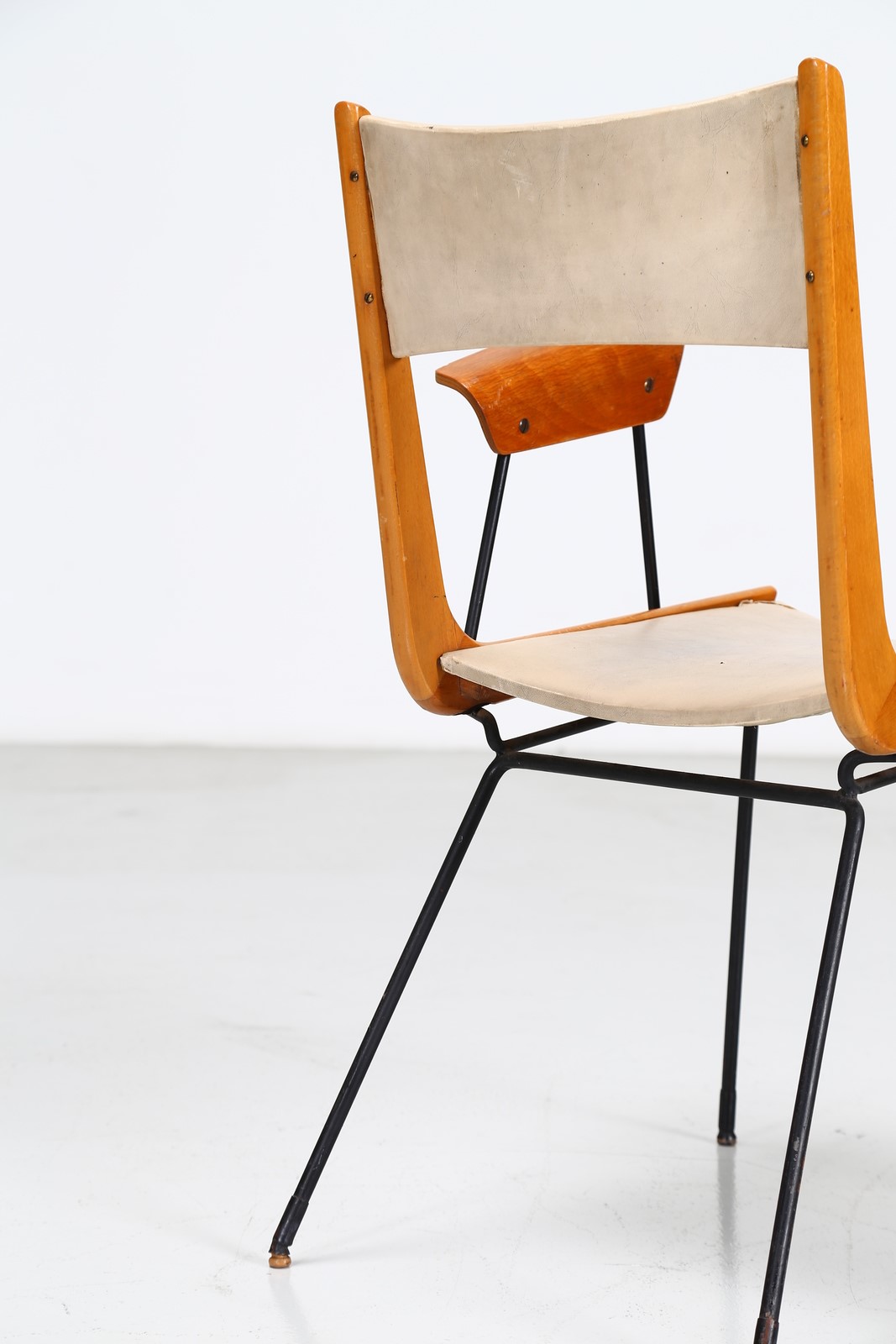 Lotto 218 | MANIFATTURA ITALIANA Sedia in legno e skai, anni 50. -. Cm 60,00 x 81,50 x...