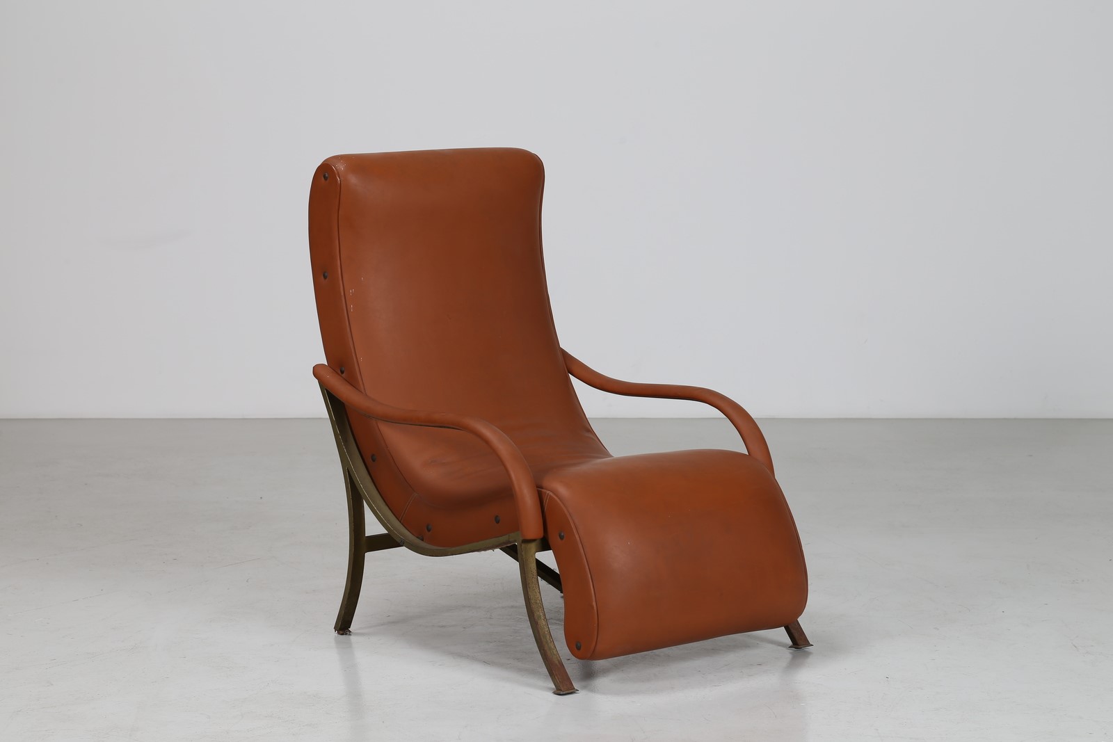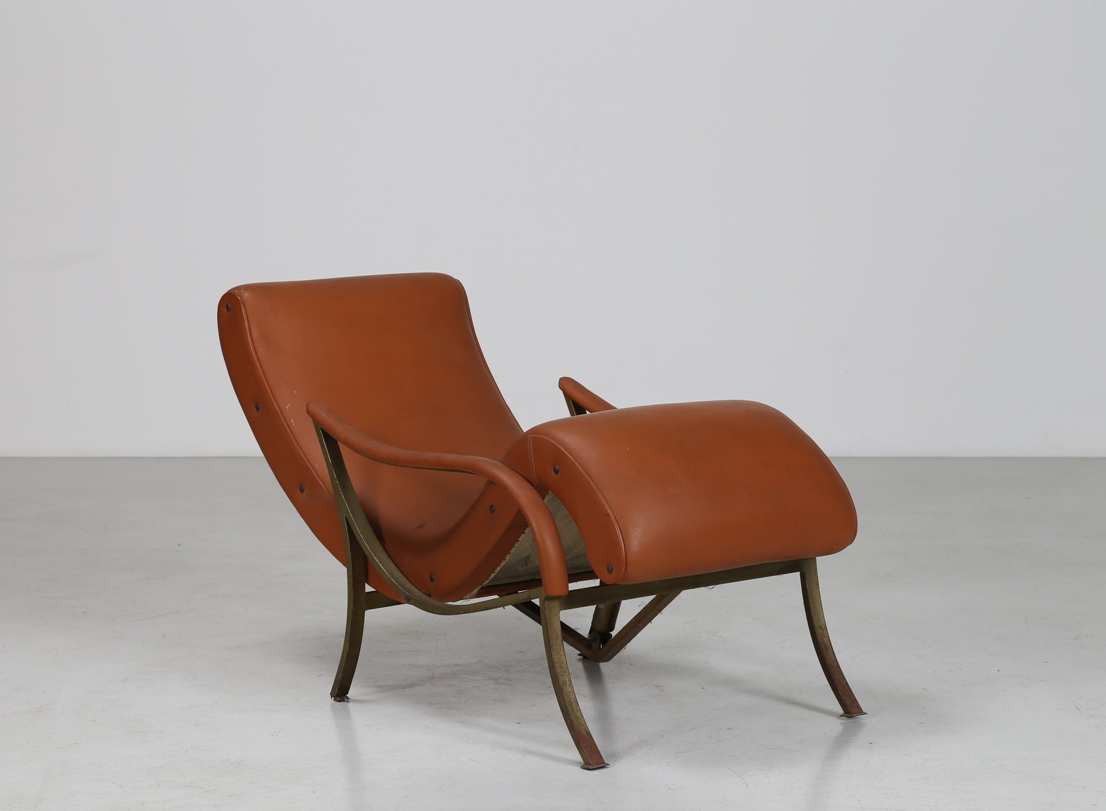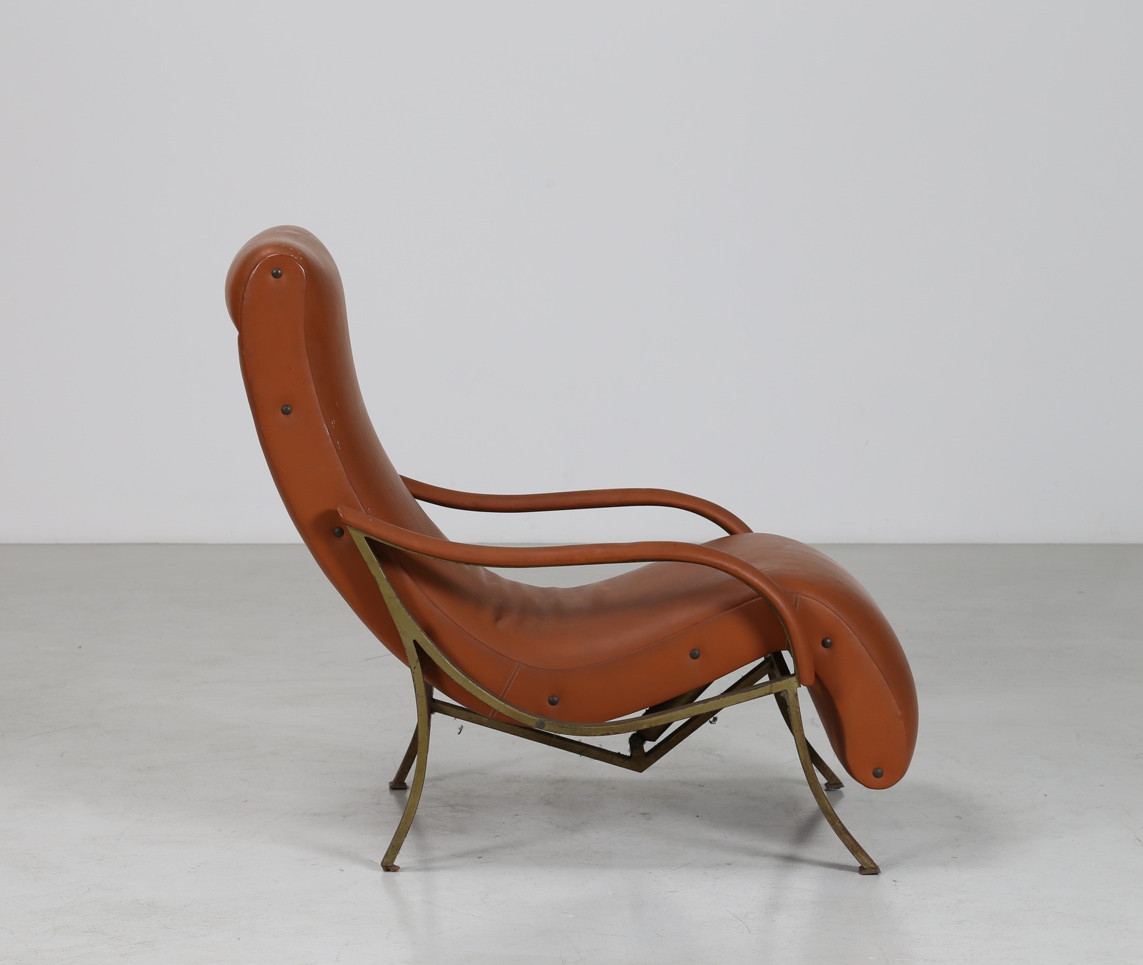 MANIFATTURA ITALIANA Poltrona a sdraio in metallo ottone e skai, anni 60. -....