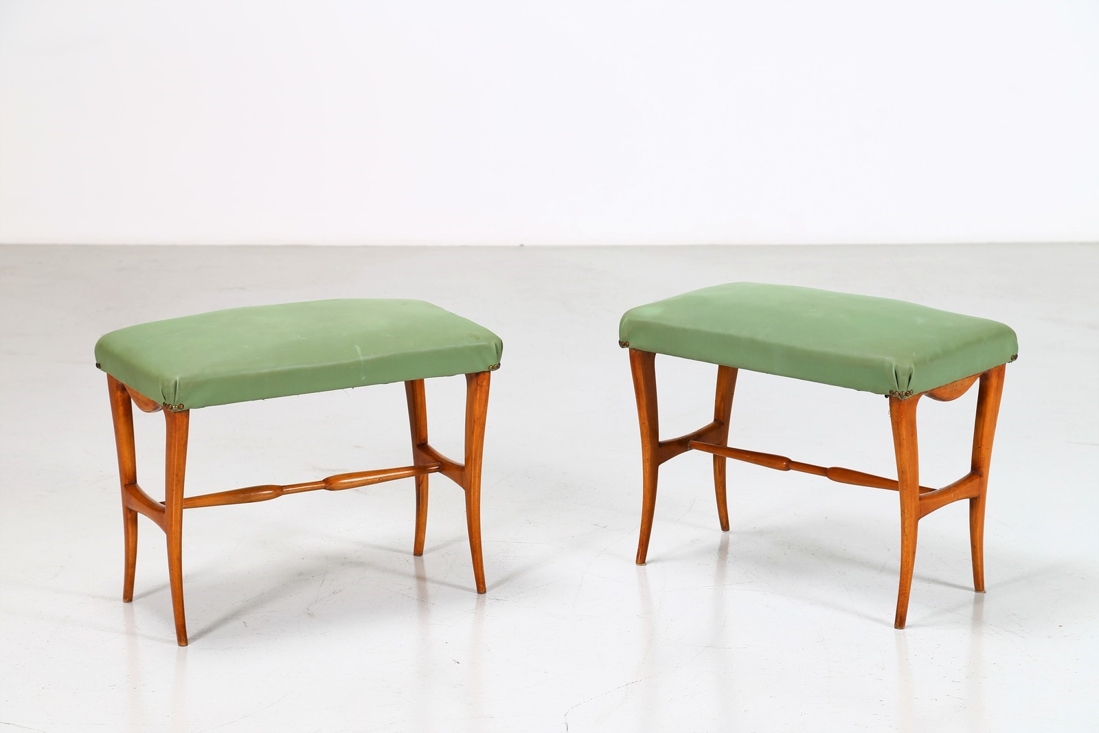 MANIFATTURA ITALIANA Coppia di panchetti in legno anni 50. -. Cm 59,00 x...