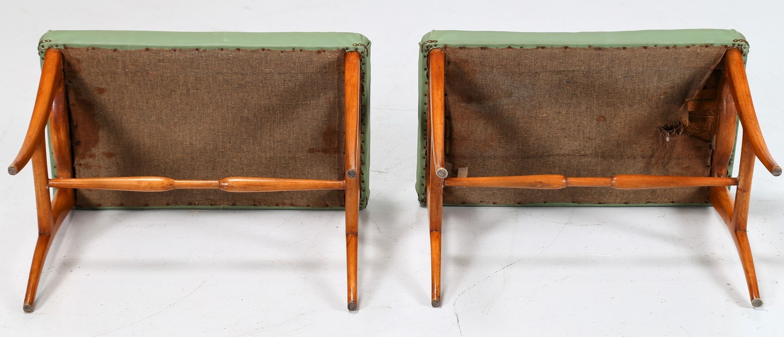 MANIFATTURA ITALIANA Coppia di panchetti in legno anni 50. -. Cm 59,00 x 45,00 x 36,00. Legno e skai