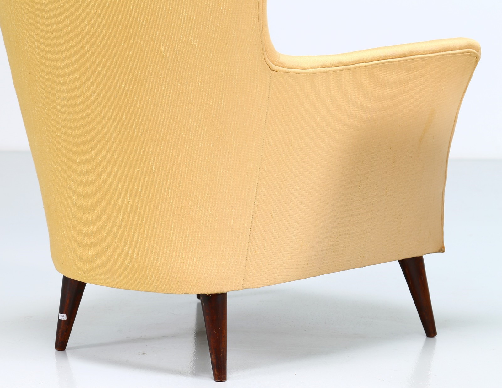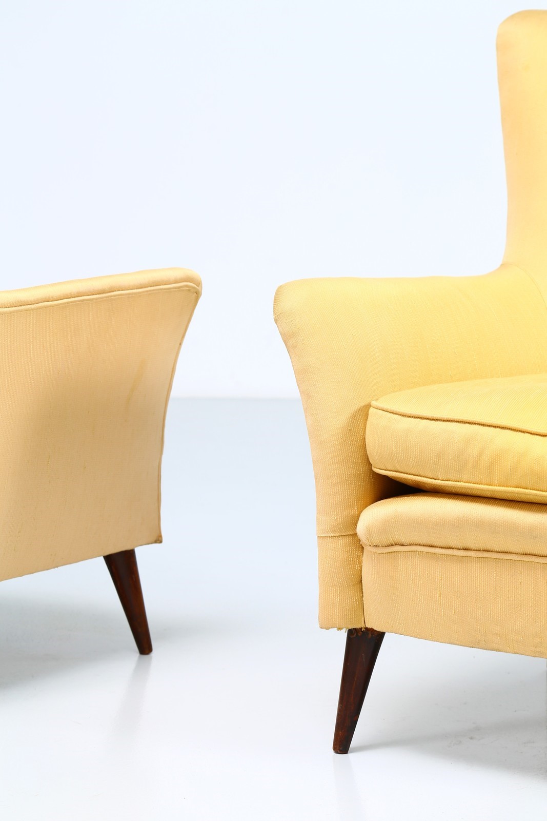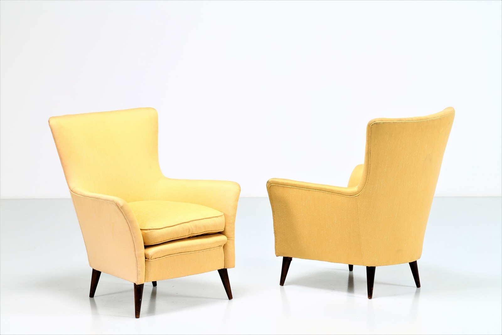 Lotto 227 | MANIFATTURA ITALIANA Coppia di poltrone in legno e tessuto, anni 50. -. Cm...