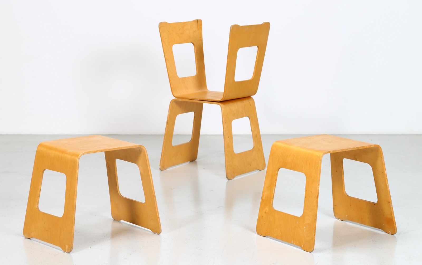MANIFATTURA ITALIANA Quattro sgabelli. -. Cm 50,00 x 45,00 x 41,00. Compensato curvato