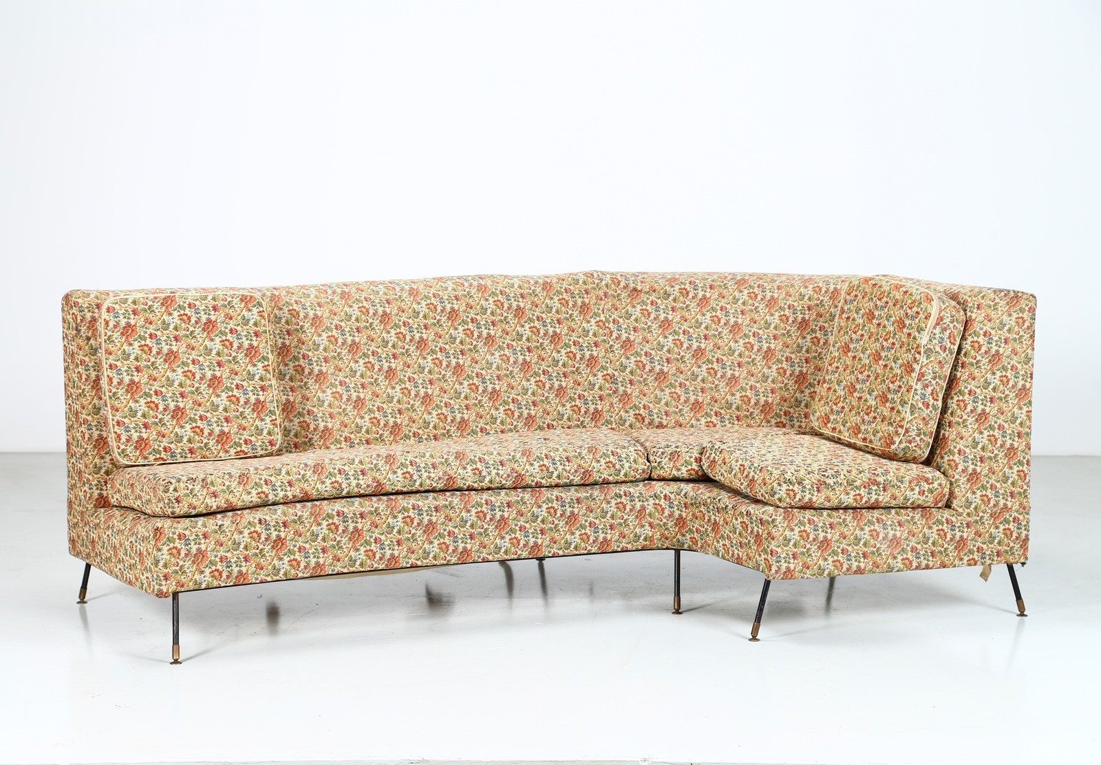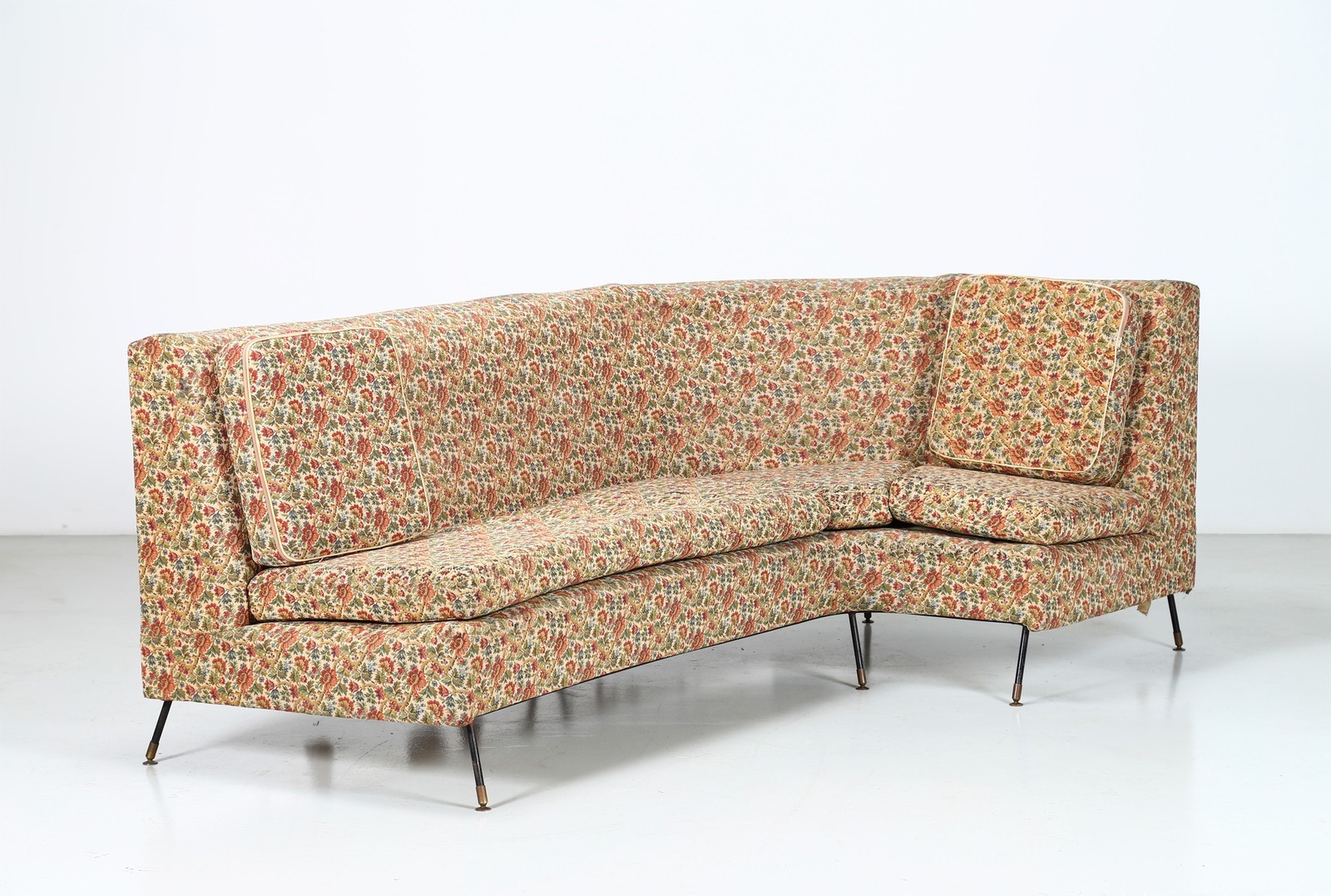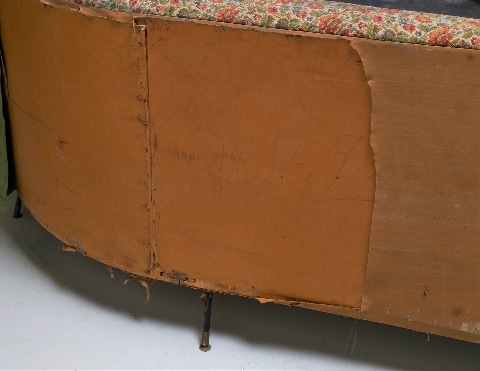 RADICE GIGI Divano curvo, anni 50. -. Cm 235,00 x 90,00 x 130,00. Metallo e tessuto