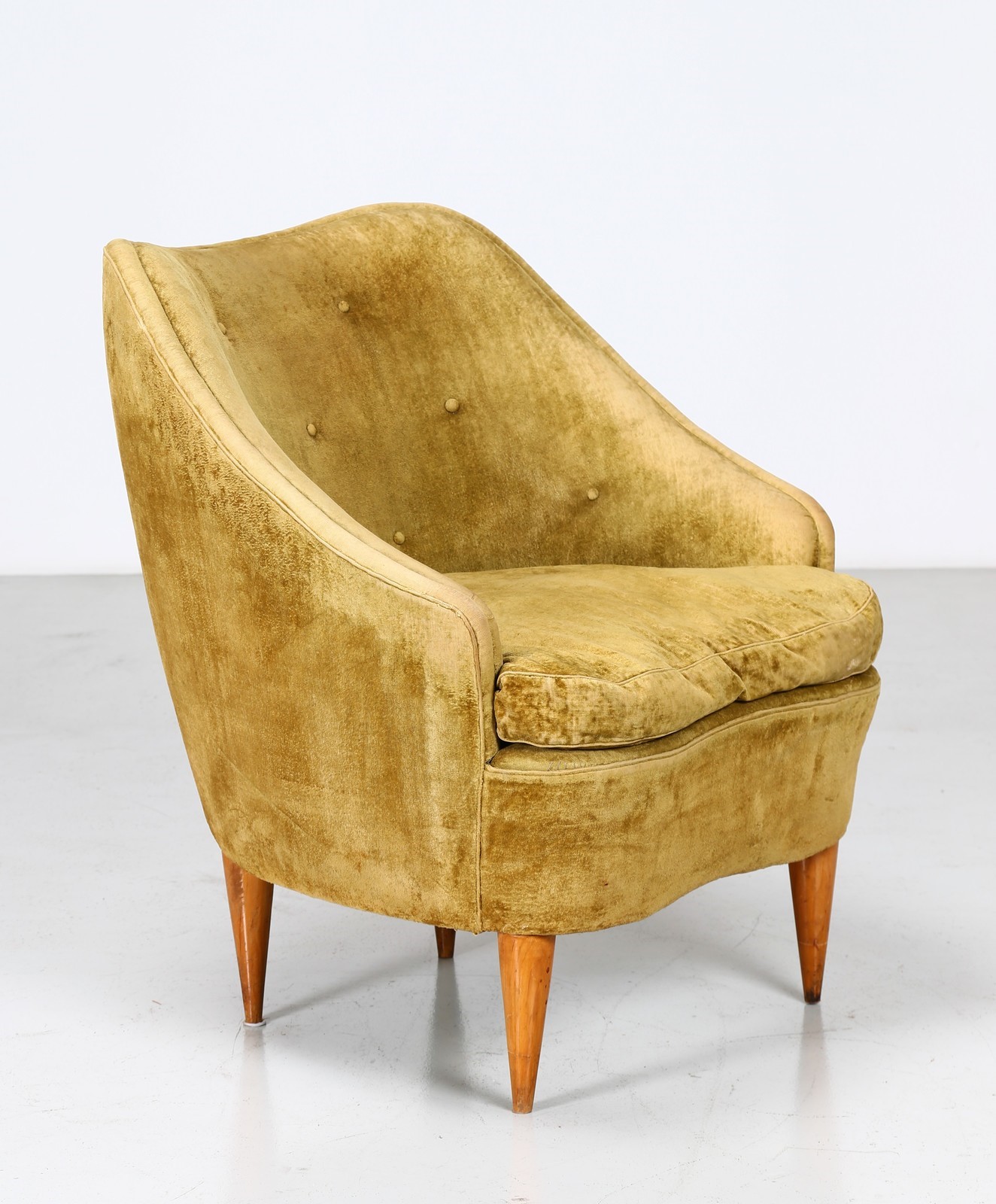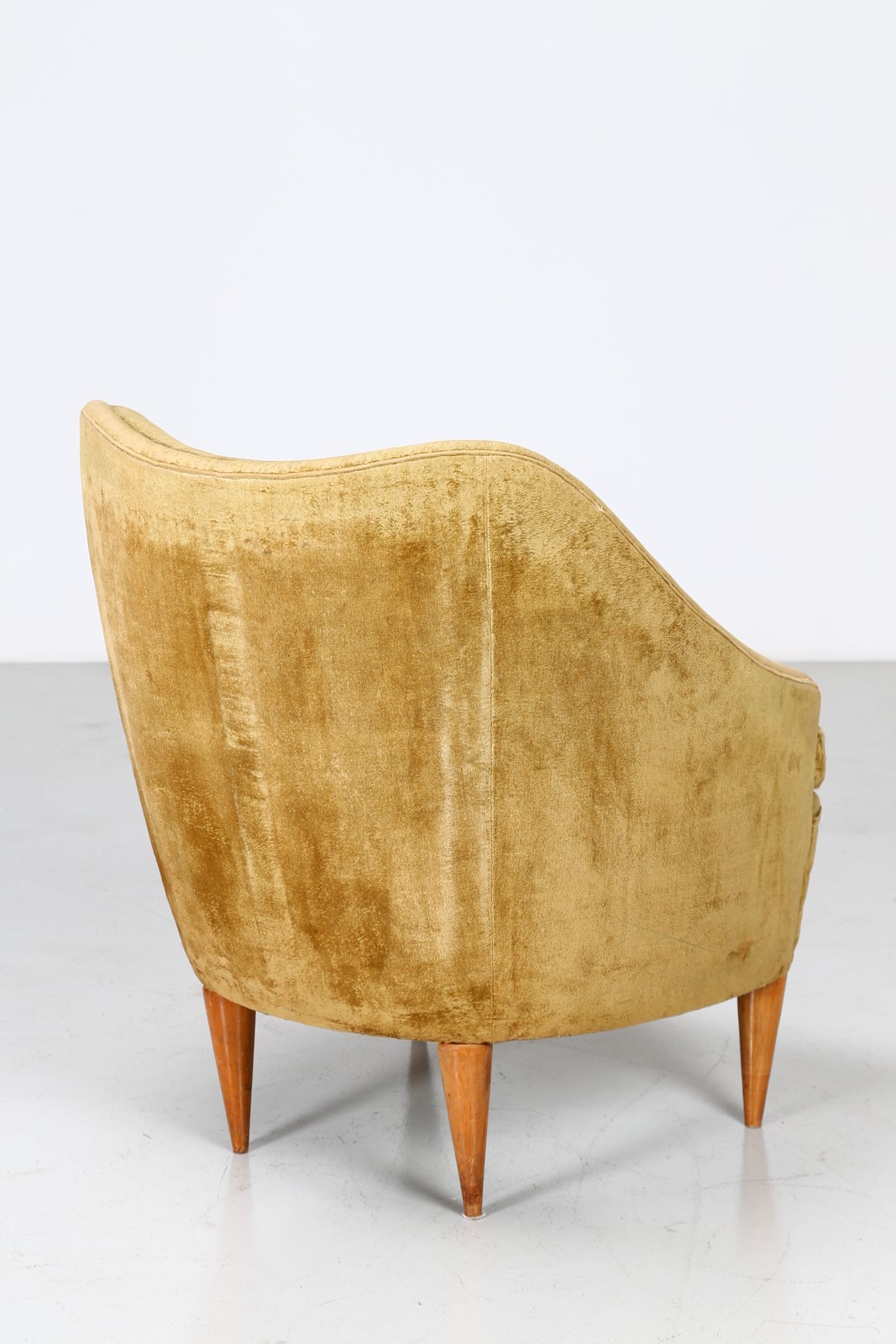 CASA E GIARDINO Poltrona in legno e tessuto, anni 40. -. Cm 79,00 x 94,00 x...