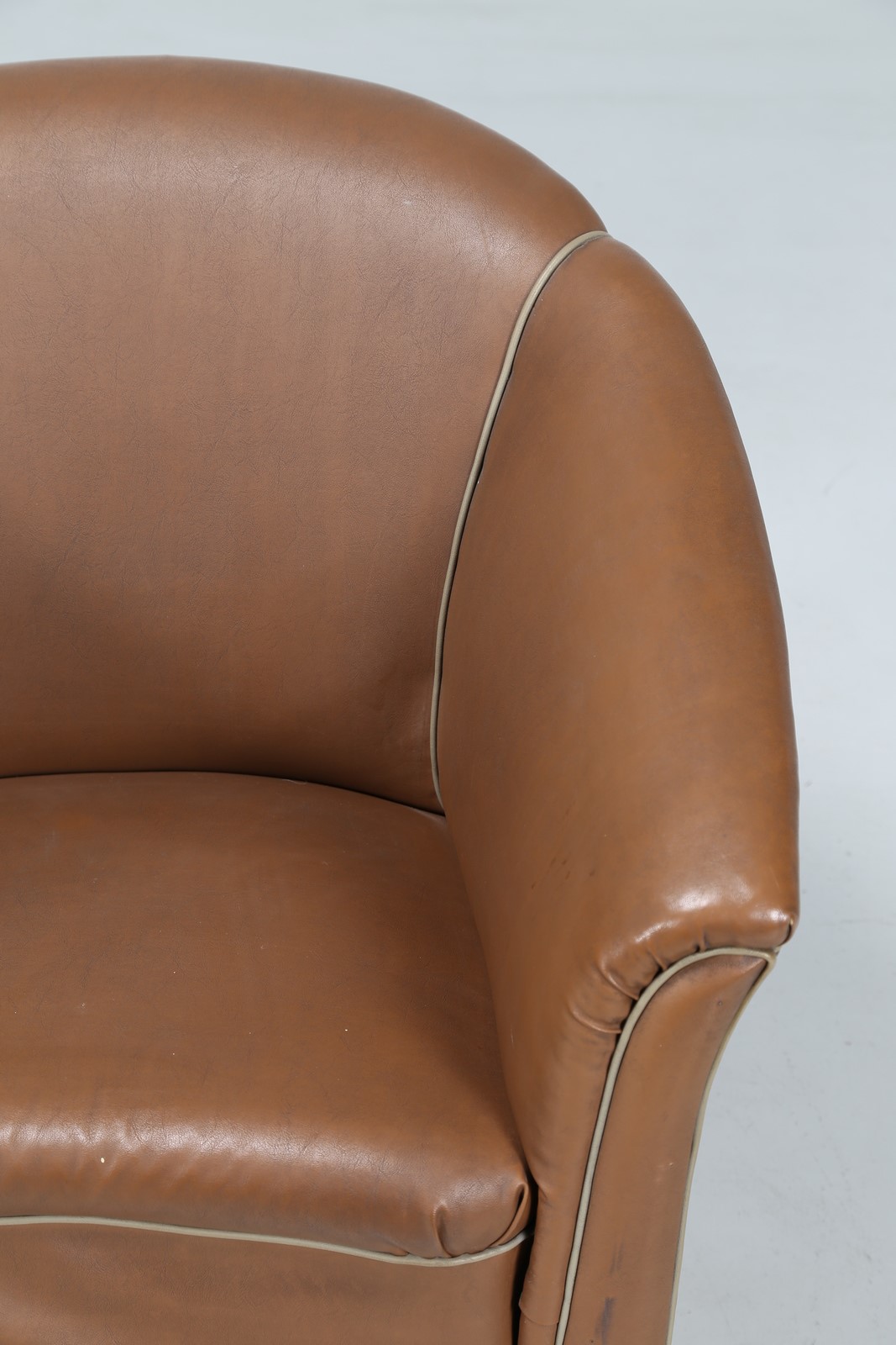 MANIFATTURA ITALIANA Coppia poltrone in legno e skai. -. Cm 75,00 x 78,00 x 67,00.