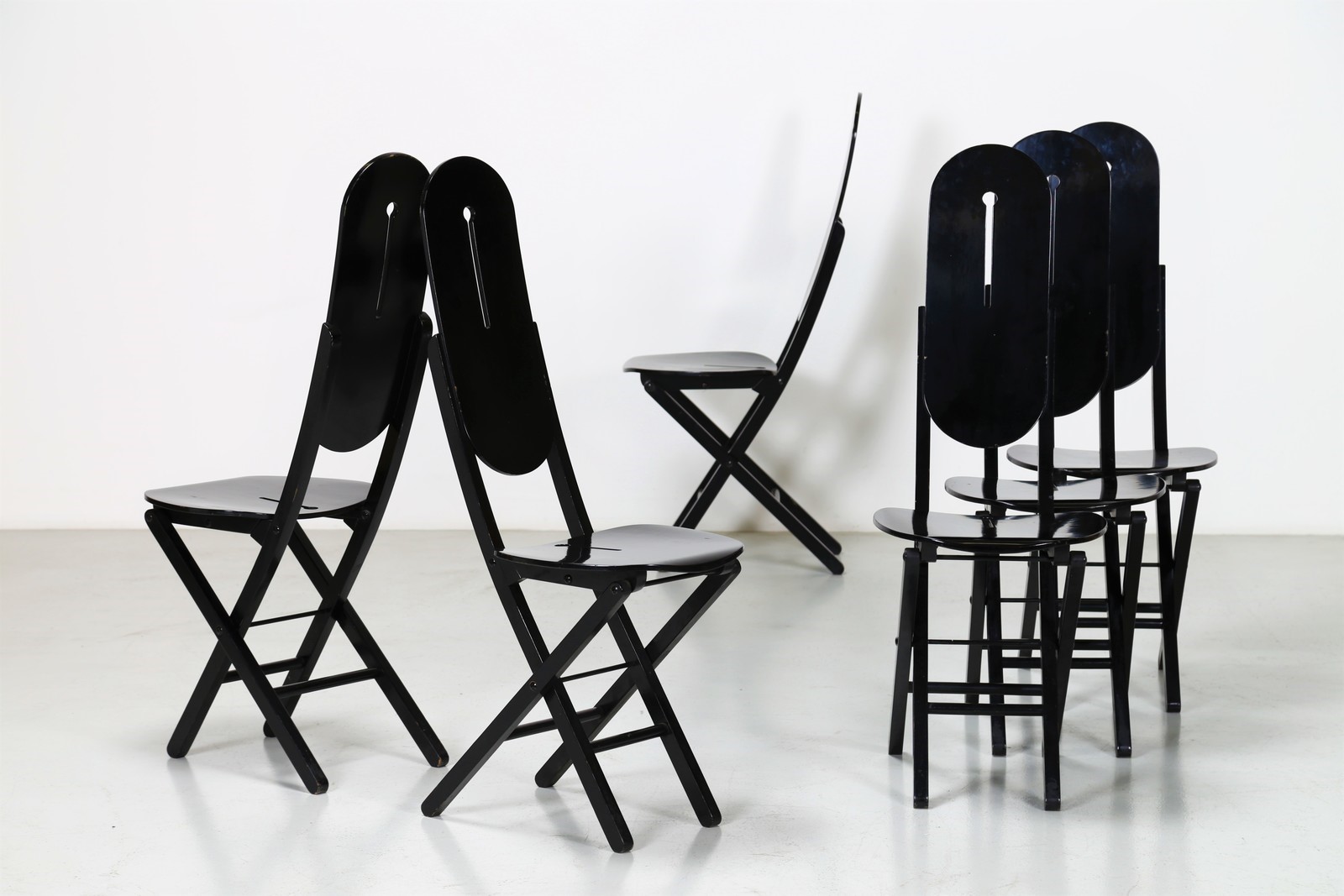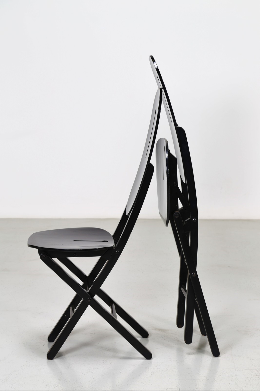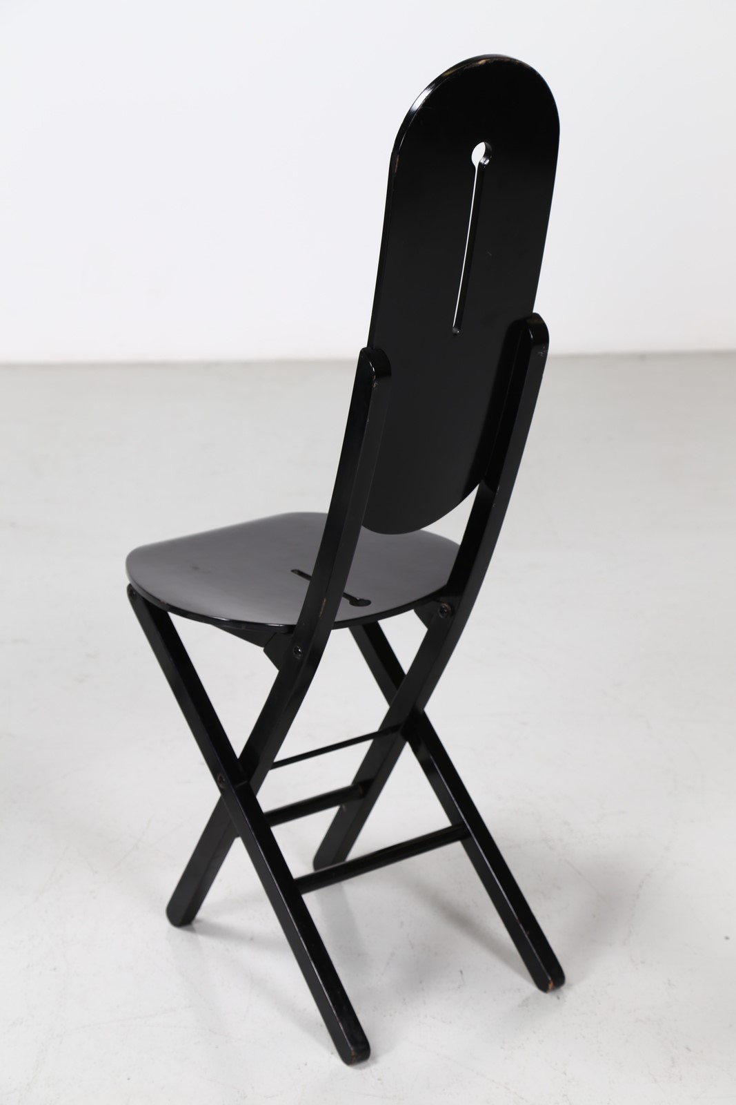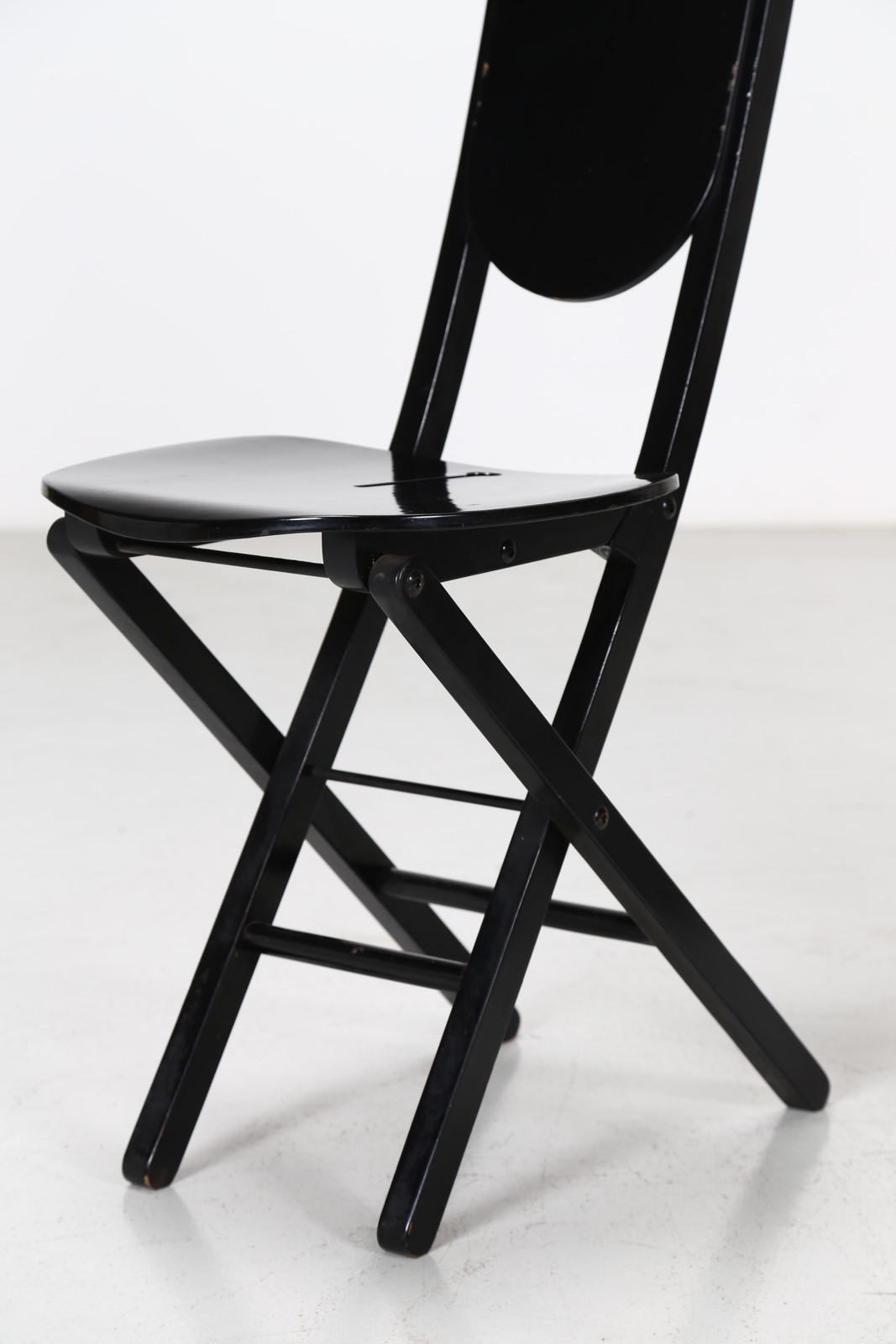MANIFATTURA ITALIANA Sei sedie pieghevoli. -. Cm 38,50 x 107,00 x 52,00. Legno laccato nero