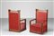 SELLO ANGELO Coppia di poltrone in legno d in noce e tessuto, per Mobilificio...