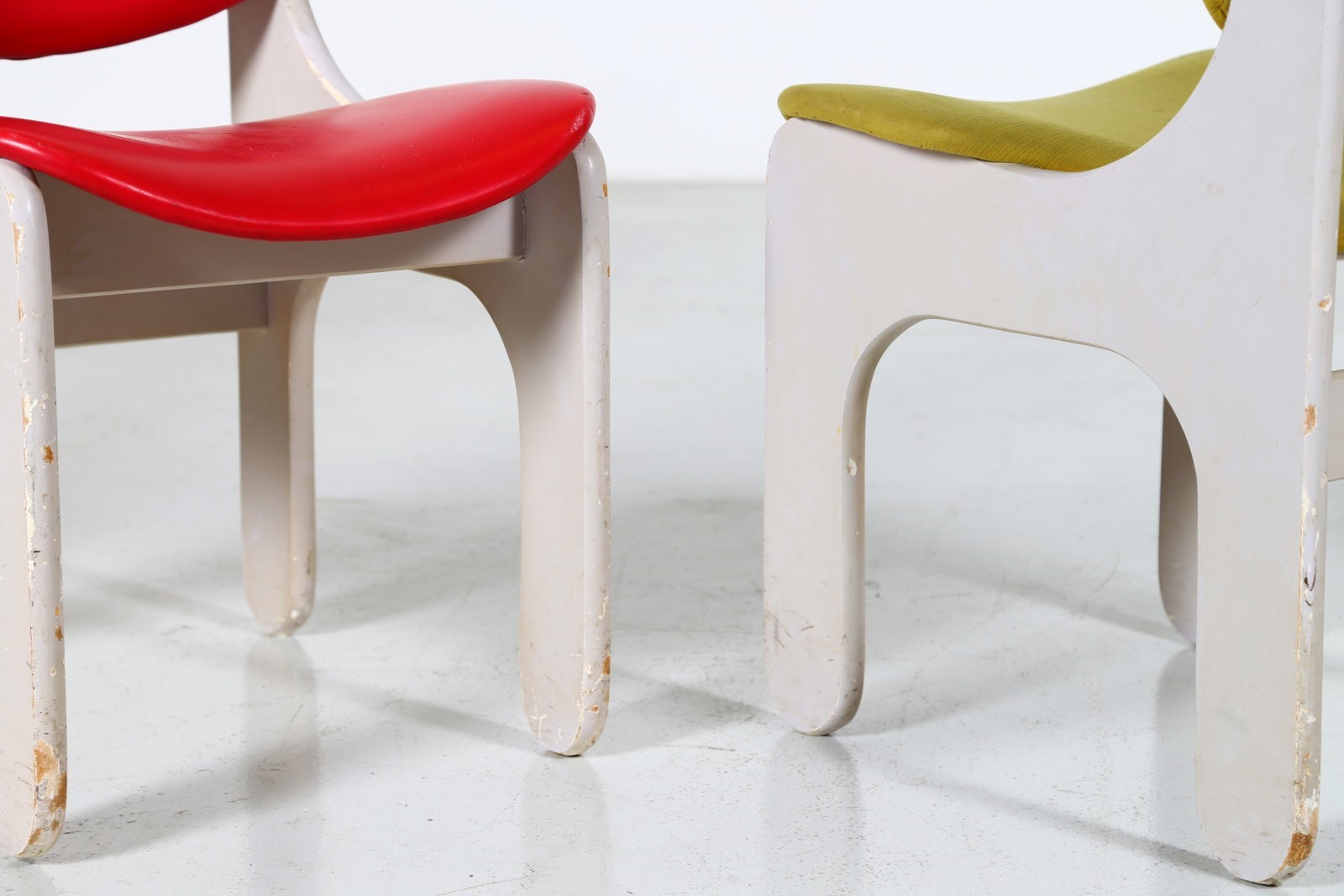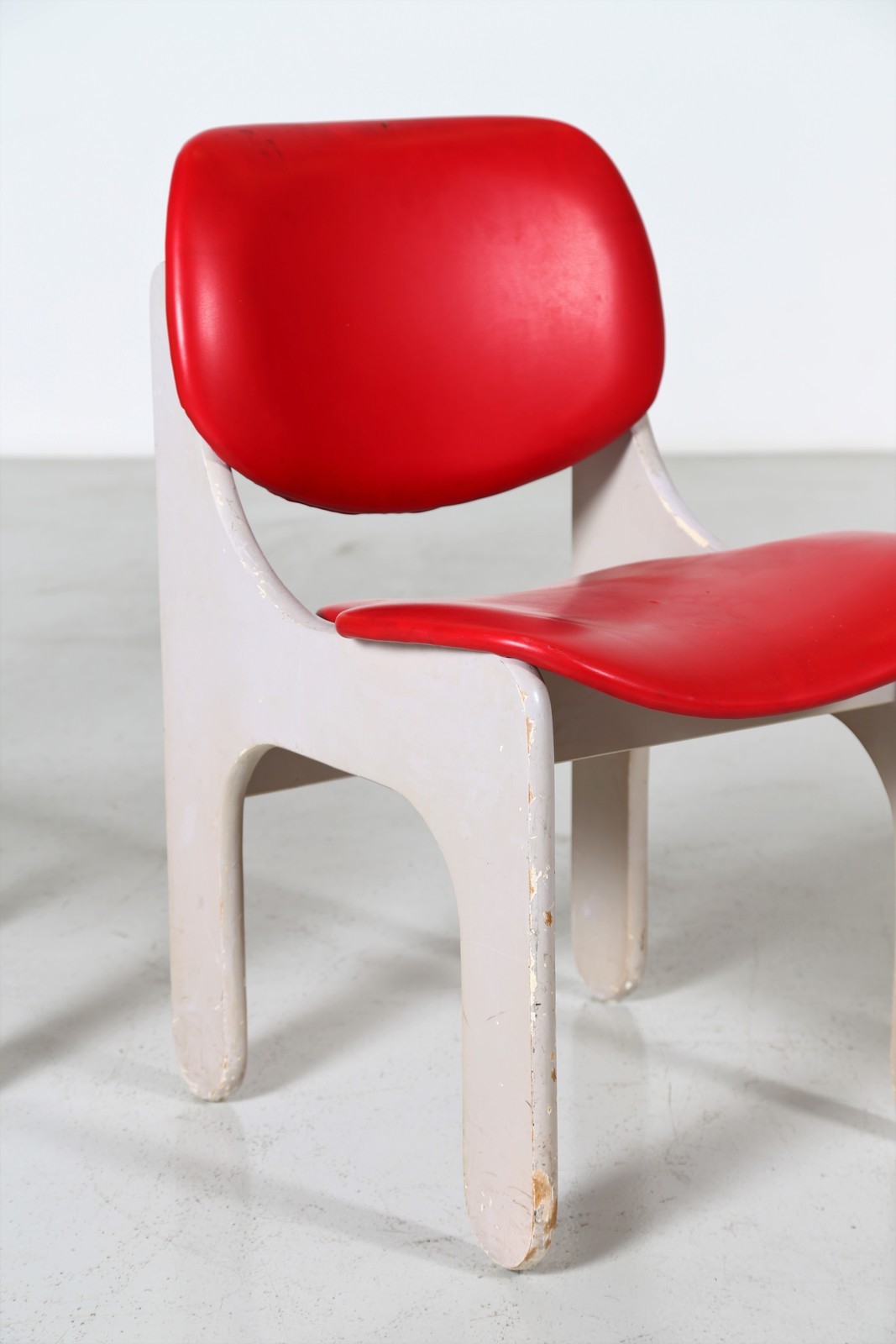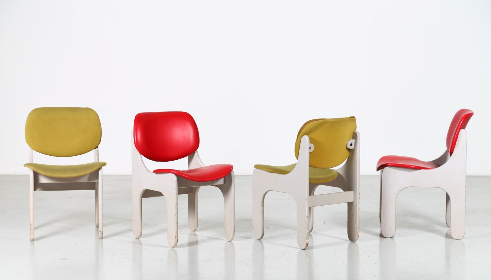 RINALDI GIORGIO Quattro sedie in legno laccato, tessuto e sky, mod. S10, per...