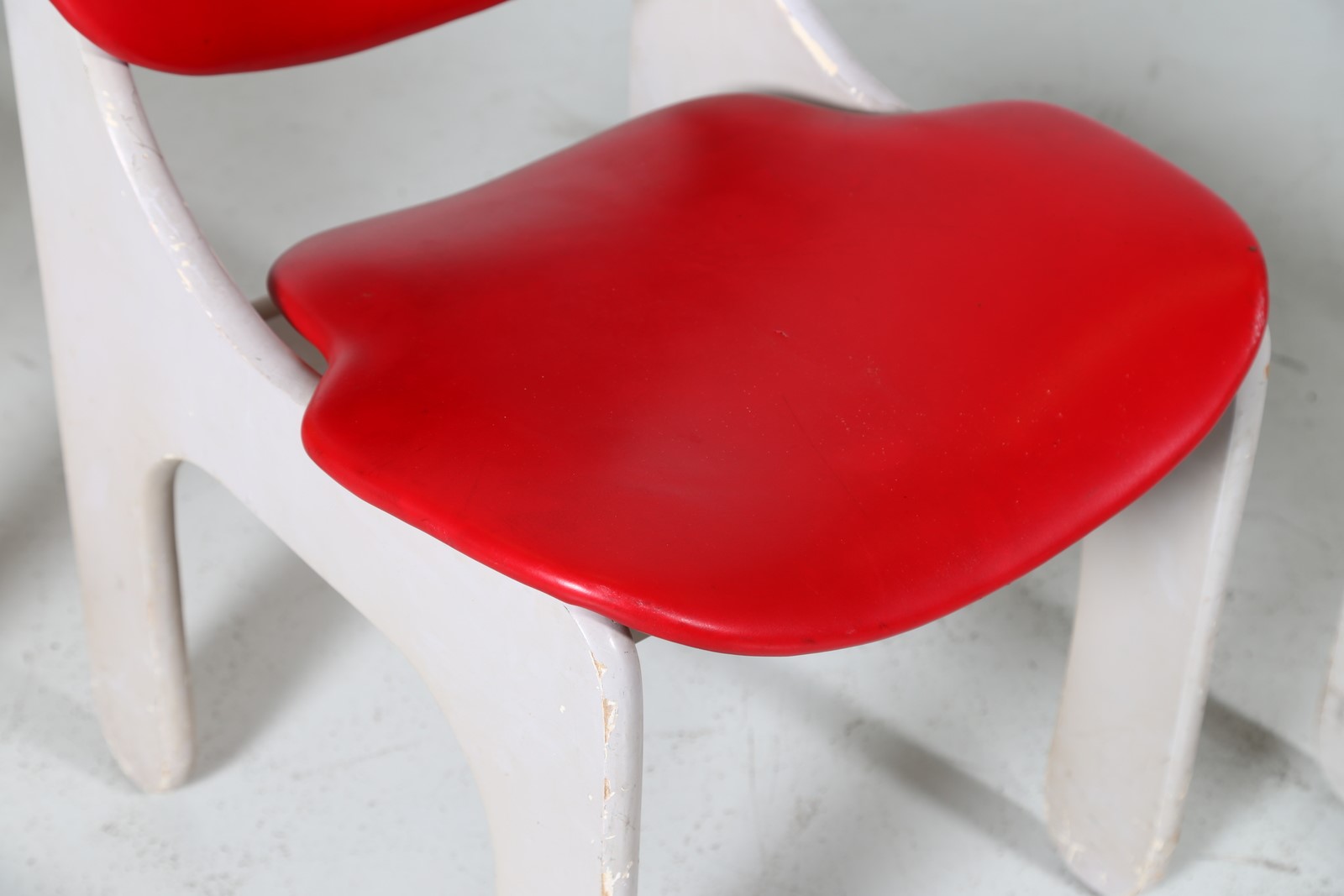 RINALDI GIORGIO Quattro sedie in legno laccato, tessuto e sky, mod. S10, per Rima 1968. . -. Cm 49,00 x 76,00 x 58,00. Pubblicazione: Gastone Rinaldi Designer alla Rima a cura di Giuseppe e Jacopo Drago, pag.198.