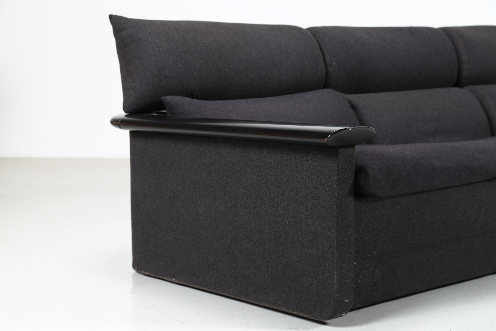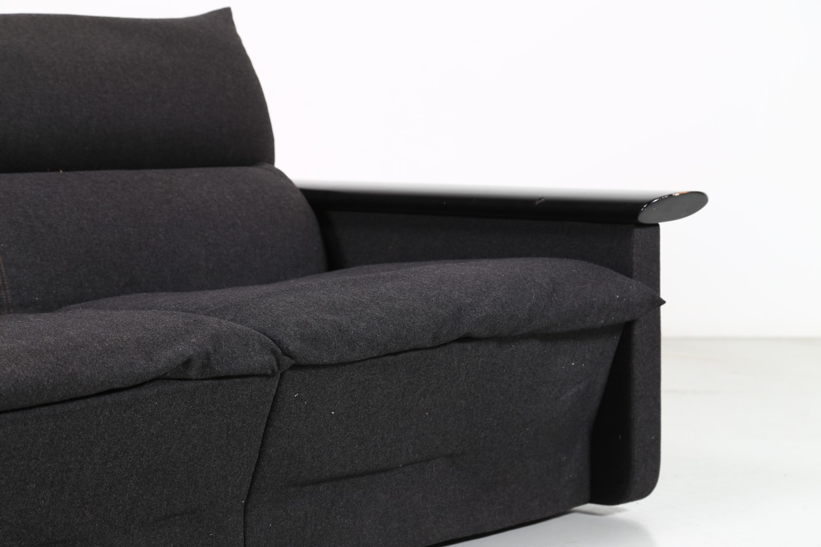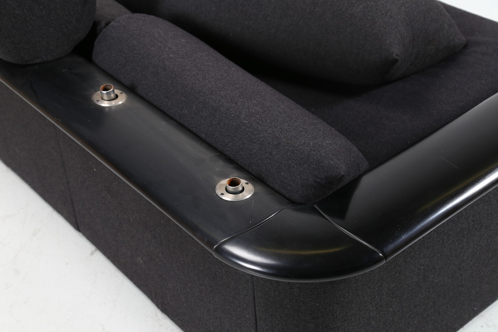 FRANCO PERROTTI Divano tre posti per Tecno. -. Cm 230,00 x 80,00 x 100,00. Legno laccato, tessuto e plastica, marchio presente