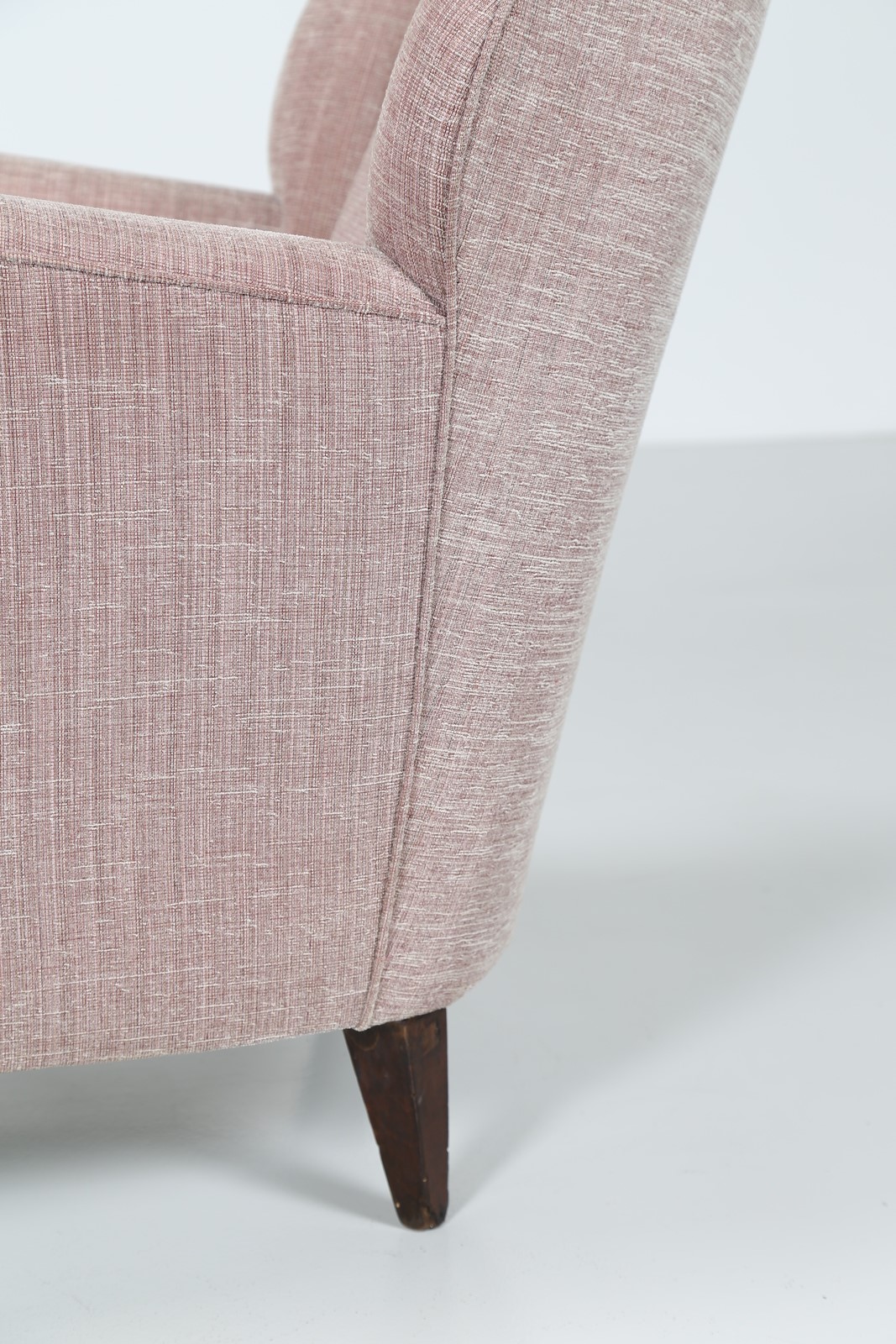 Lotto 273 | MANIFATTURA ITALIANA Coppia di poltrone in legno e tessuto, anni 40°. -. Cm...