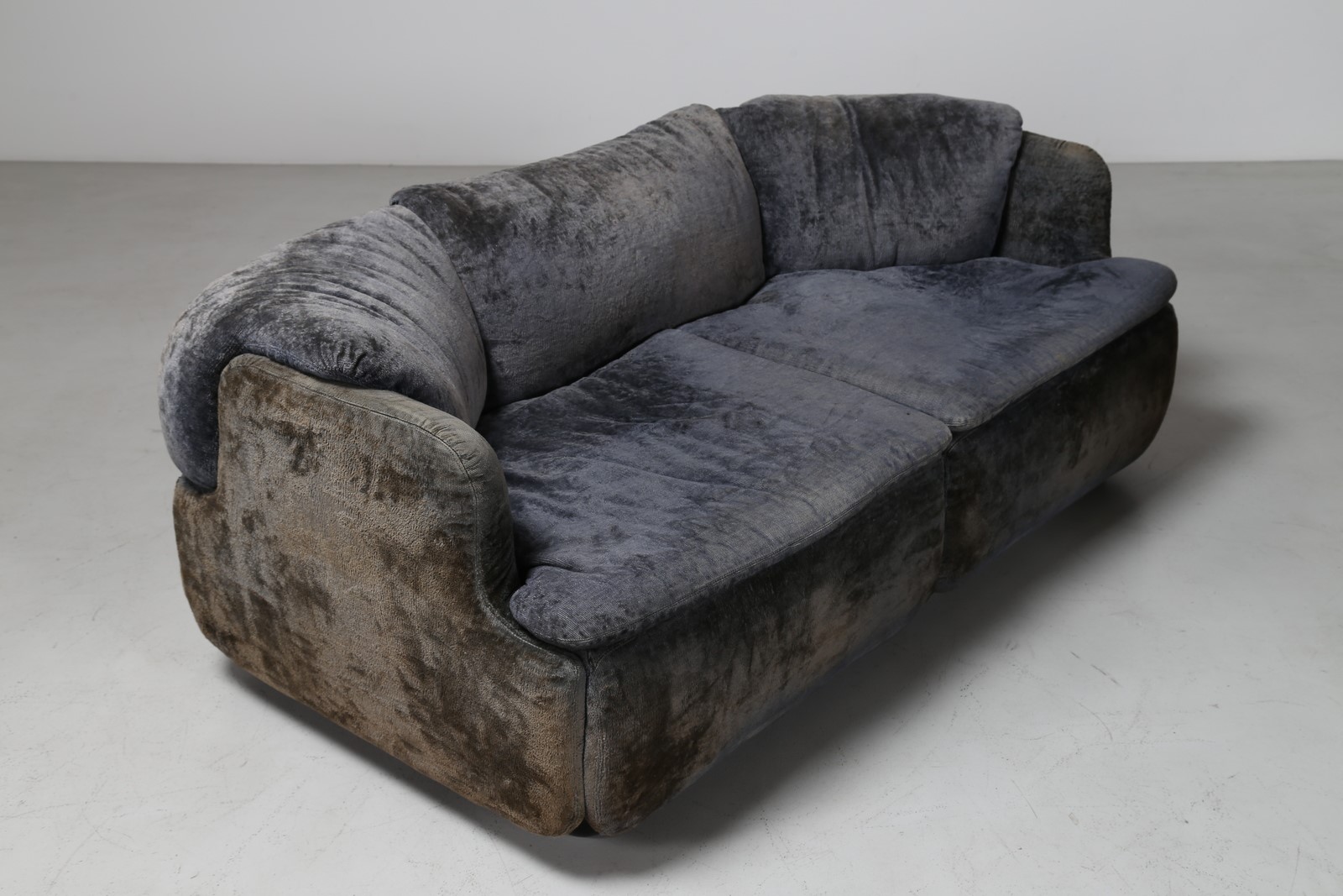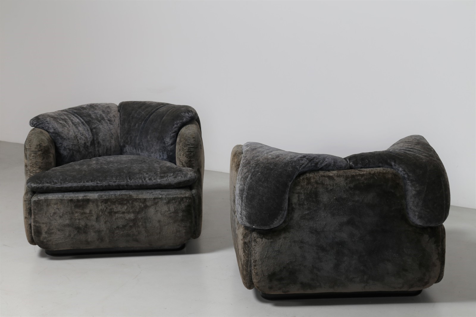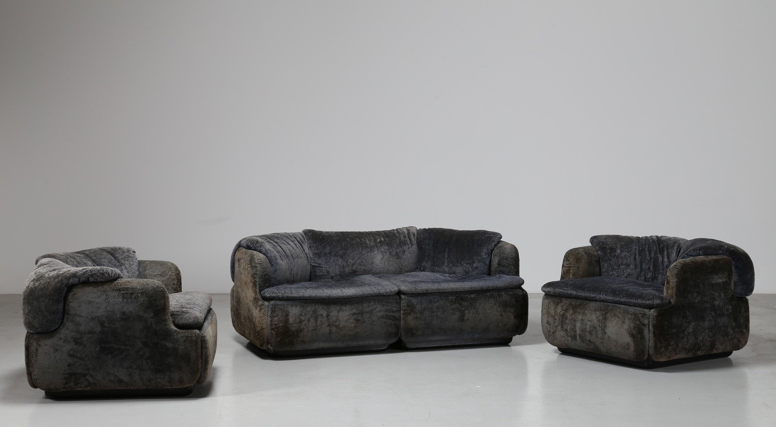 ROSSELLI ALBERTO (1921 - 1976) Salotto composto da un divano due posti e coppia di poltrone in tessuto originale, mod. Confidential, per Saporiti Italia anni 70. -. . Misure divano: H 65 L 165 P 85 poltrone: H 65 L 90 P 85