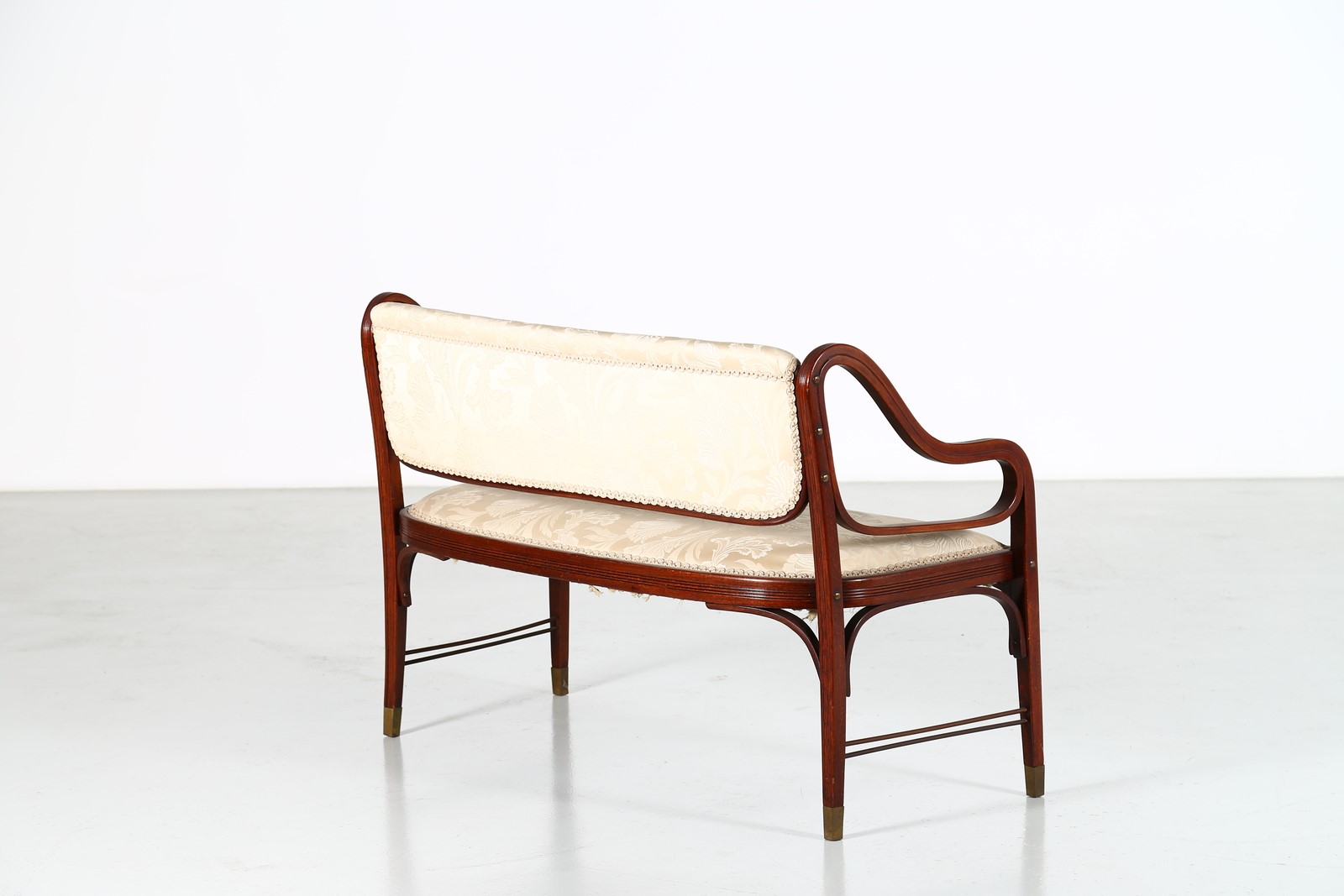 SIEGEL GUSTAV (1880 - 1970) Divanetto due posti in legno e tessuto, per Märkt JJ Kohn, primi 900. -. Cm 117,00 x 80,00 x 58,00.