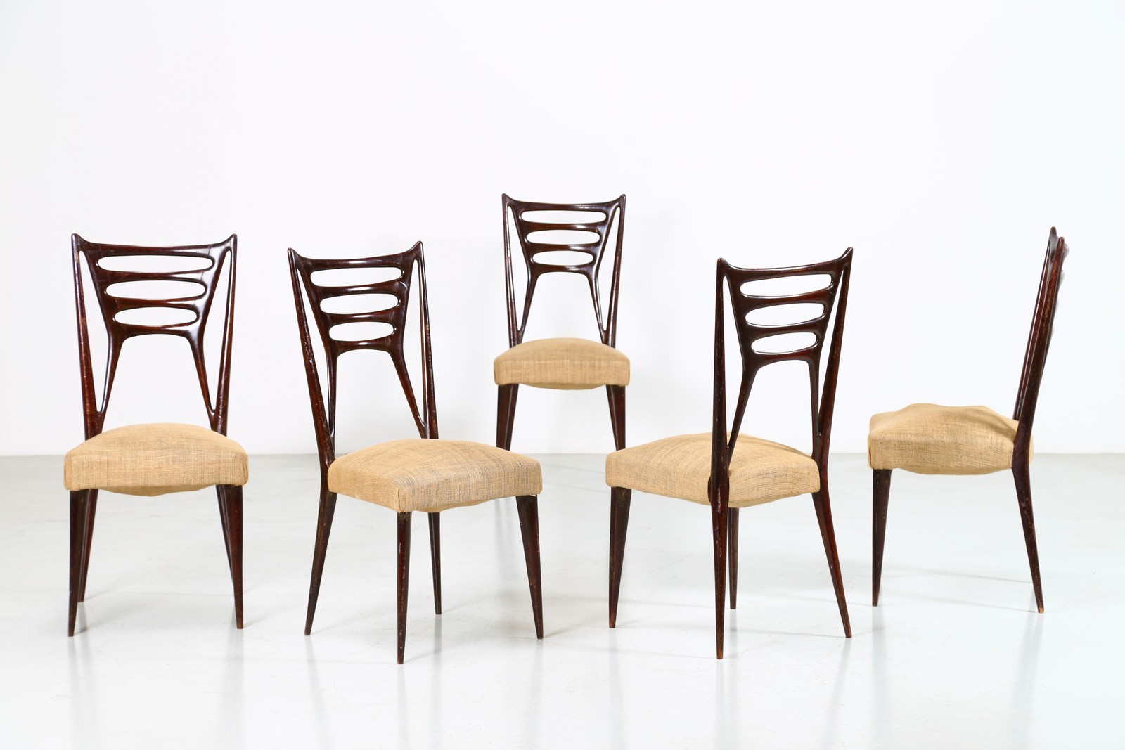 Lotto 293 | LATIS GUSTAVO & VITO Cinque sedie anni 50. -. Cm 44,00 x 94,00 x 52,00. Legno...