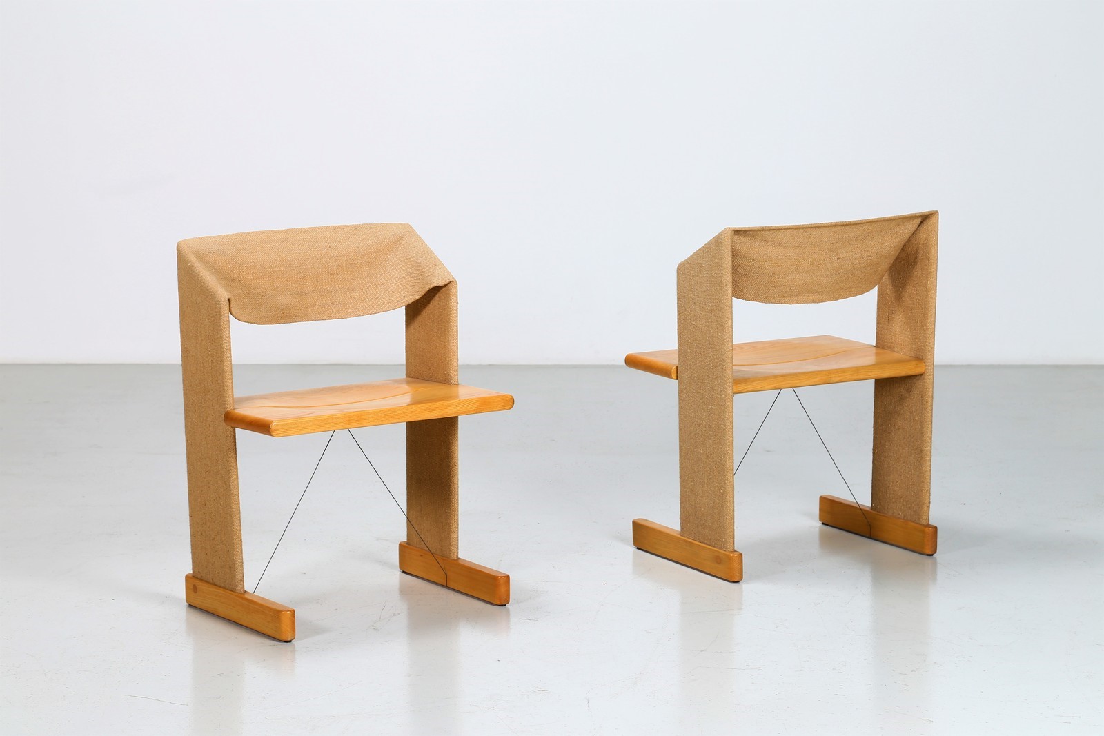 SABADIN GIGI Coppia poltroncine mod. Canossa per Stilwood Domus 530 gennaio 1974 pag. 18 Abitare 132 Gennaio 1975 pag 123. -. Cm 56,00 x 75,00 x 42,00. Legno di frassino e tela grezza