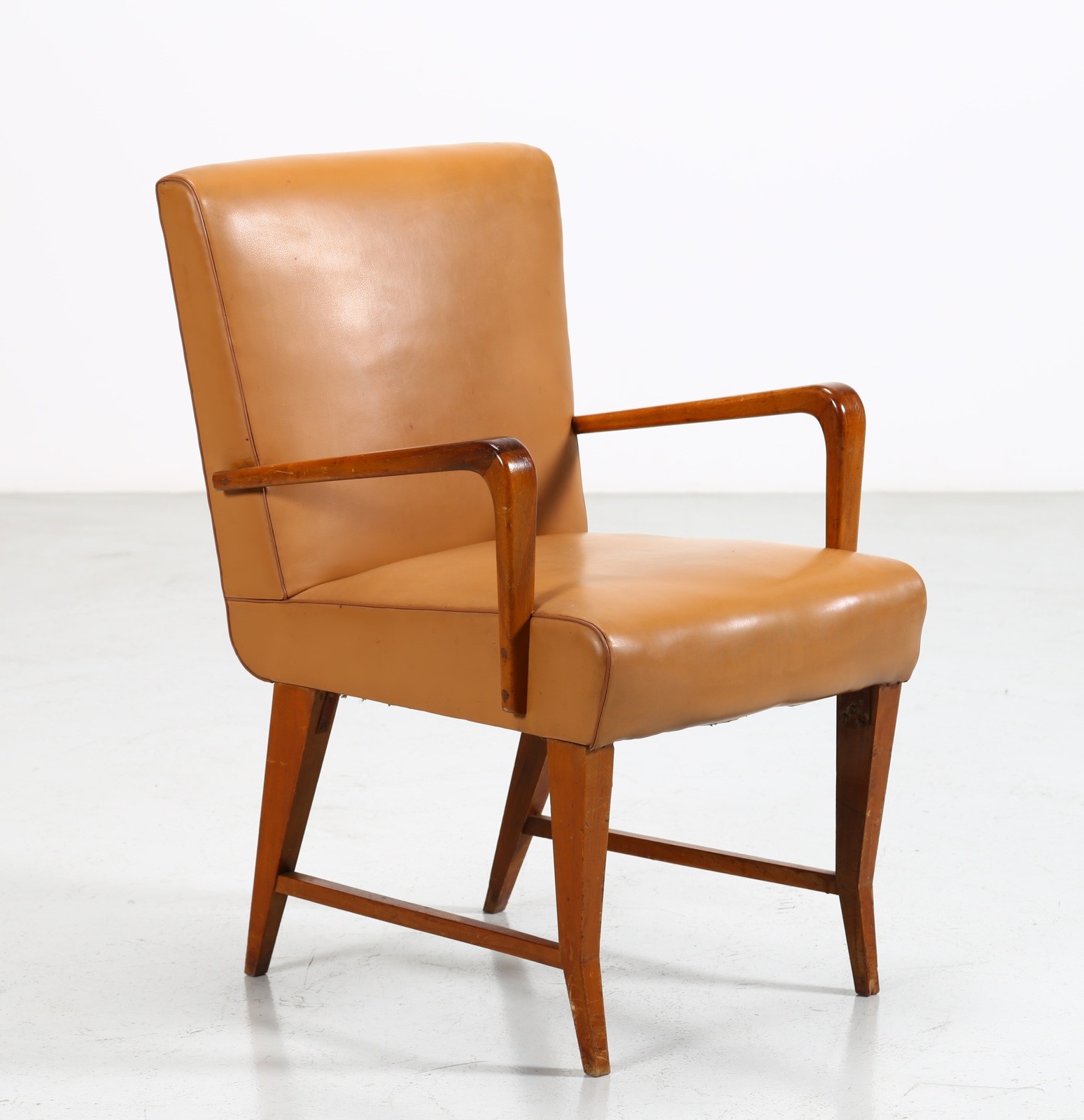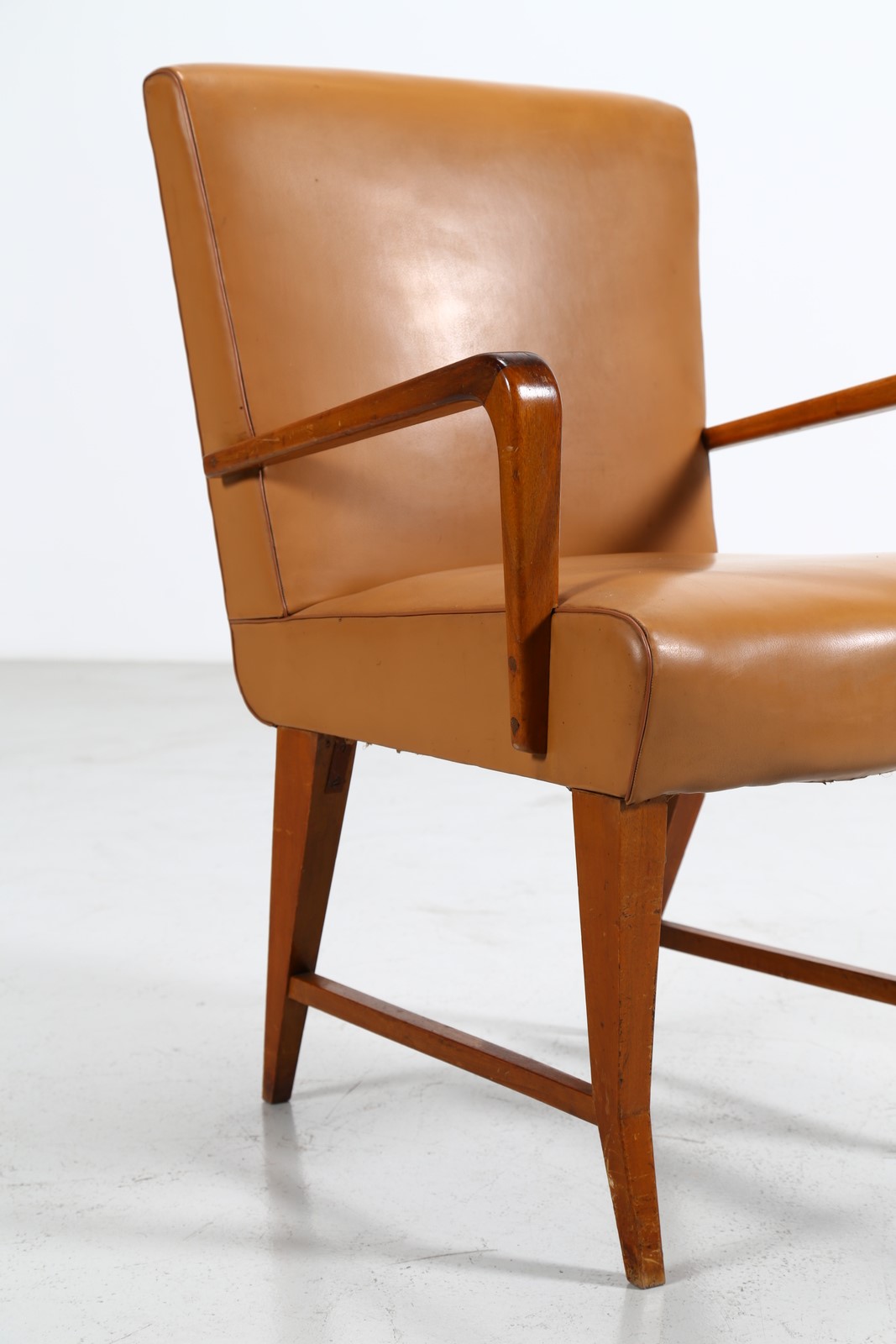 PONTI GIO' (1891 - 1979) Poltroncina per Schirolli, anni 50. -. Cm 54,00 x 86,00 x 63,00. Legno di noce biondo e skai