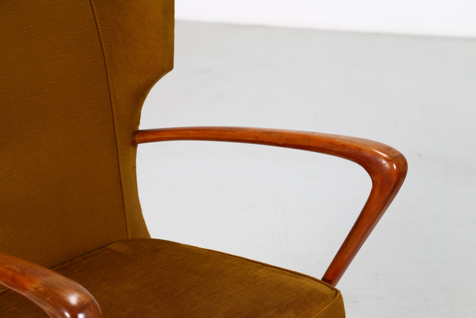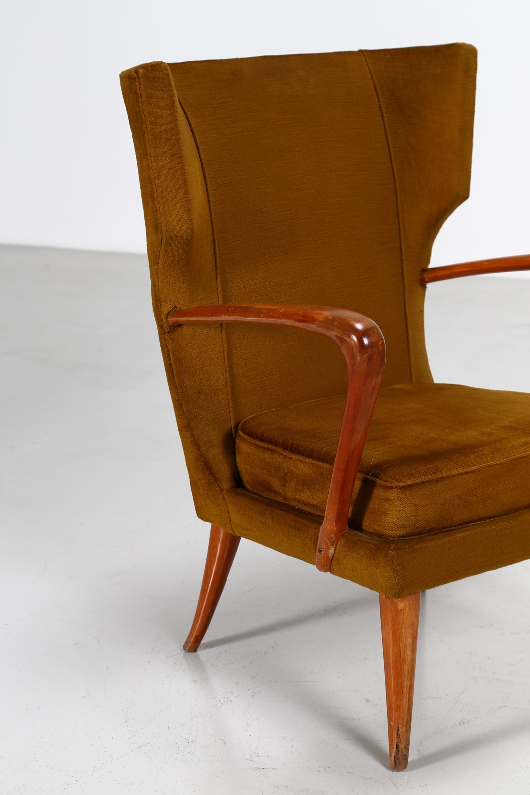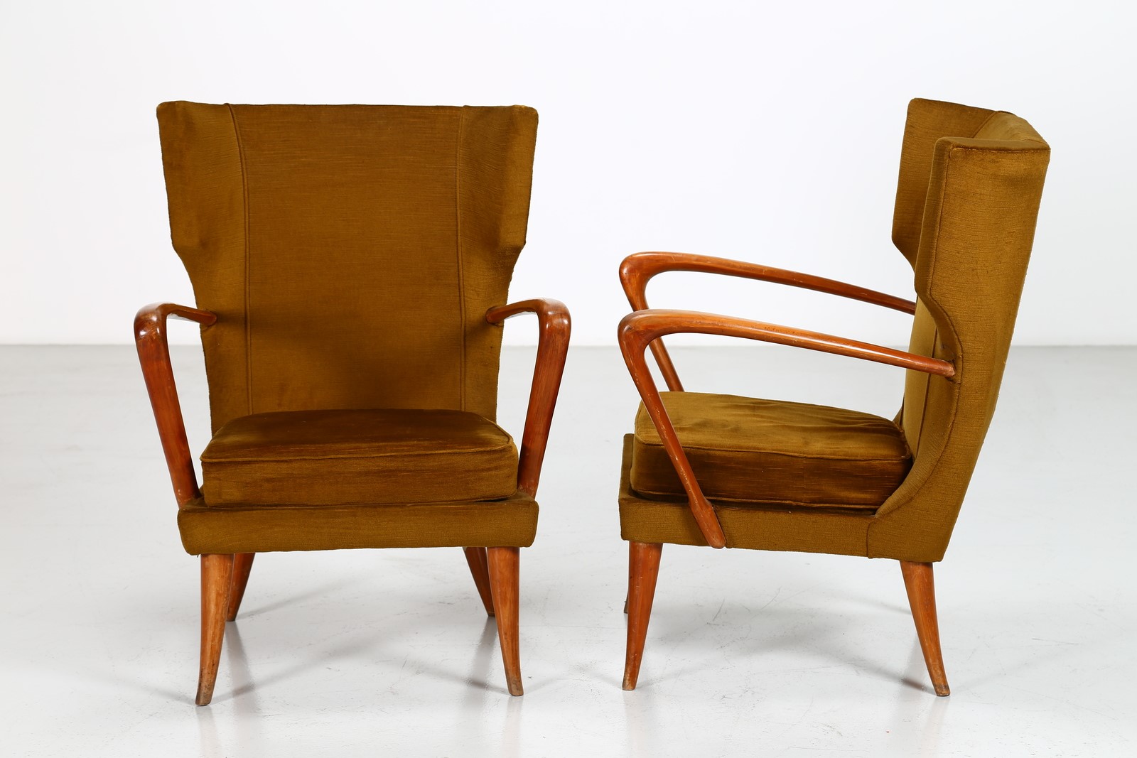 MANIFATTURA ITALIANA Coppia di poltrone anni 40/50. -. Cm 68,00 x 91,00 x 66,00. Legno e tessuto