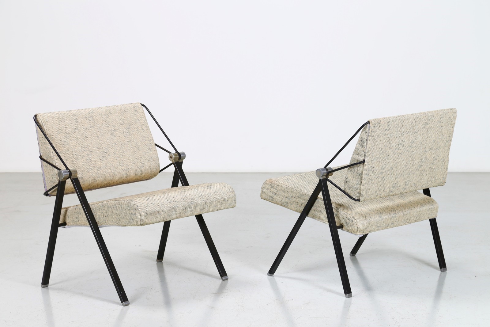 BIEFFEPLAST Coppia poltrone, anni 60. -. Cm 69,00 x 74,00 x 64,00. Alluminio, metallo laccato e tessuto