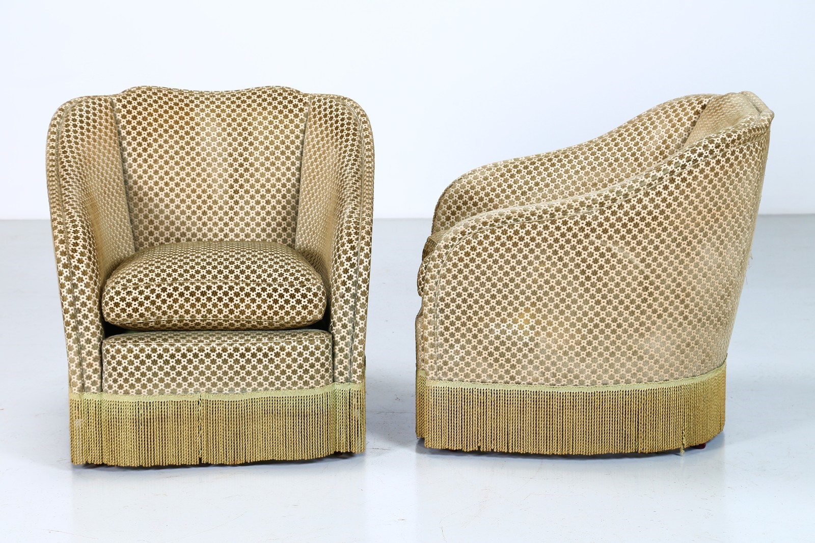 PONTI GIO' (1891 - 1979) Attrib. Coppia poltrone tessuto originale Fede Cheti. -. Cm 81,50 x 81,00 x 81,50. Legno e tessuto