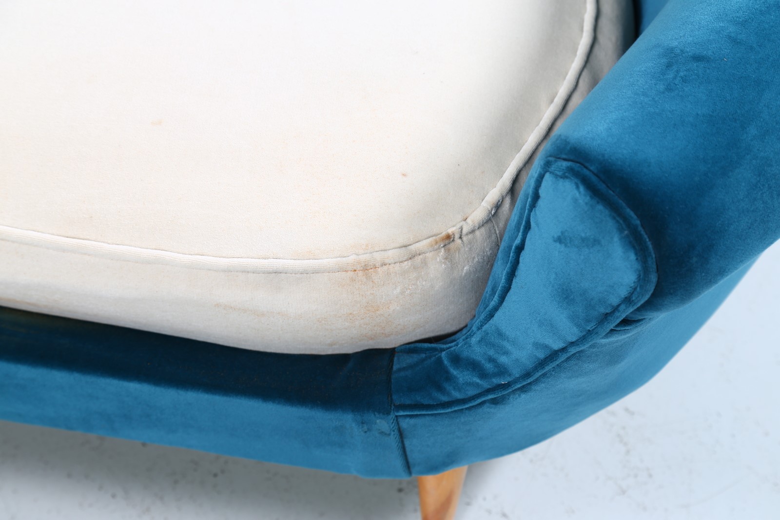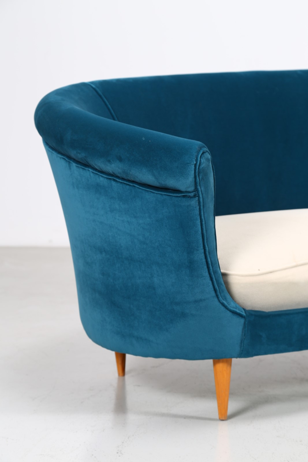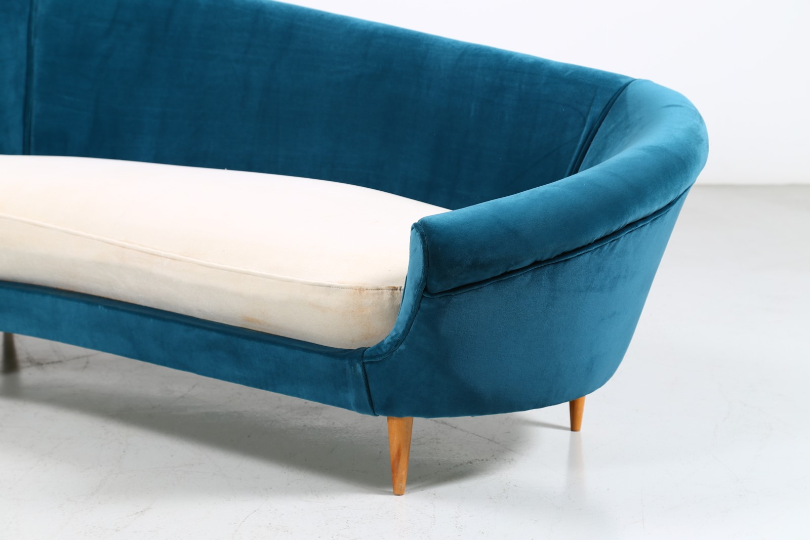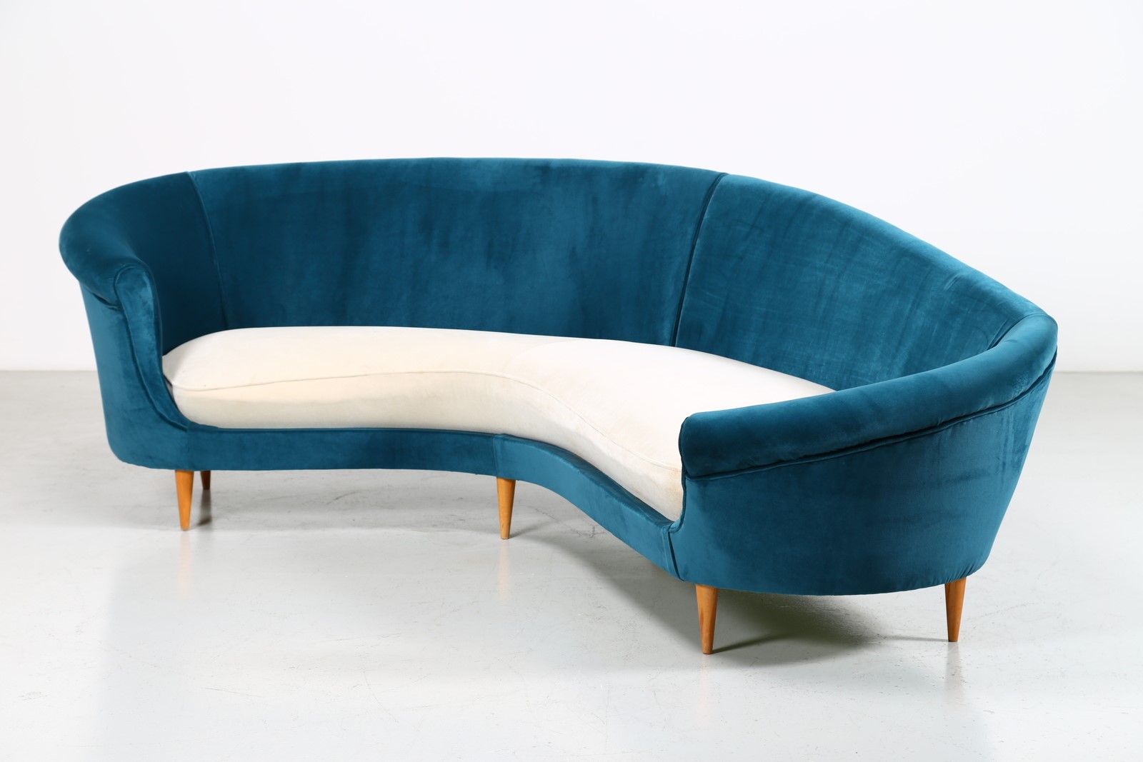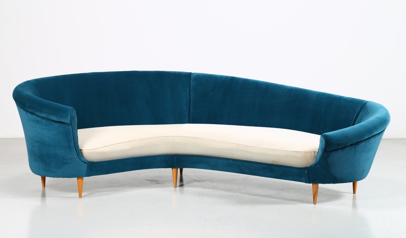 MUNARI FEDERICO Divano curvo anni 50. -. Cm 262,00 x 80,00 x 140,00. Legno e...