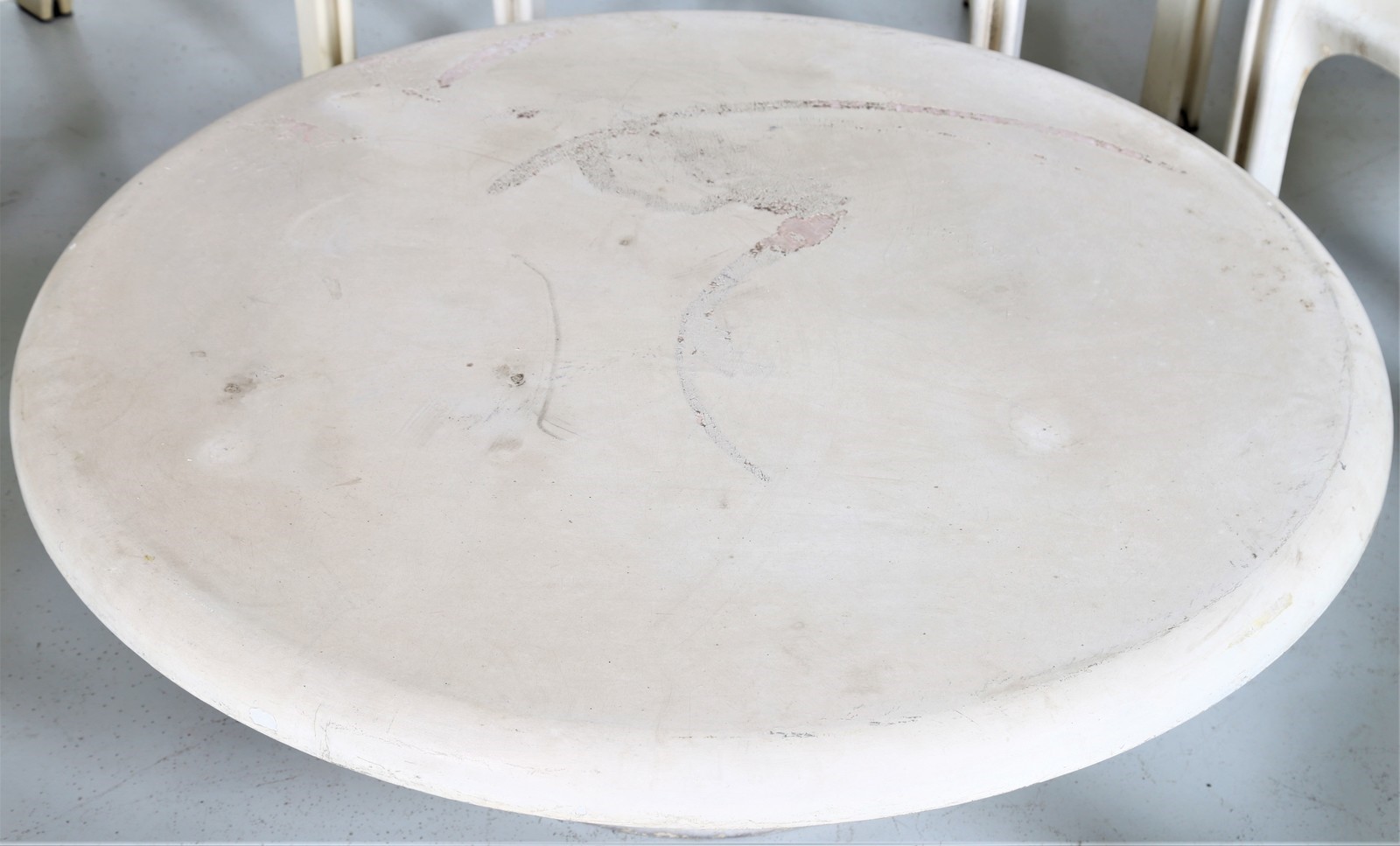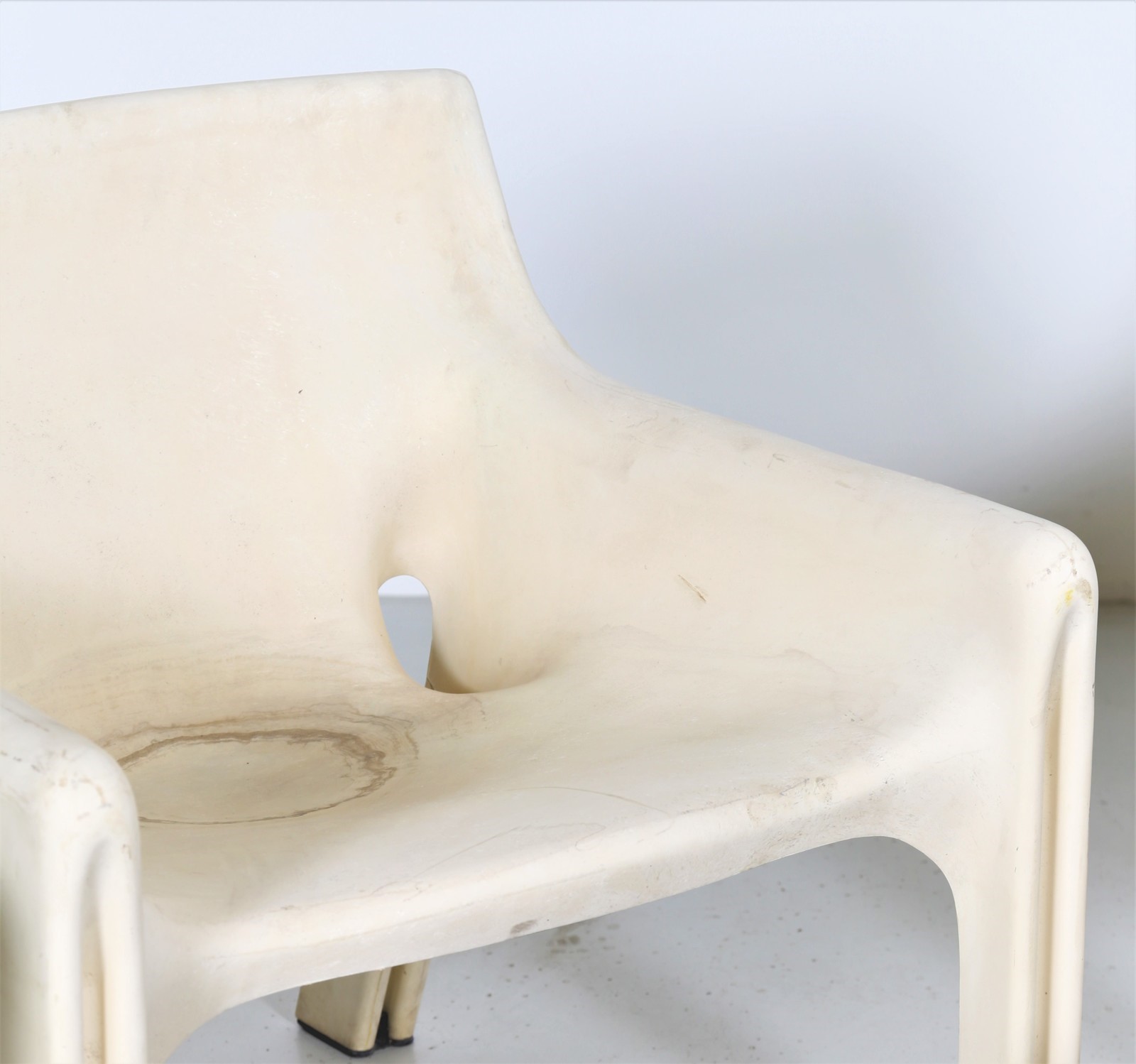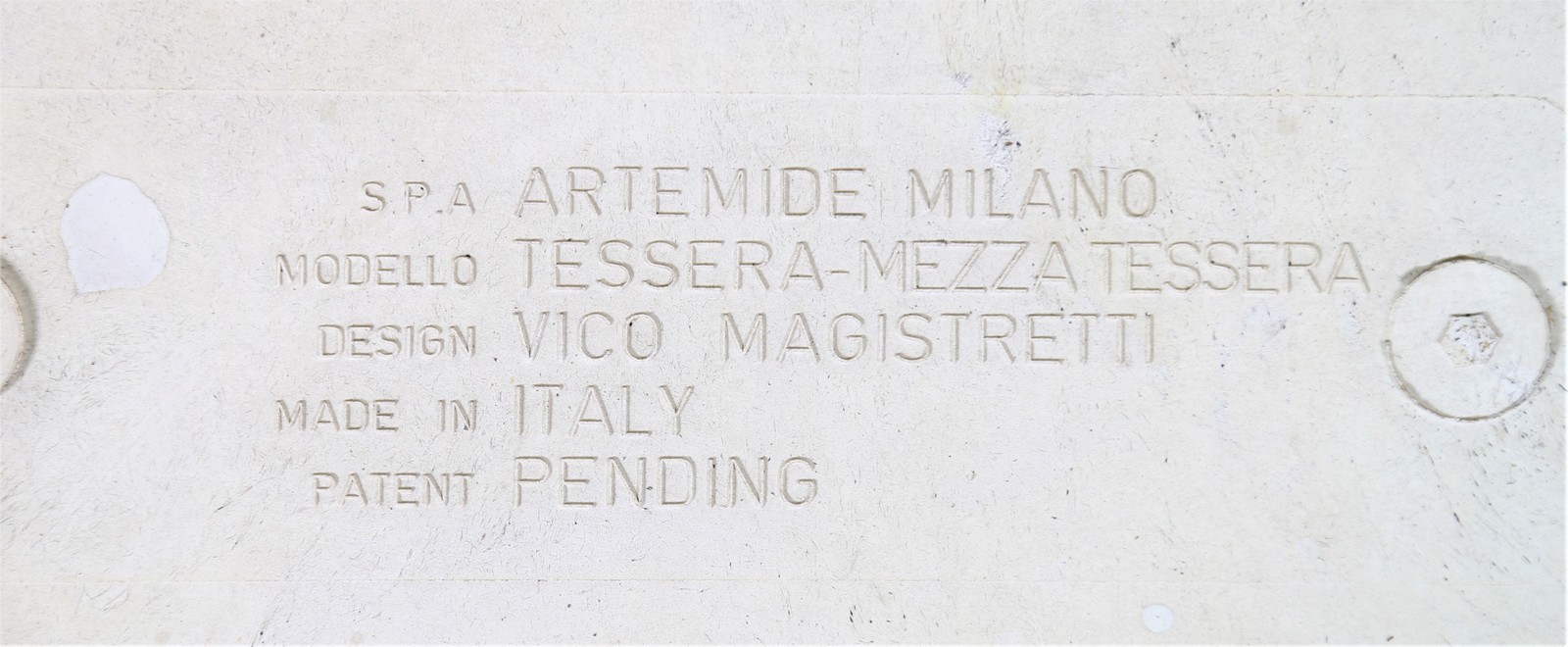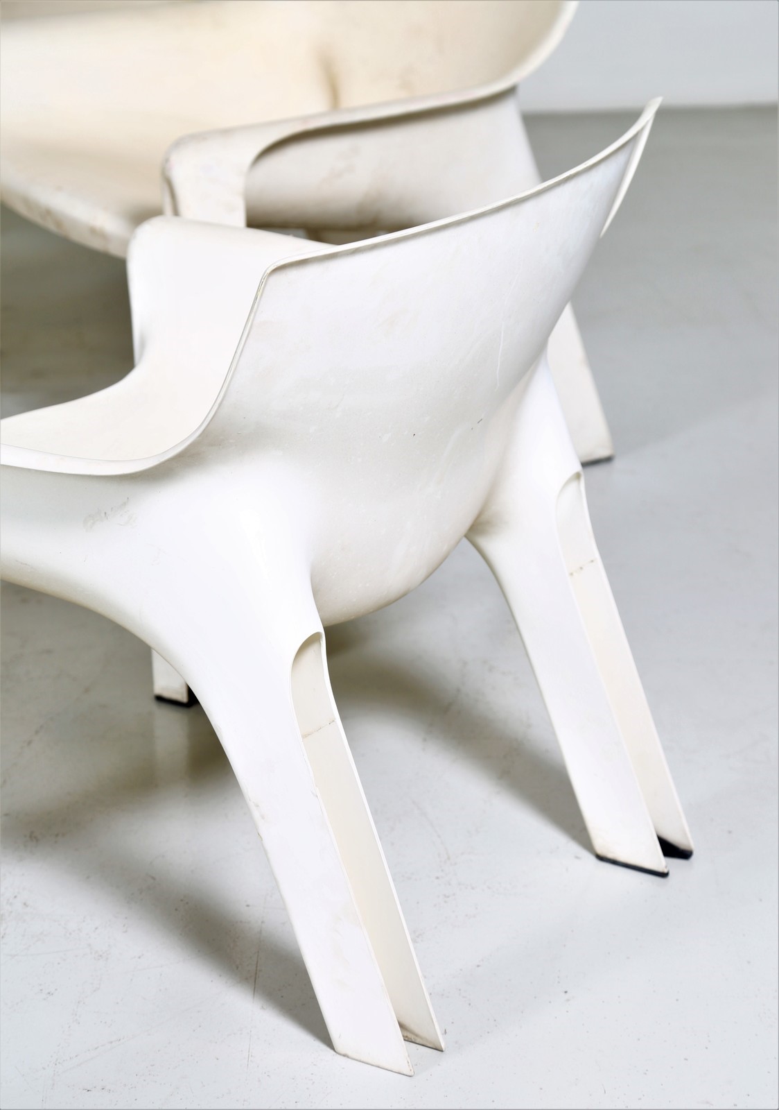 MAGISTRETTI VICO (1920 - 2006) Otto poltrone mod. Vicario, un tavolino Tessera-Mezza Tessera, per Artemide anni 70. Plastica. Cm 72,00 x 68,00 x 60,00. Dimensioni tavolino: 40x120 cm.