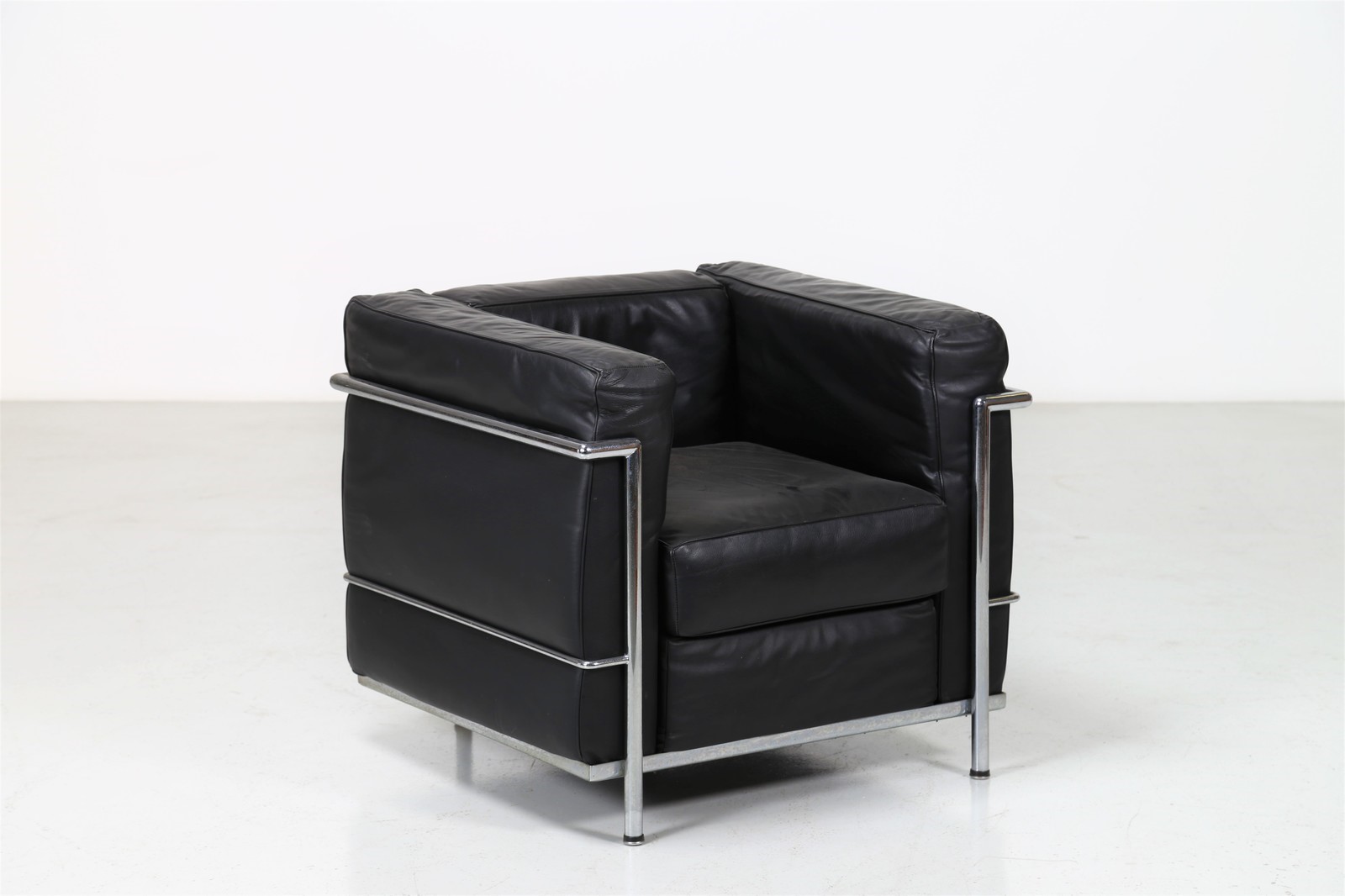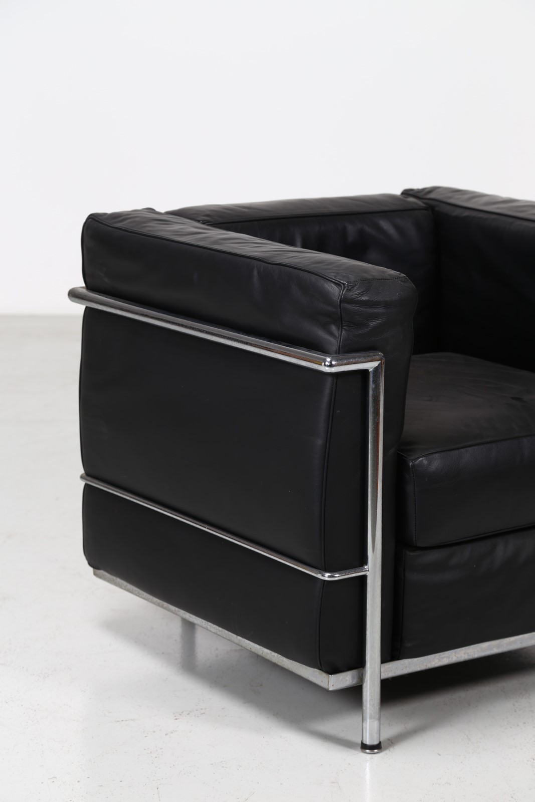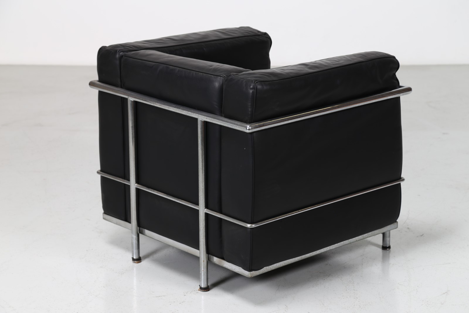 LE CORBUSIER Poltrona LC2, metallo cromato e pelle, per Cassina I Maestri anni 70. Pelle e alluminio. Cm 76,00 x 68,00 x 70,00.