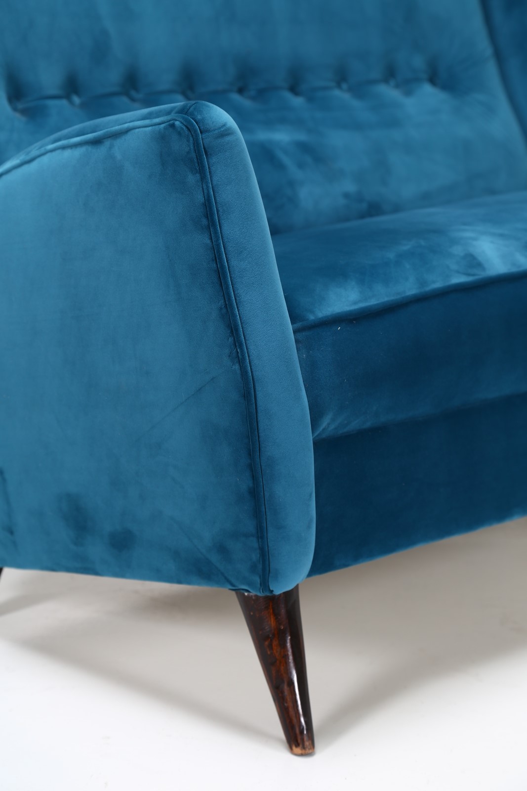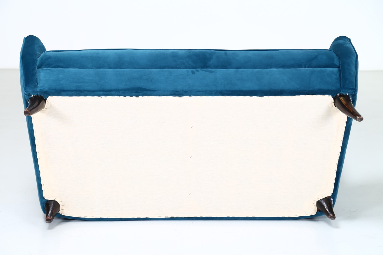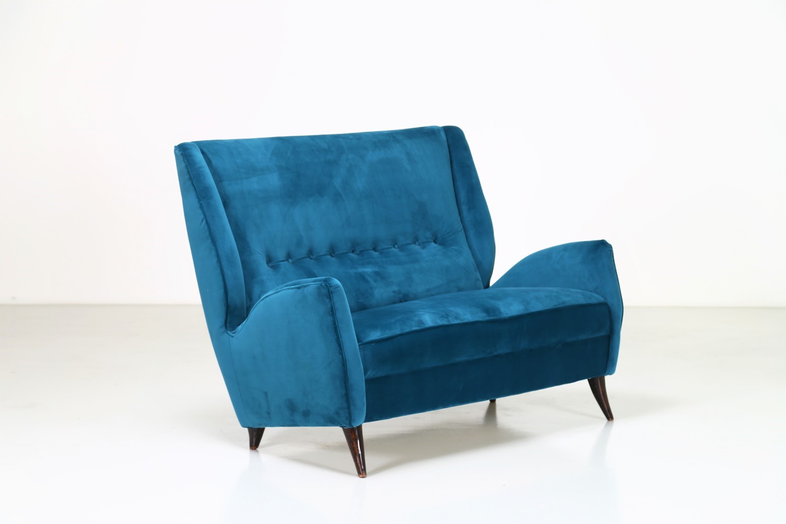 ISA BERGAMO Divano in legno e tessuto, anni 50 . -. Cm 135,00 x 98,00 x 90,00.