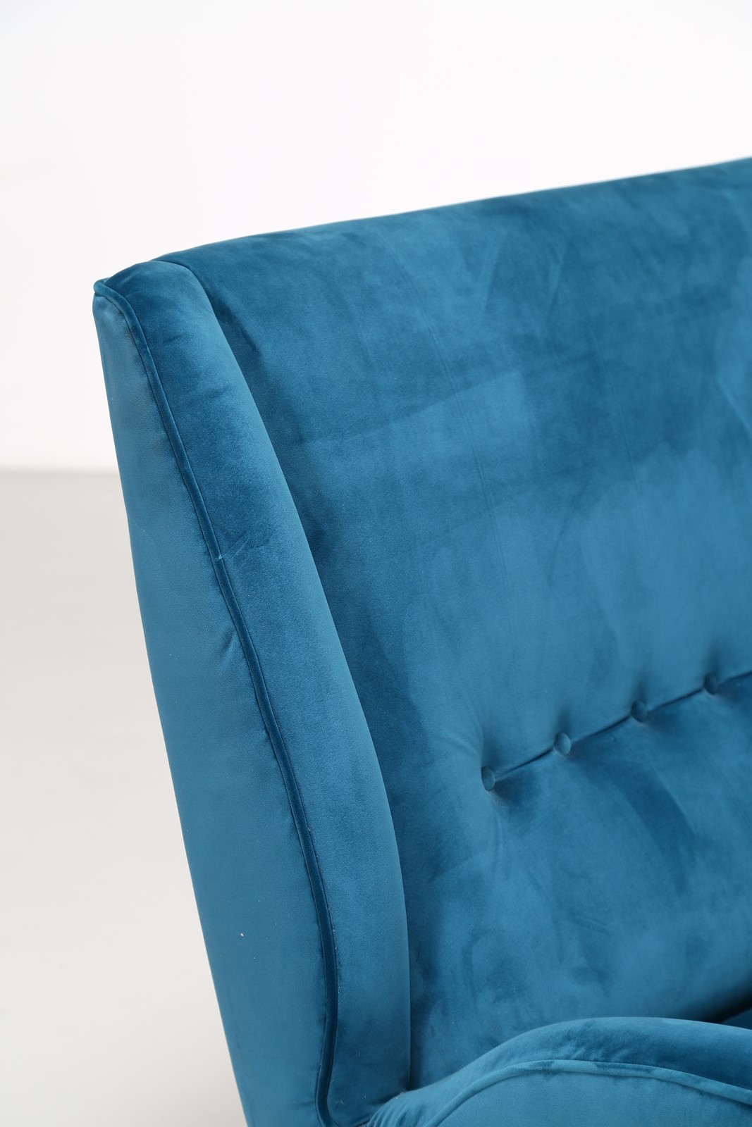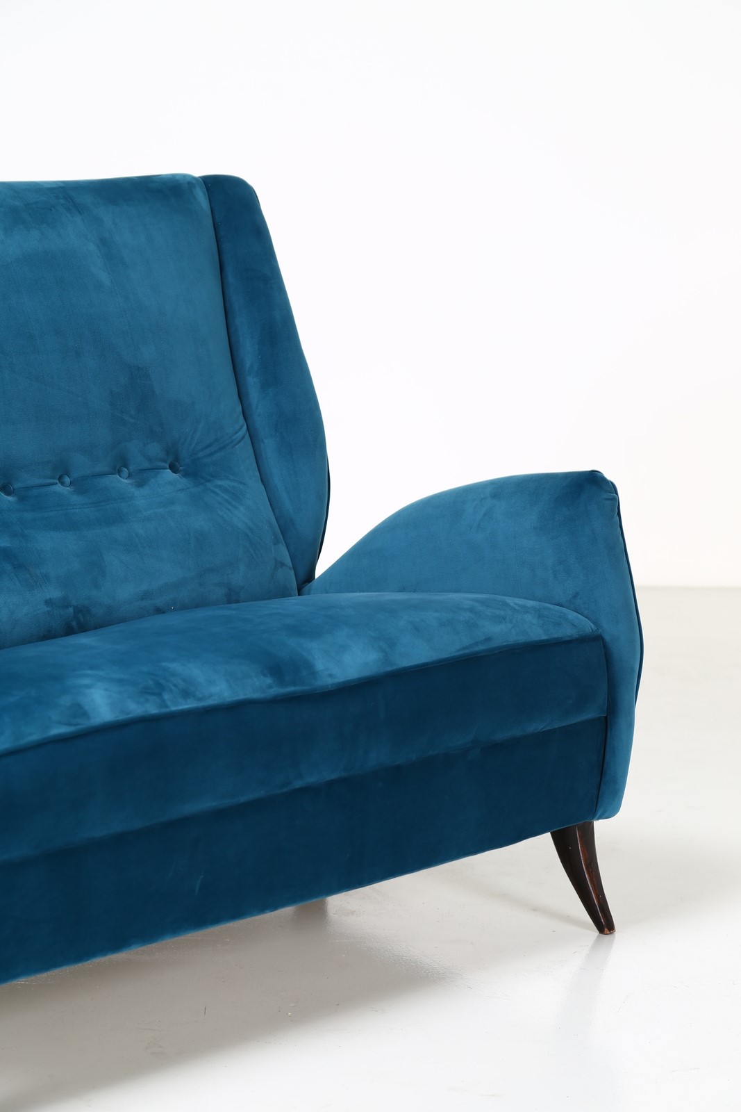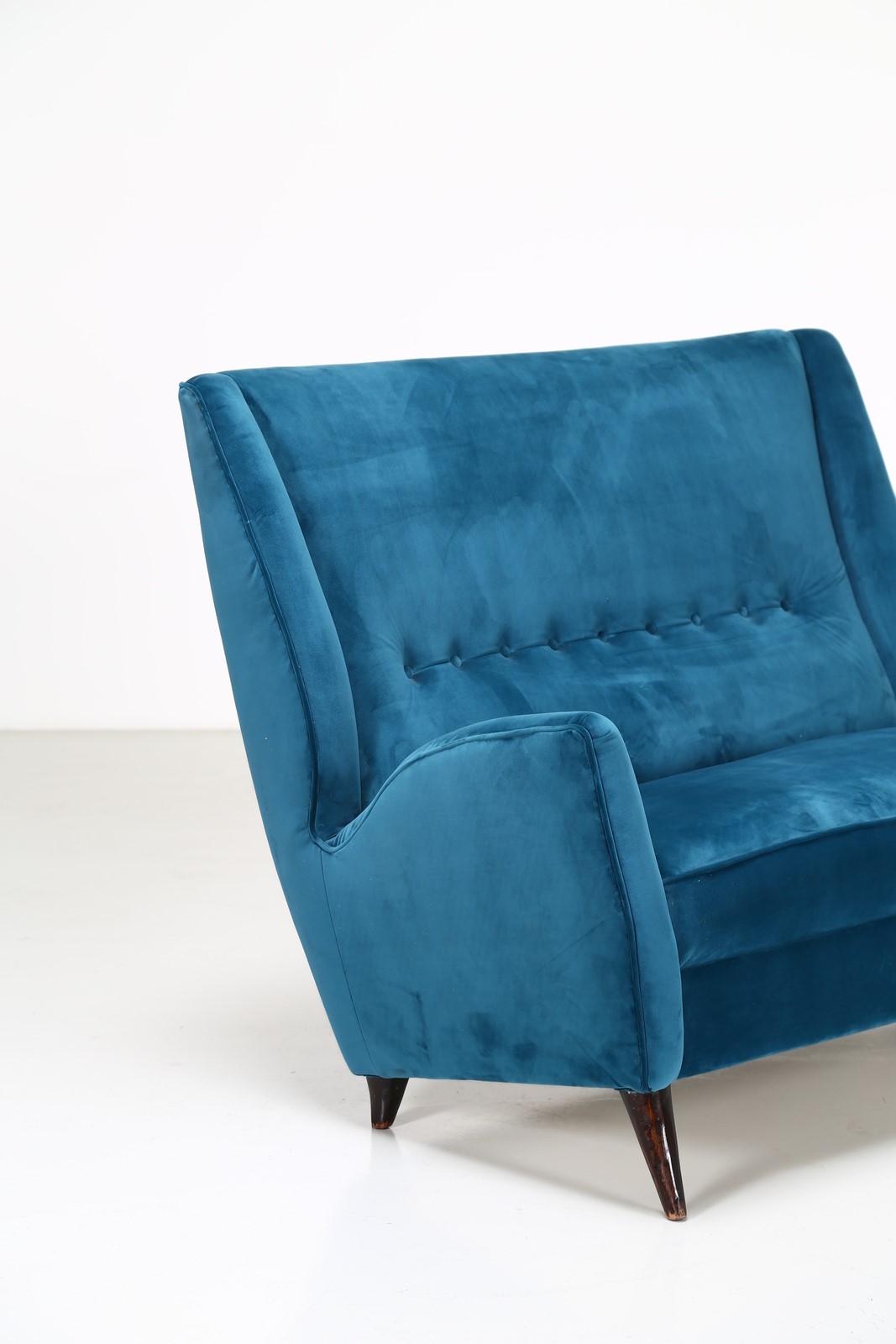 ISA BERGAMO Divano in legno e tessuto, anni 50 . -. Cm 135,00 x 98,00 x 90,00.